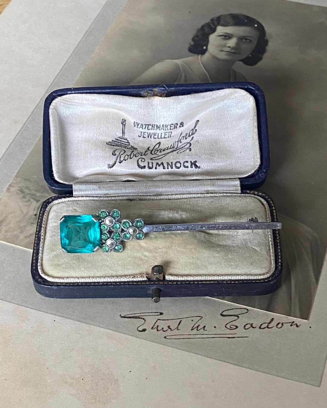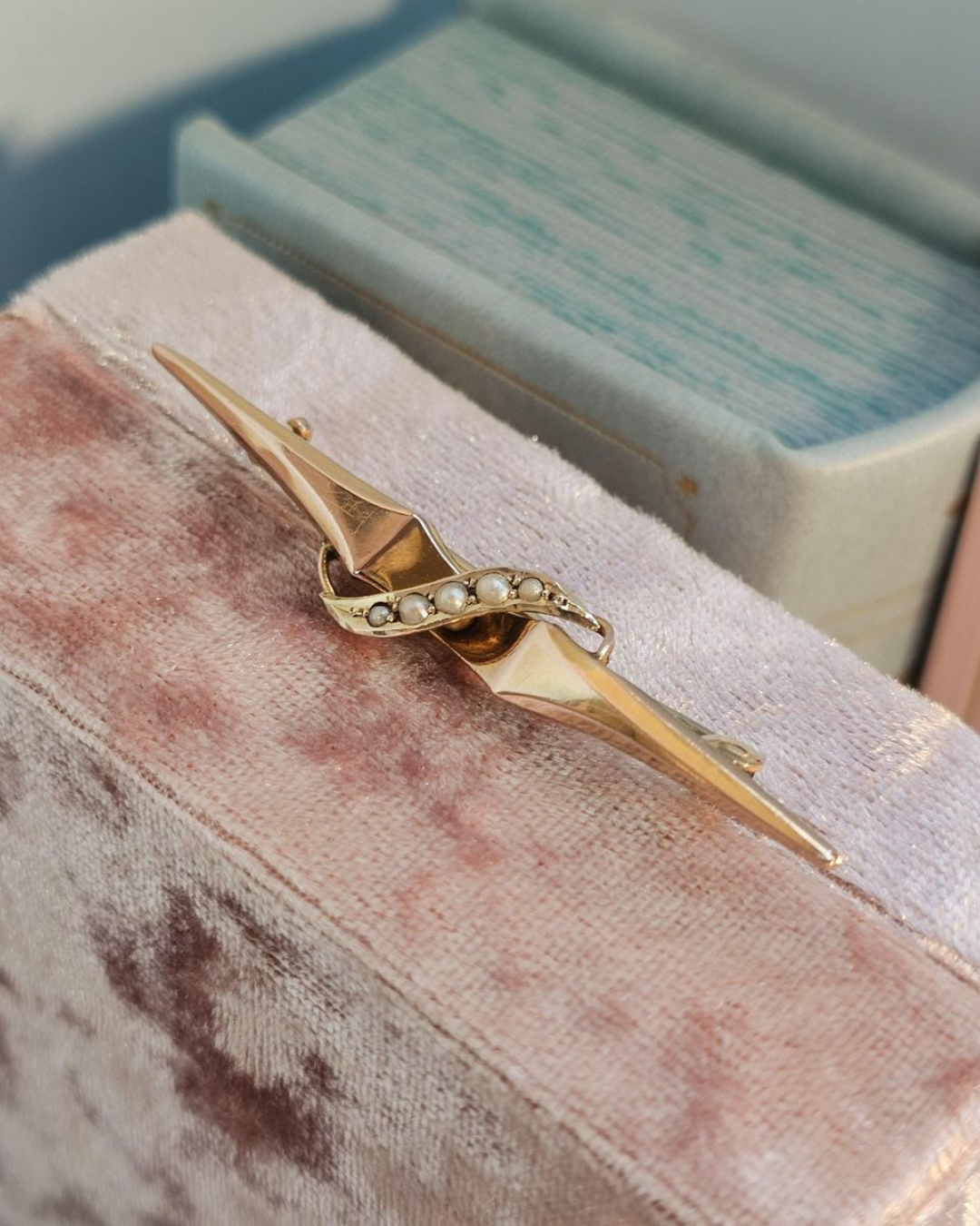Золотой век броши-бара наступил в 1920–1930-е годы, в период ар-деко. Строгая, вытянутая форма идеально вписалась в эстетику эпохи: линии стали ещё более геометричными, в моду вошли платино-бриллиантовые варианты, а также украшения с ониксом, сапфирами, рубинами. В 1950-е брошь-бар использовали как знак статуса и элегантности — её носили на лацканах, платьях и шляпах, подчеркивая безупречный вкус.