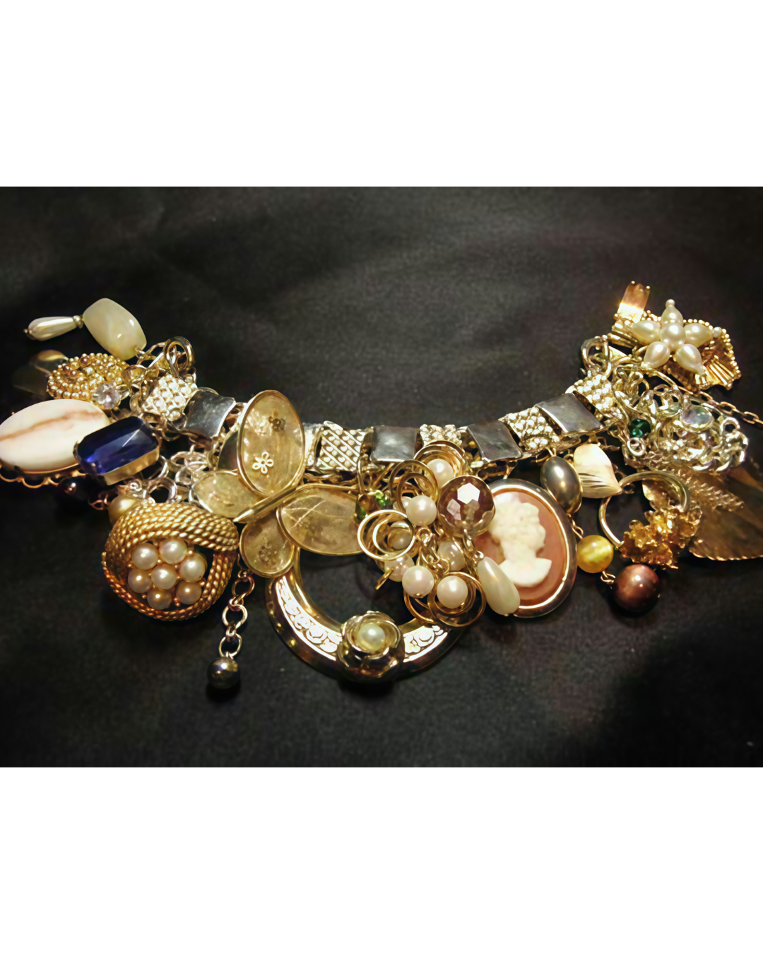 Особое место занимали чармы-сердца. Внутри некоторых из них бережно хранились локоны волос её детей — трогательная и при этом вполне распространённая практика Викторианской эпохи. Волосы считались символом жизни и вечной привязанности, а потому такие украшения носили глубоко личный, почти сакральный характер.