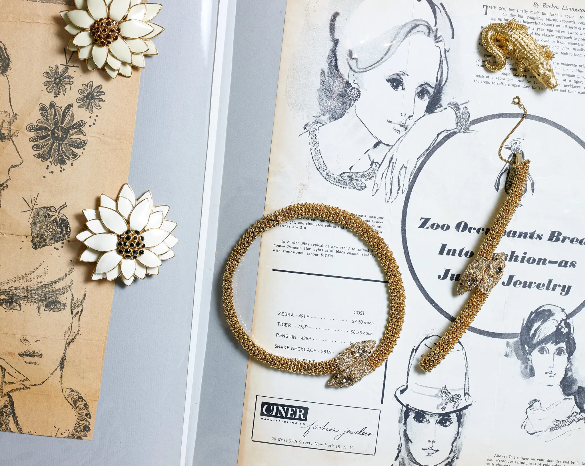 Во времена Второй мировой войны CINER направил свои уникальные технологии литья и обработки металла на производство деталей для авиации — вклад в общее дело, демонстрирующий стойкость и патриотизм семьи. А с наступлением мирного времени настал звездный час бренда. В 1946 году страницы глянцевых журналов Vogue и Glamour запестрели слоганом «Ищите знак Ciner». Украшения, которые раньше были секретом избранных, стала желать вся Америка. Эстафету от основателя переняли его сыновья: Ирвин, технический гений, усовершенствовавший методы литья, и Чарльз, визионер маркетинга, выведший имя семьи на национальный уровень.Уникальность CINER — в его ДНК, в которой сплетены непоколебимая верность традициям и кустарное мастерство. Даже спустя десятилетия все изделия, от броши-бутона до многослойного ожерелья, собирались вручную в нью-йоркской мастерской. Сердцем бренда был гигантский архив — сокровищница оригинальных моделей и патентов, оставленных Эмануэлем. Дизайнеры не чертили эскизы на планшетах; они, как скульпторы, работали с этими миниатюрными произведениями искусства, комбинируя элементы из разных эпох в новом прочтении — процесс, который внутри компании с любовью называли «франкенштайнинг». Узнать CINER можно по филигранной детализации, использованию тысяч мельчайших кристаллов и особому, струящемуся сиянию японского жемчуга. Броши-птицы, готовые вспорхнуть с лацкана пиджака, геометрические чокеры, звенящие как струны арфы, цветочные гирлянды, что никогда не увядают, — каждое изделие было рассказом, отлитым в металле.