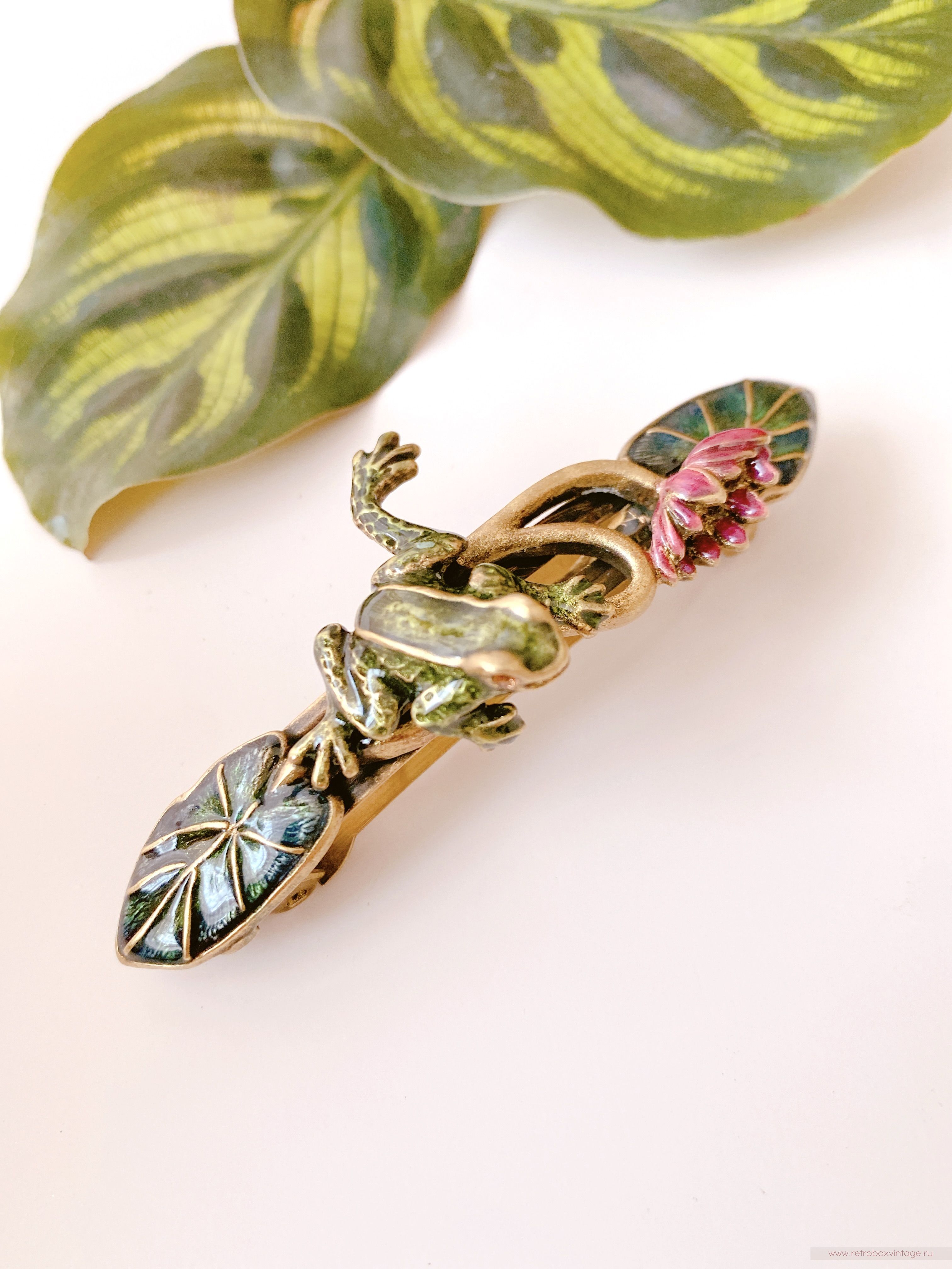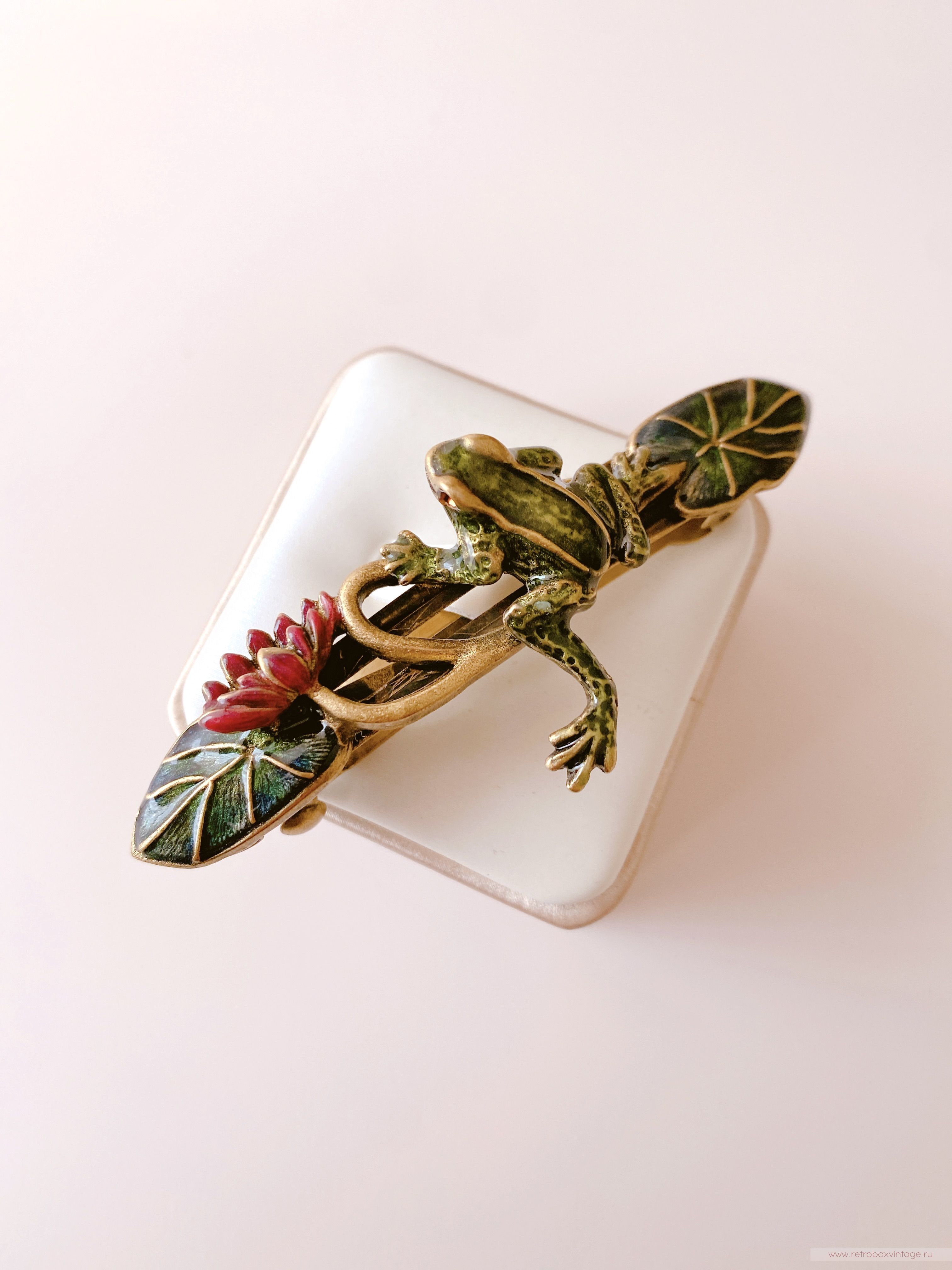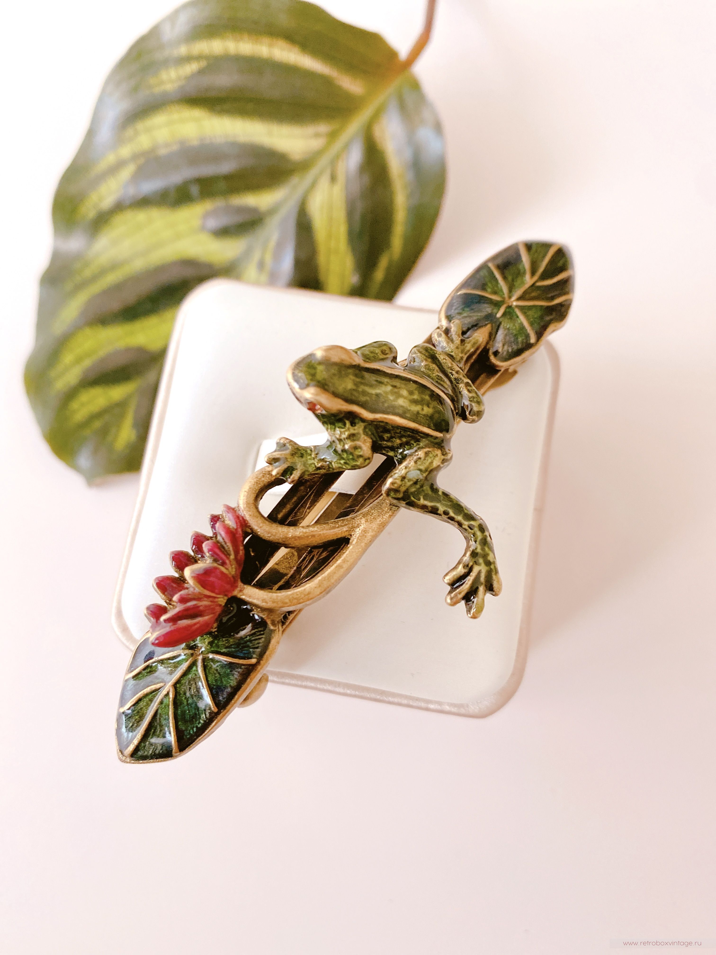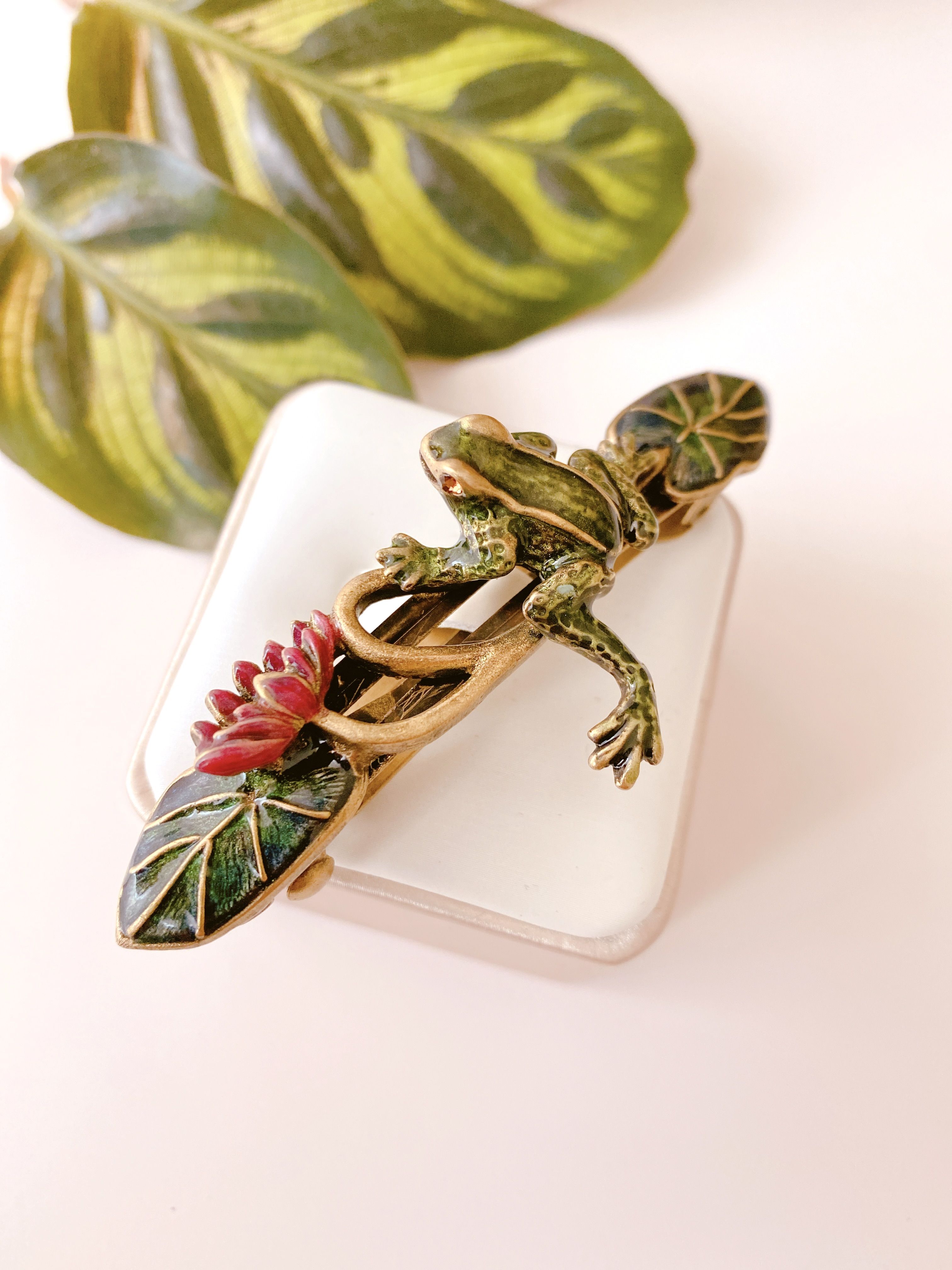 SWEET ROMANCE Заколка-автомат «Лягушка на кувшинке» — элегантность, которая чарует.