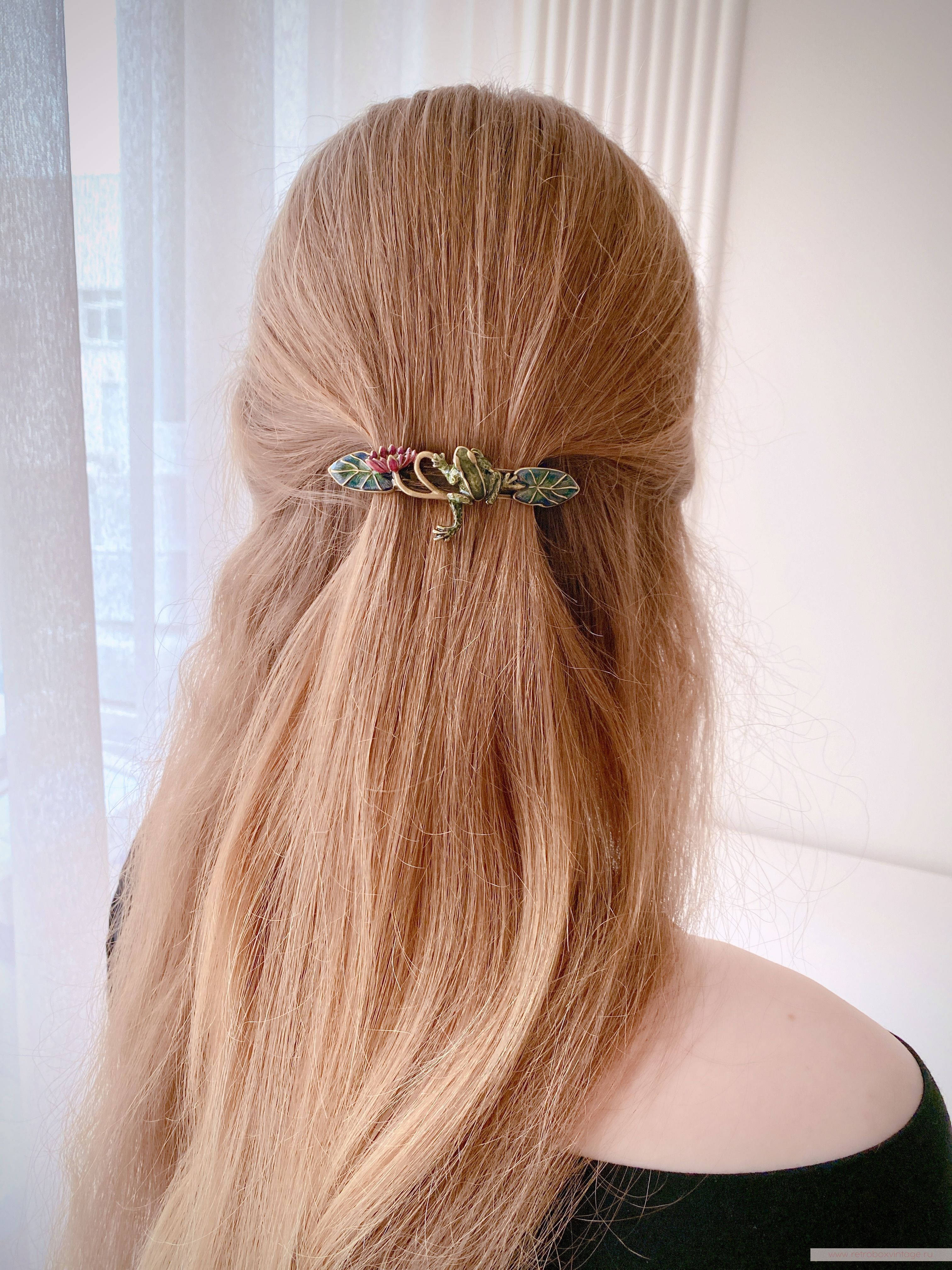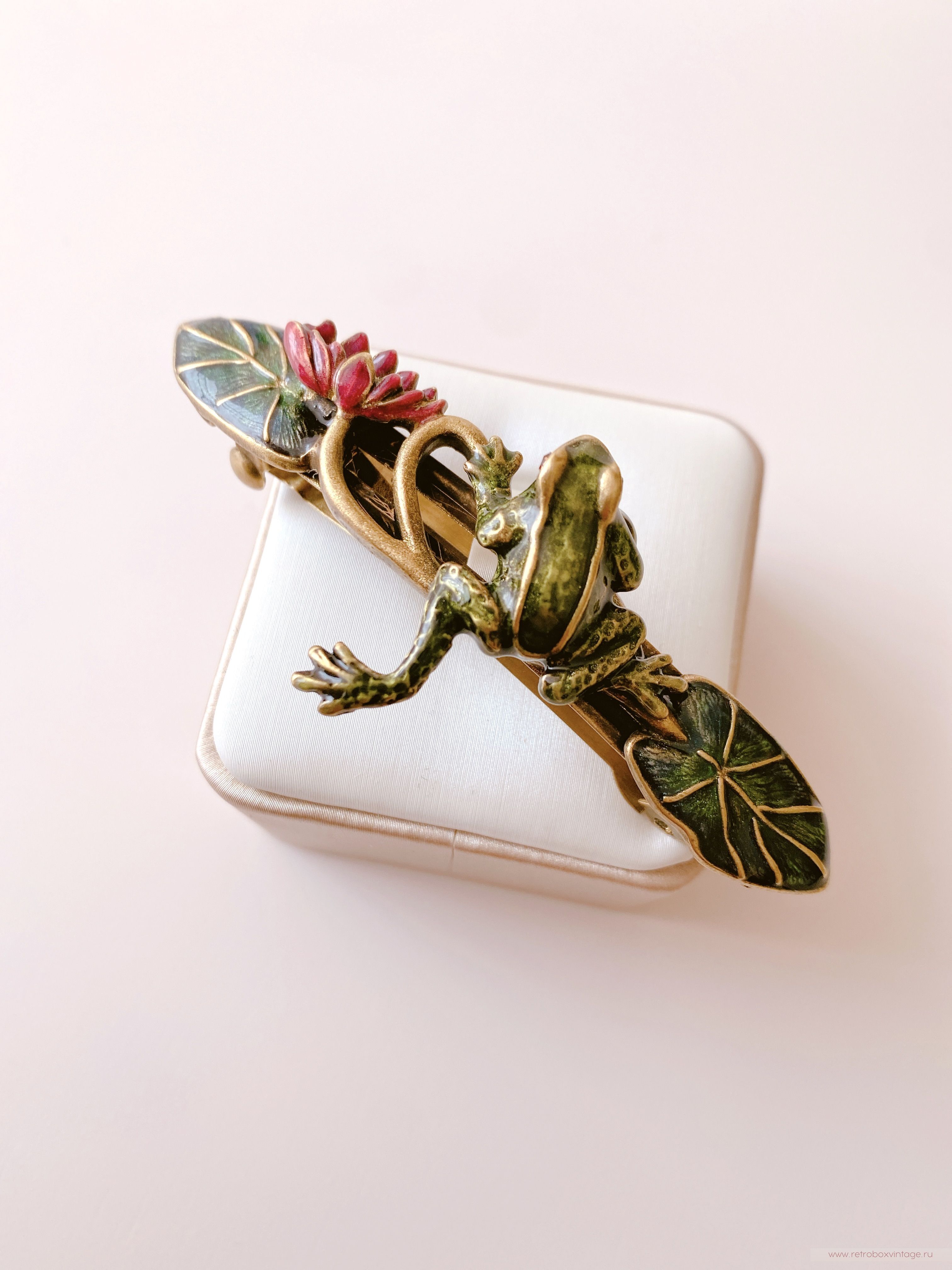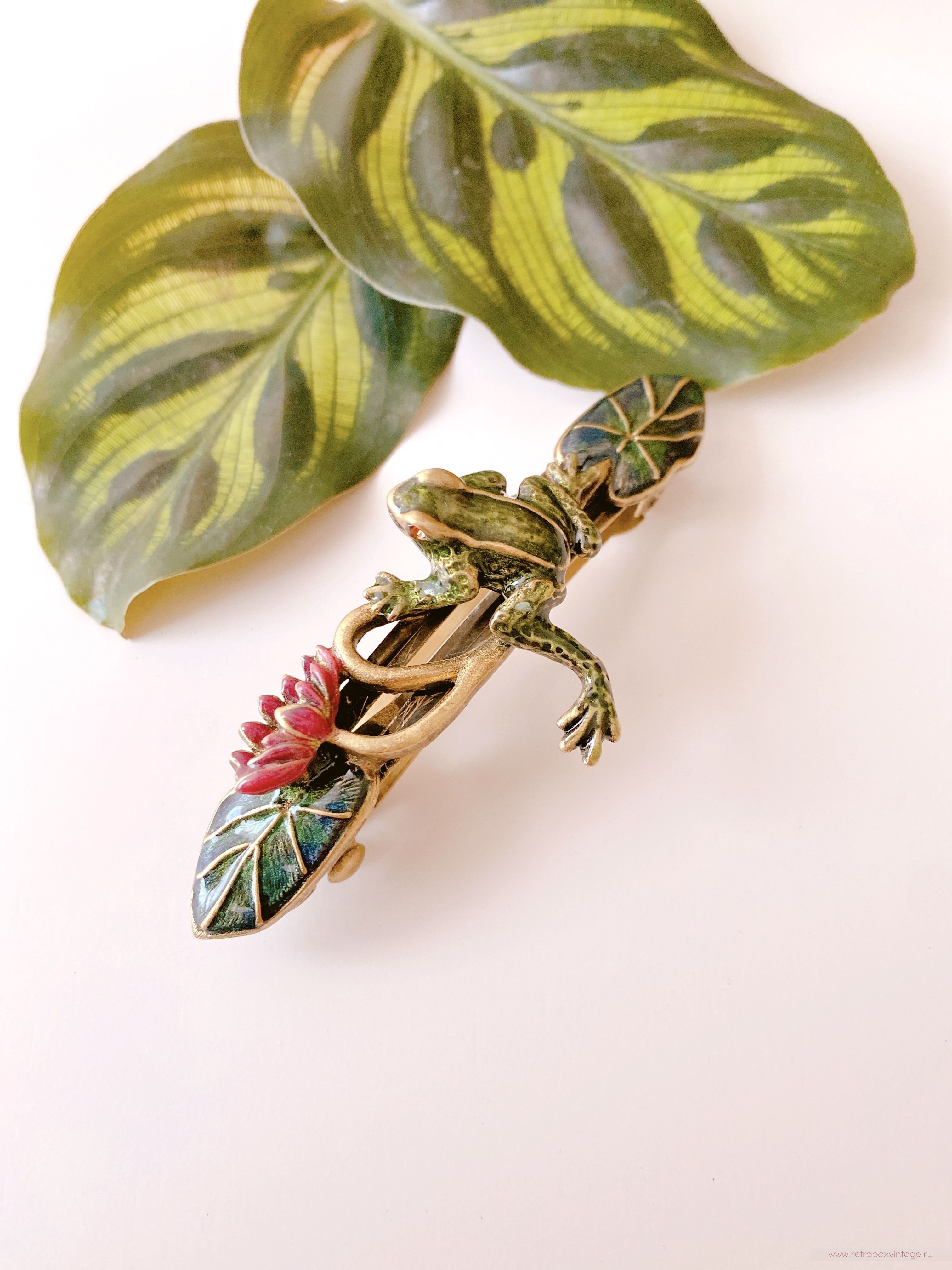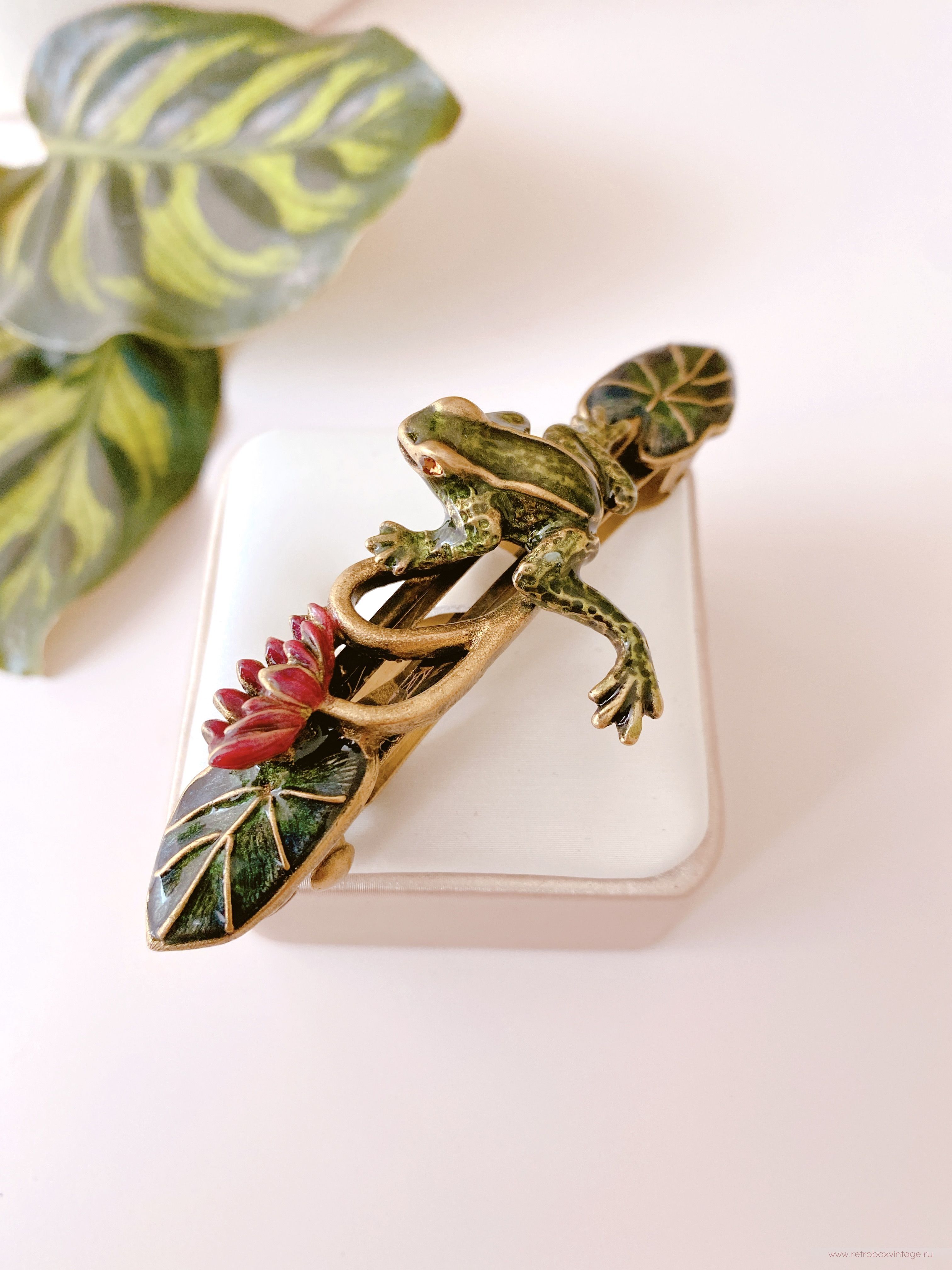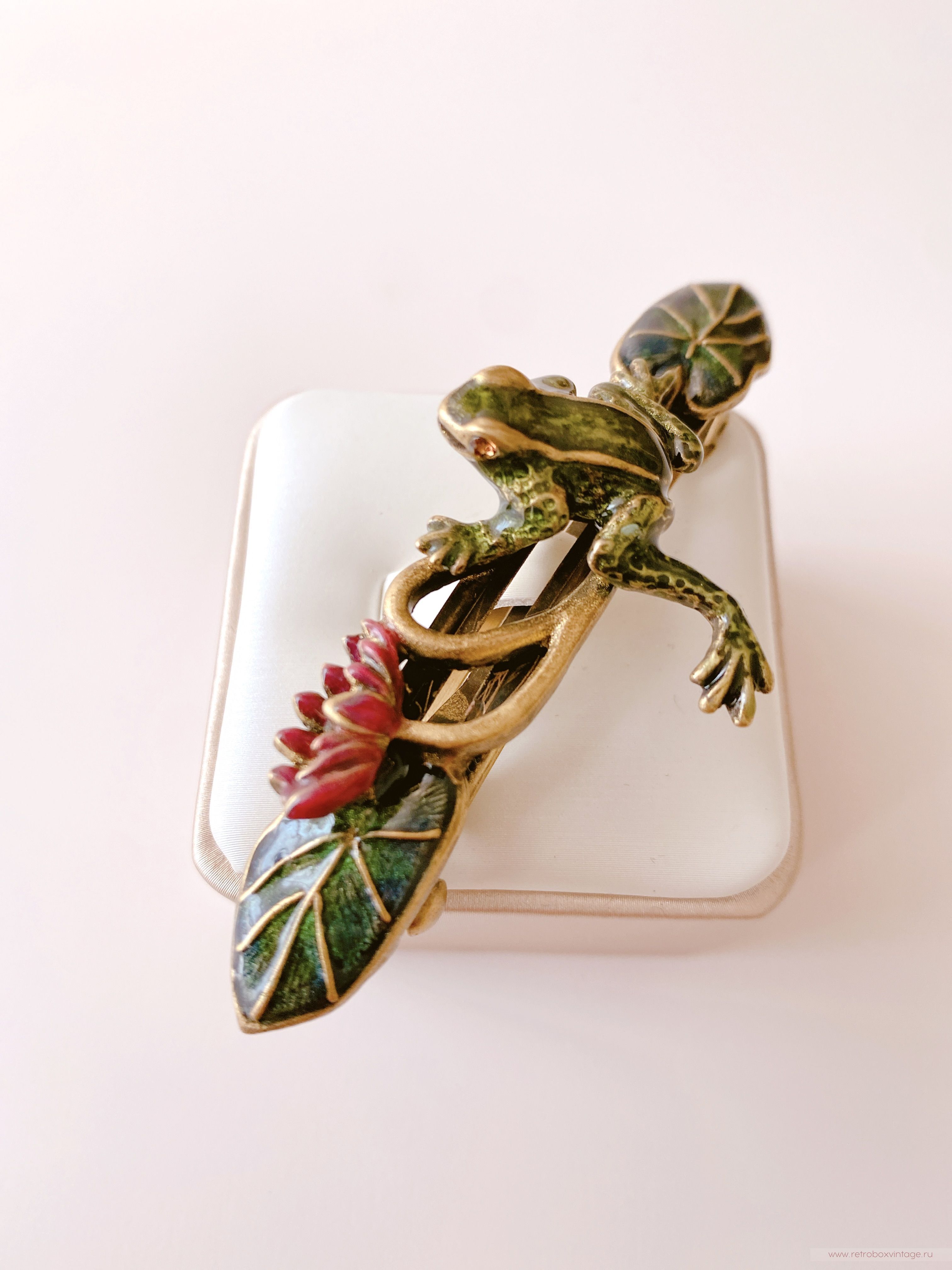 SWEET ROMANCE Заколка-автомат «Лягушка на кувшинке» — элегантность, которая чарует.