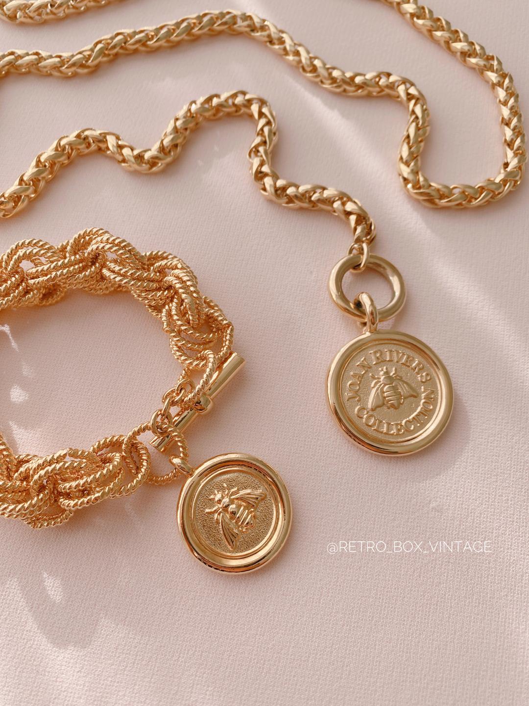 Только представьте, какой силой наделено это украшение! Медоносная труженица от Джоан Риверс выполнена с особой любовью и «напечатана» на обеих сторонах монетки. И даже цвет в этом ожерелье не случаен: золото - символ богатства и роскоши.К кому перелетит эта медовая красоточка?