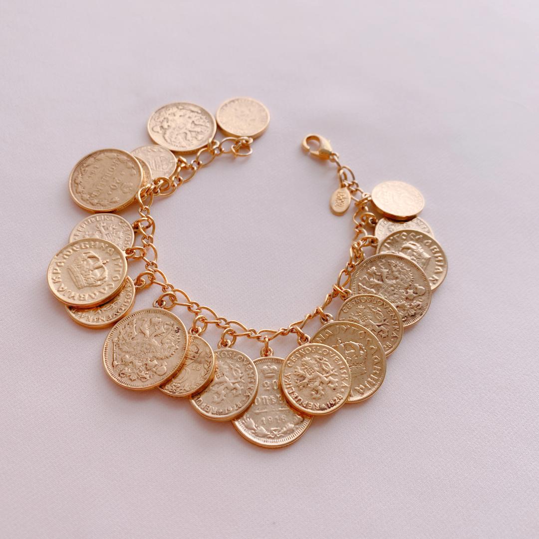 Разве что украшения с монетами! Ожерелья и браслеты со стилизованными центами, фунтами и рублями не выходят из моды последние несколько лет. Они органично вписываются в стили Boho Chic, Bohemia, Gypsy, Trible и легко находят общий язык с льняными рубашками или туниками, трикотажными футболками или топами.Наши предки наделяли украшения с монетами особой магической силой.