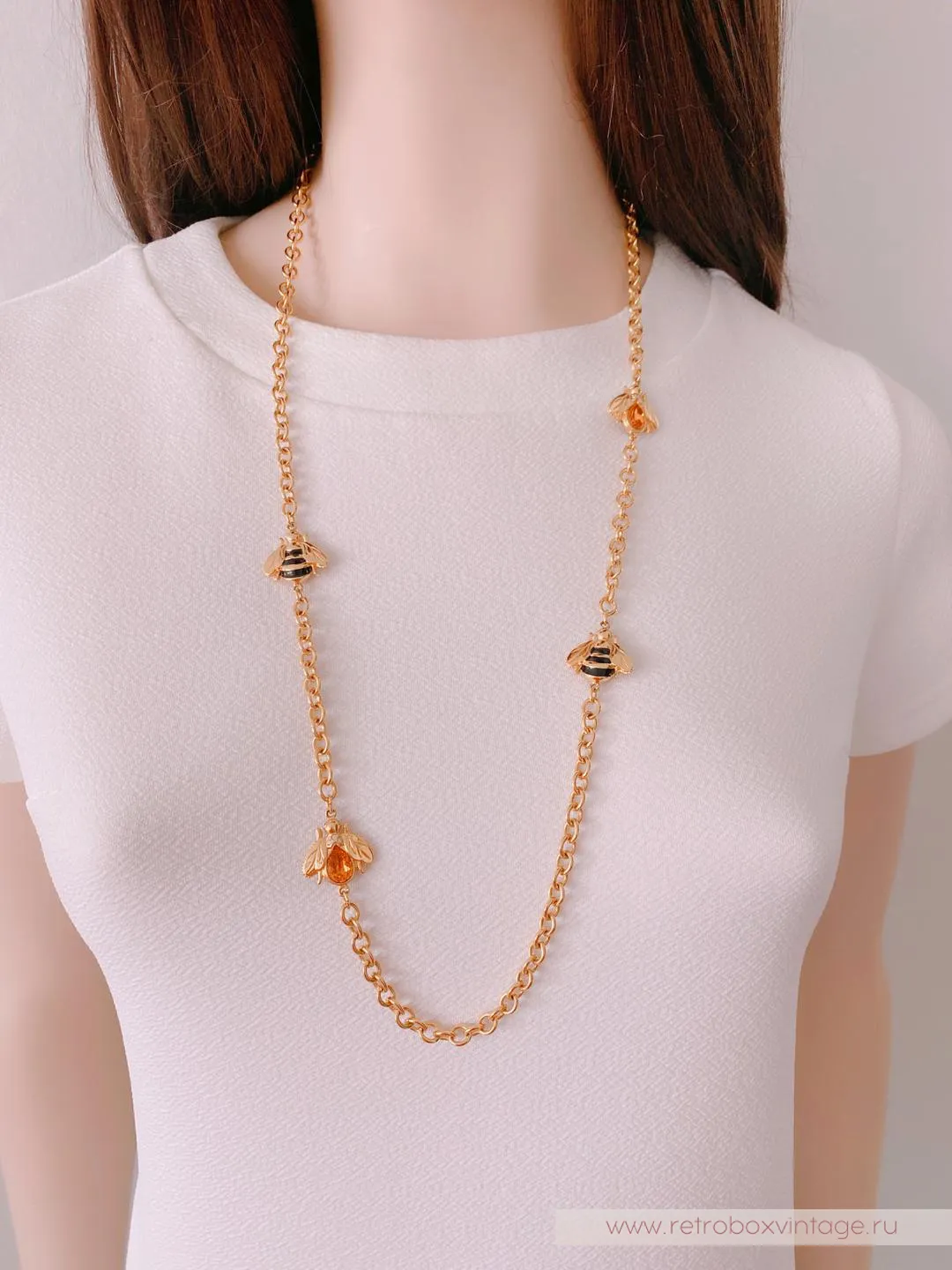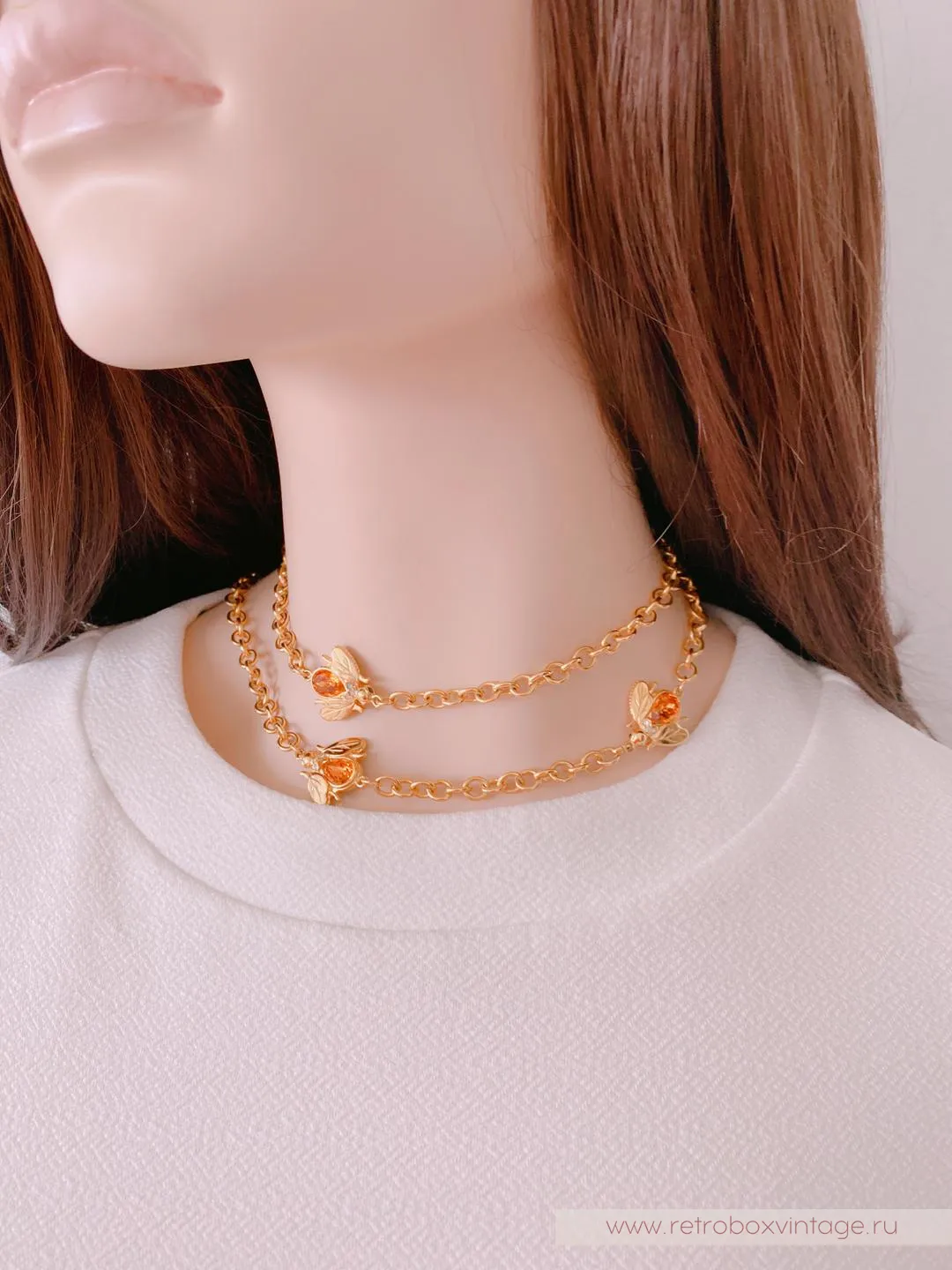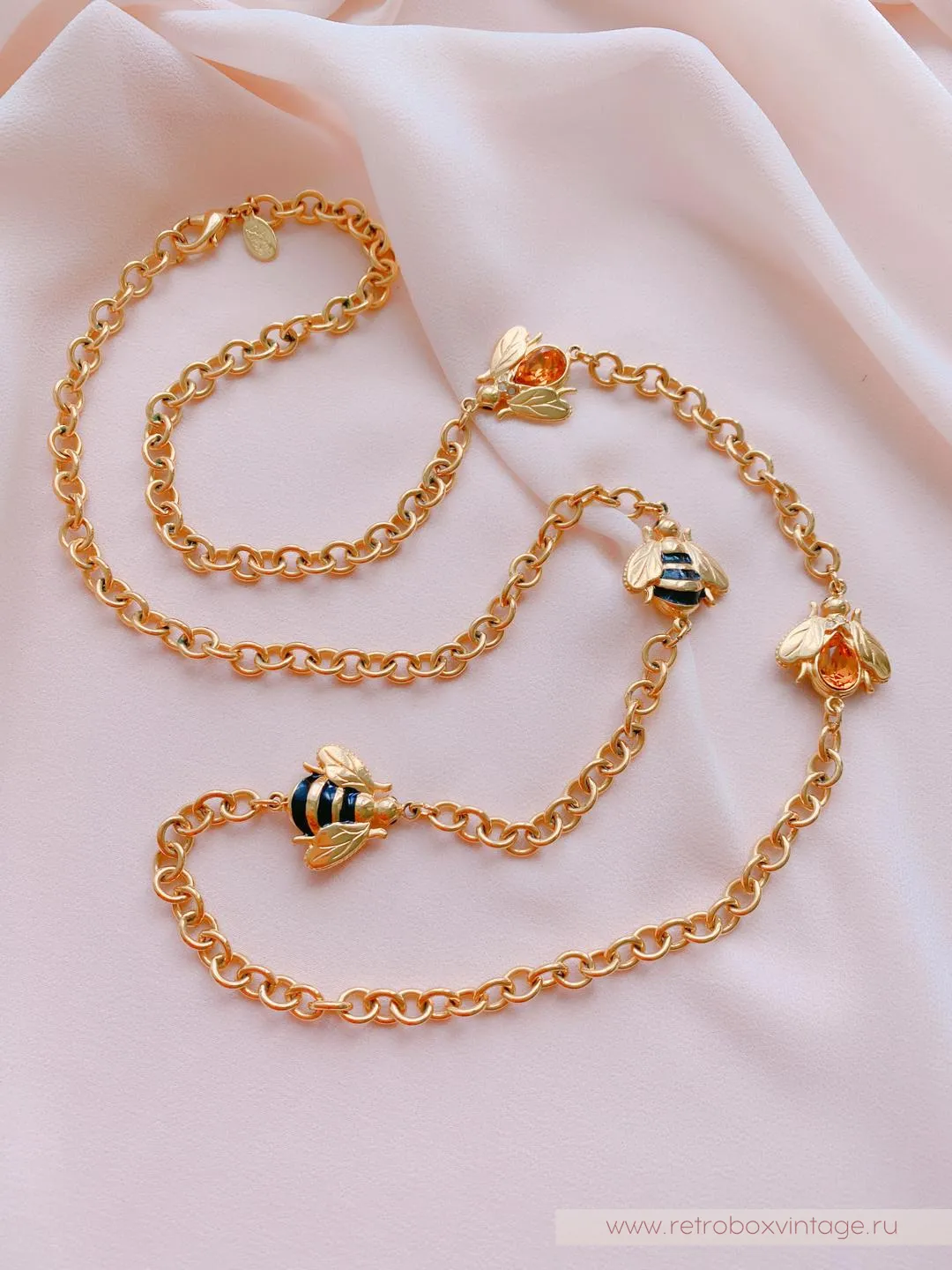 Каждая пчёлка - двусторонняя: с одной стороны полосатые брюшки, а на обороте - медовый кристалл. Как красиво будет играть это ожерелье в движении, поворачиваясь к окружающим то одним, то вторым бочком. И даже цвет здесь не случаен: золото - символ богатства и роскоши.Украсьте себя этим редким аксессуаром с медовыми пчелками и ваша жизни станет слаще! От комплиментов, как минимум.