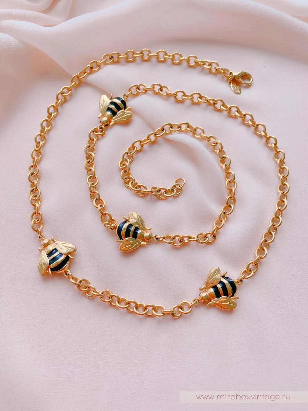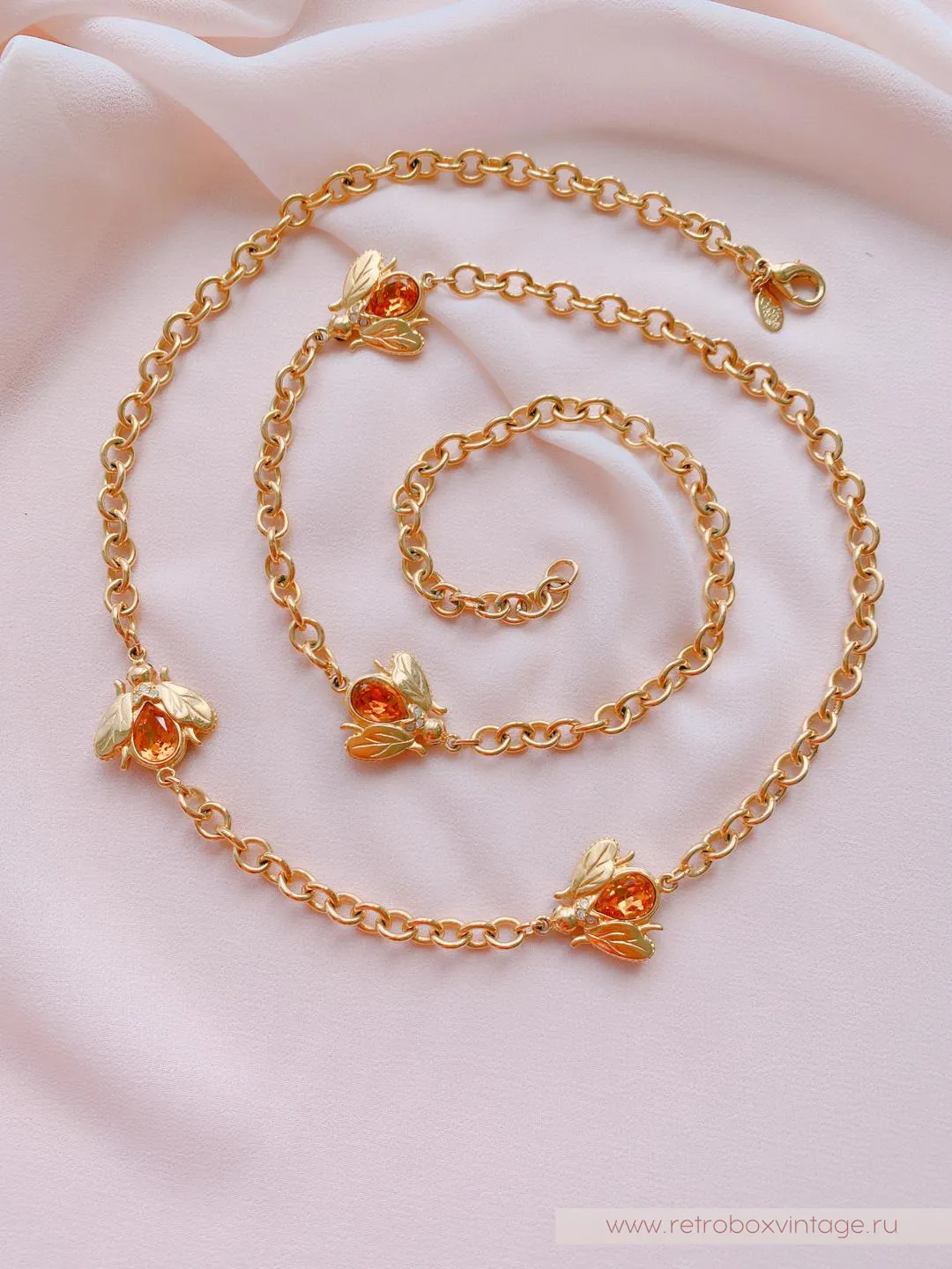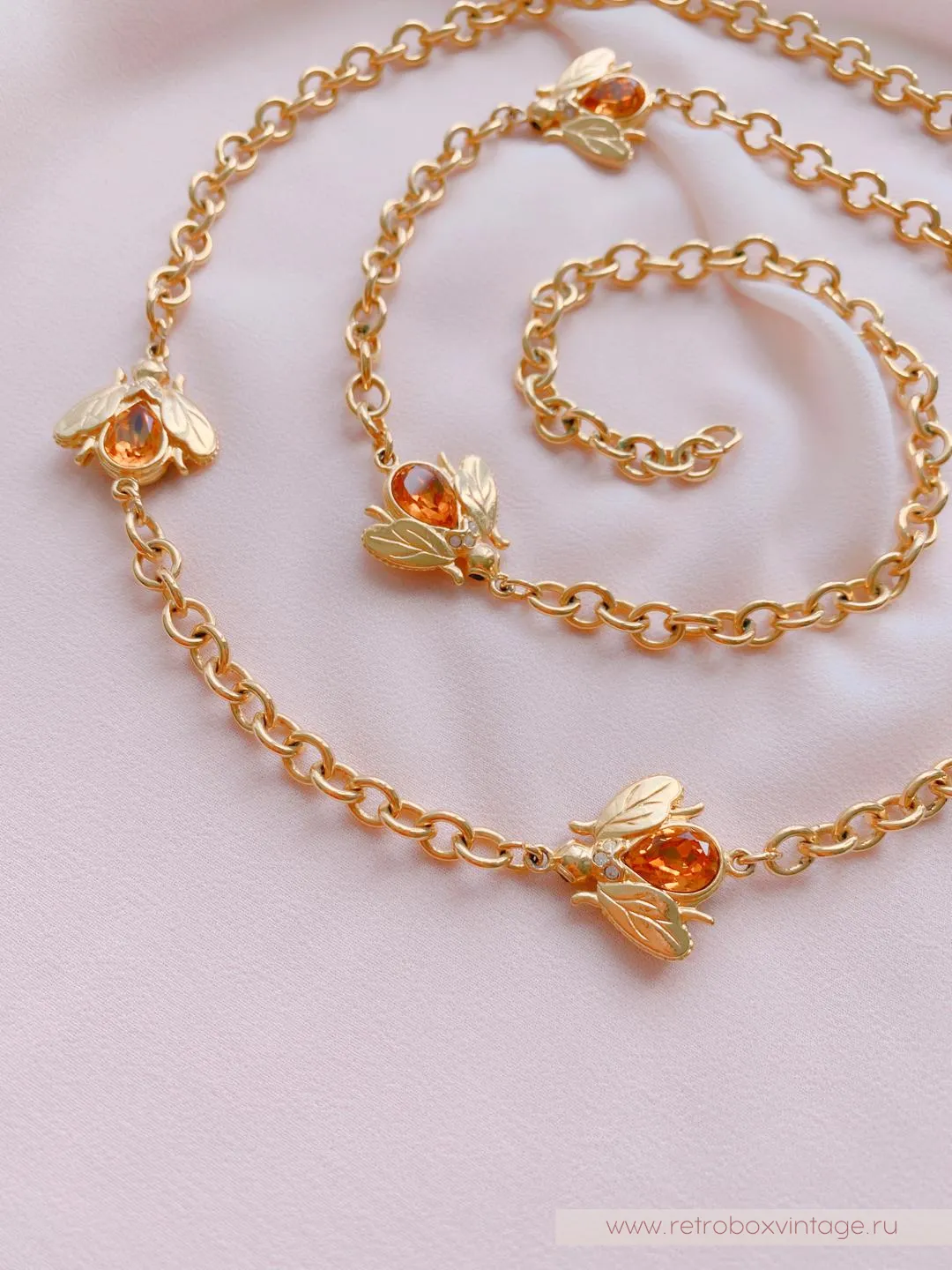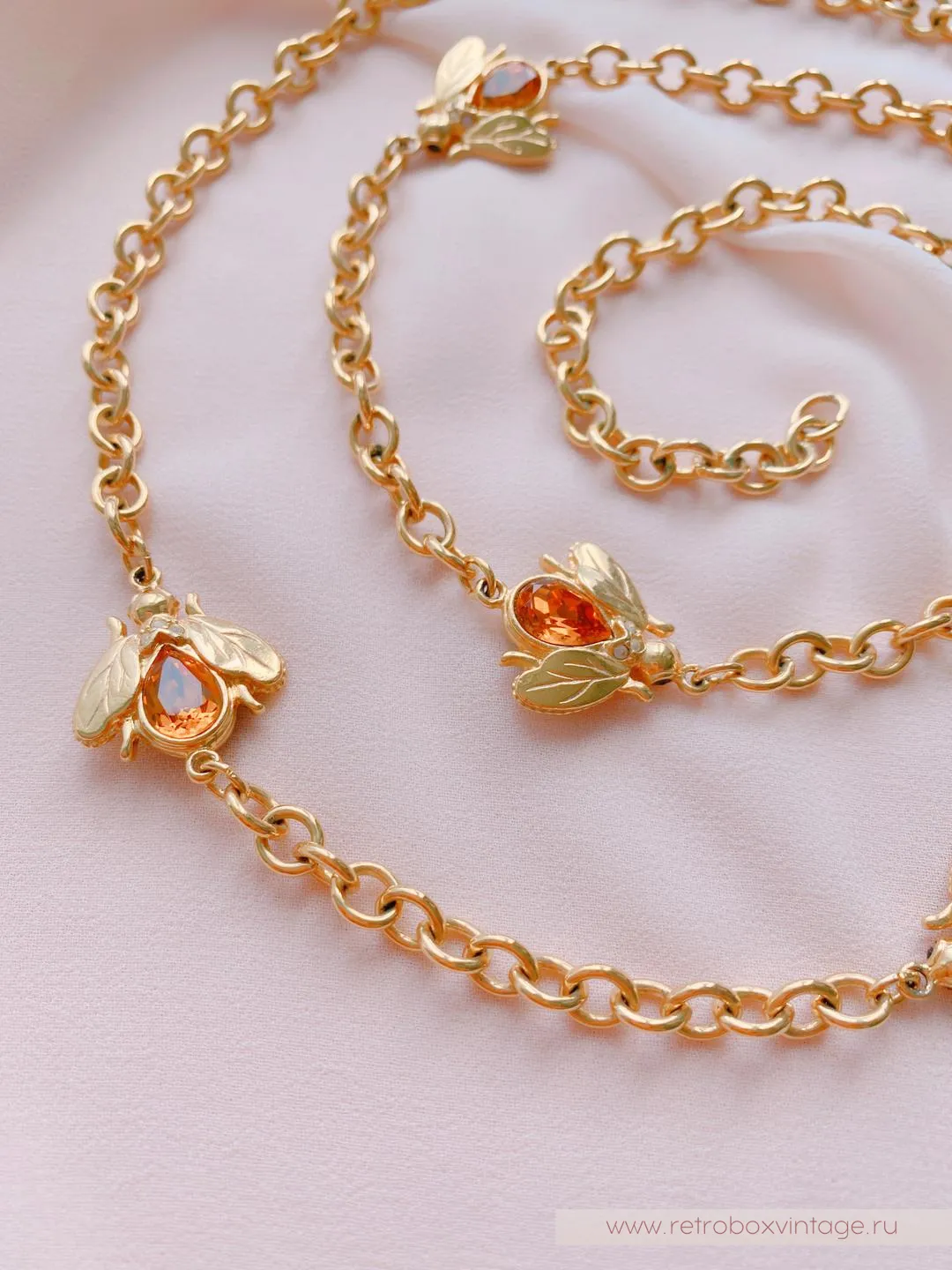 Каждая пчёлка - двусторонняя: с одной стороны полосатые брюшки, а на обороте - медовый кристалл. Как красиво будет играть это ожерелье в движении, поворачиваясь к окружающим то одним, то вторым бочком. И даже цвет здесь не случаен: золото - символ богатства и роскоши.Украсьте себя этим редким аксессуаром с медовыми пчелками и ваша жизни станет слаще! От комплиментов, как минимум.