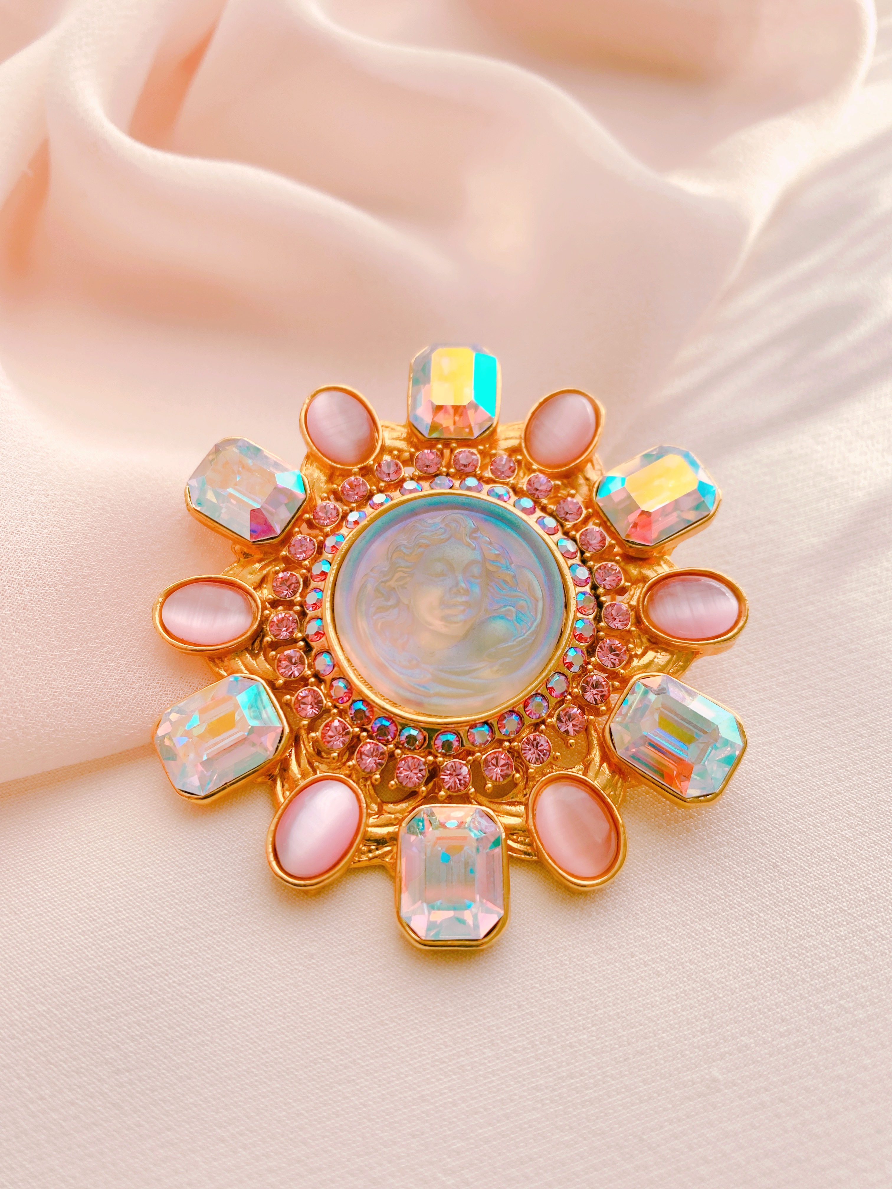 Бижутерный сплав, Кристаллы, Стекло опаловое, Позолота |
