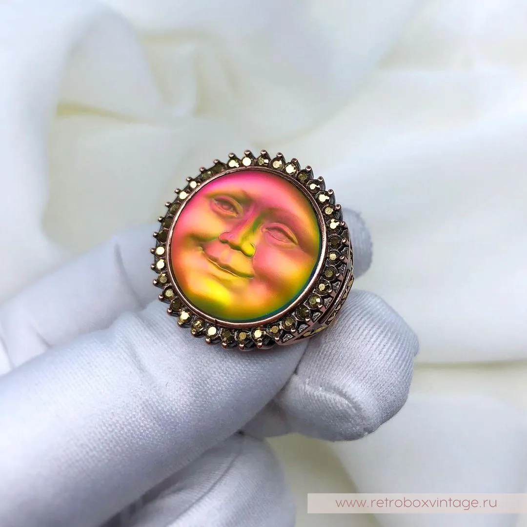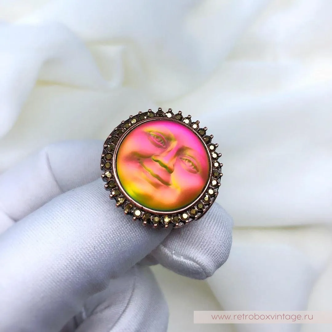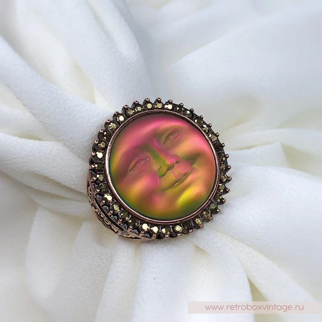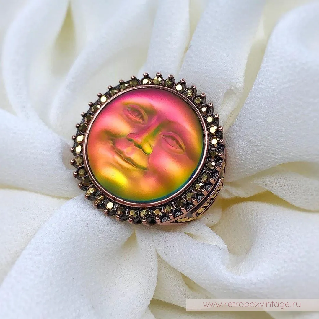Она по-прежнему живет в небесном дворце, а своим отражением любуется только с высоты звезд.Благодаря великолепной коллекции украшений KIRKS FOLLY мы можем любоваться красотой прекрасной нимфы в ее удивительных воплощениях, подобных этим лунам, которые я называю хамелеонами.Невероятные переливы опалового стекла этого кулона чудесны: персиковый, золотистый, нежно-салатовый, зелёный, голубой и даже фуксия! Всеми этими цветами переливается лунный лик.