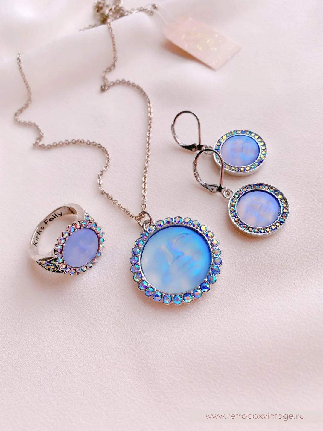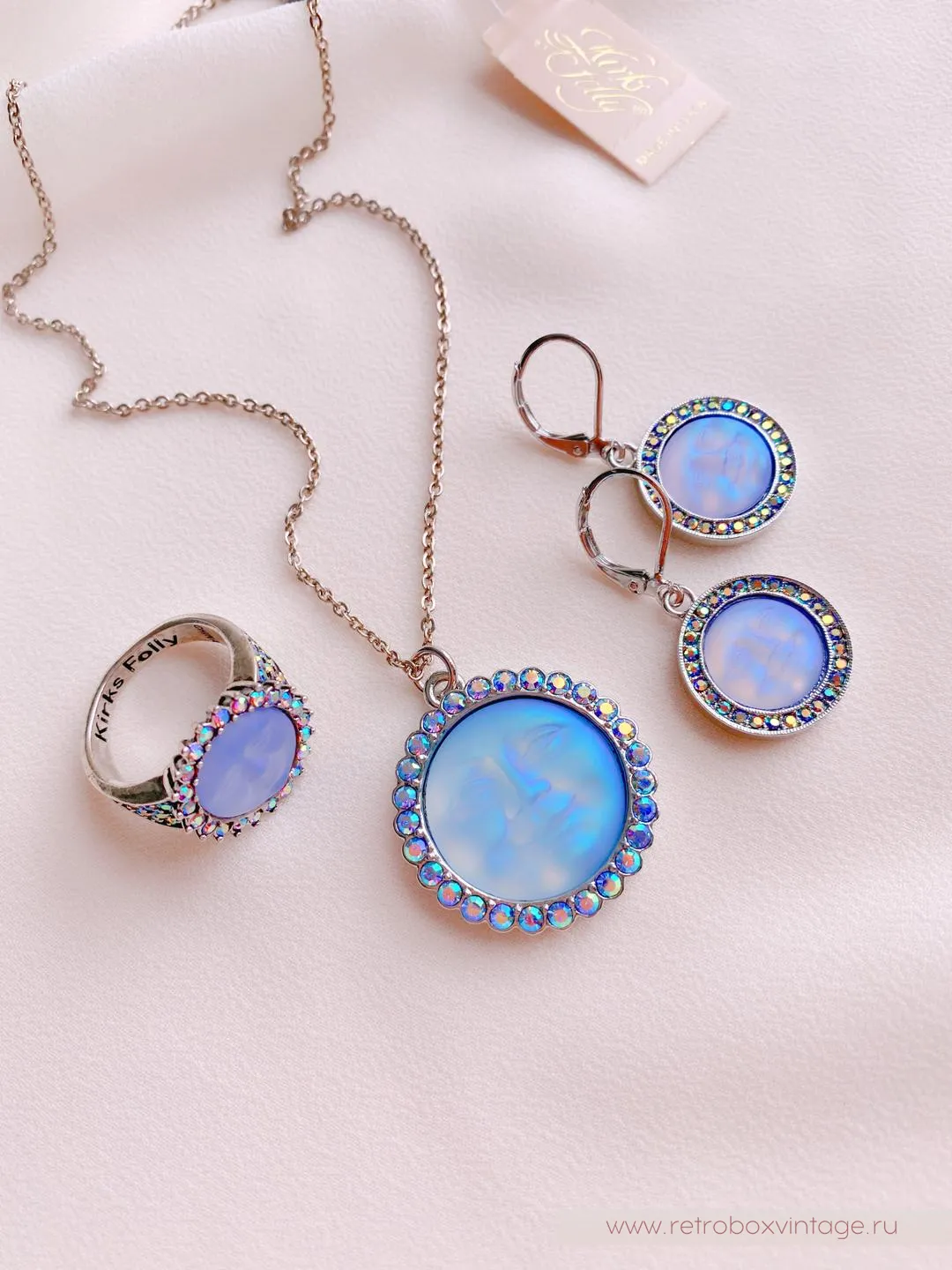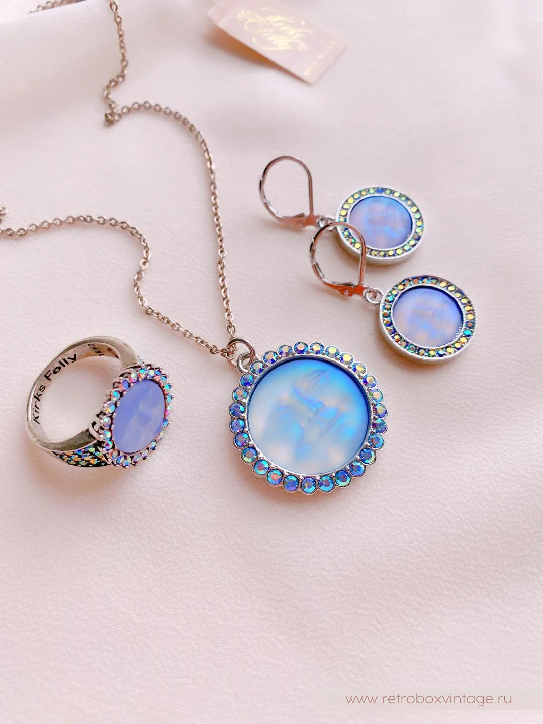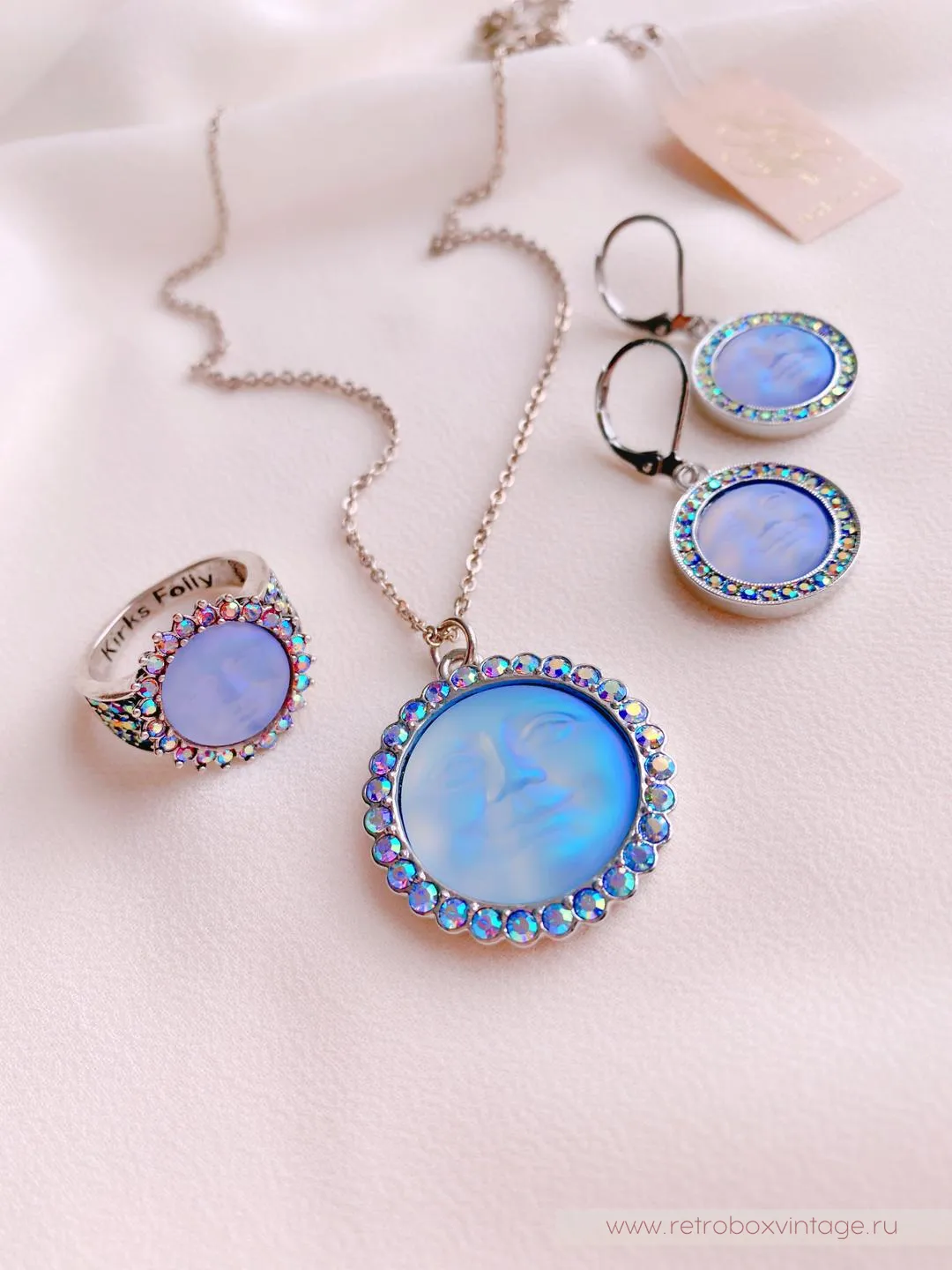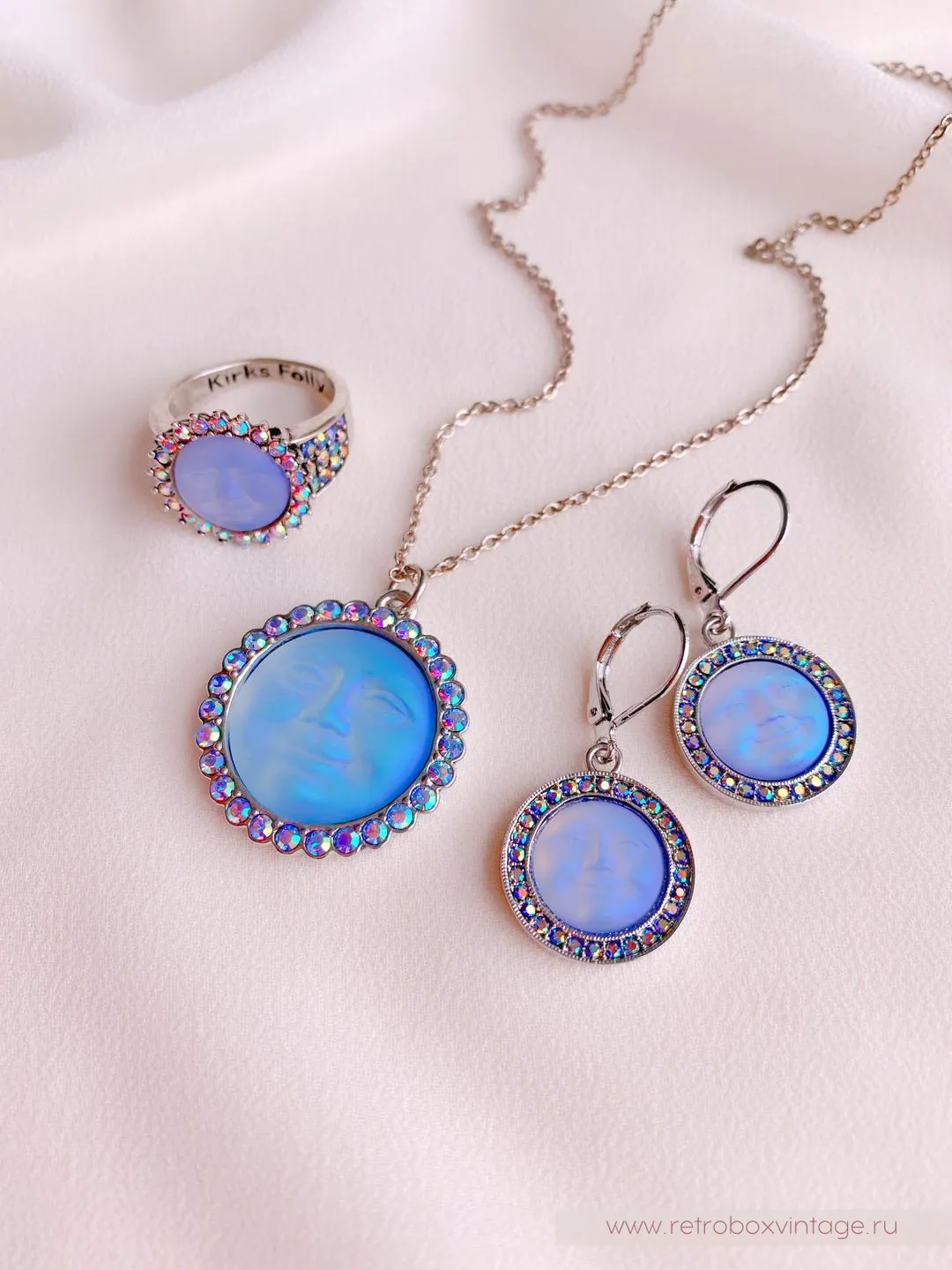 Но зачем же так долго ждать? Ведь маленькая копия ночного светила может появиться у вас уже сейчас. В виде очаровательных украшений от дизайнеров-мистификаторов KIRKS FOLLY.Каждая из лун в коллекции сама по себе большая редкость. Ведь все луноликие украшения изготавливаются исключительно вручную. Представьте себе, что пока кропотливые руки дизайнера создают луну из волшебного опалового стекла, ее оправу и инкрустацию, реальное светило проходит свой месячный цикл. Так долго производится каждый лик!