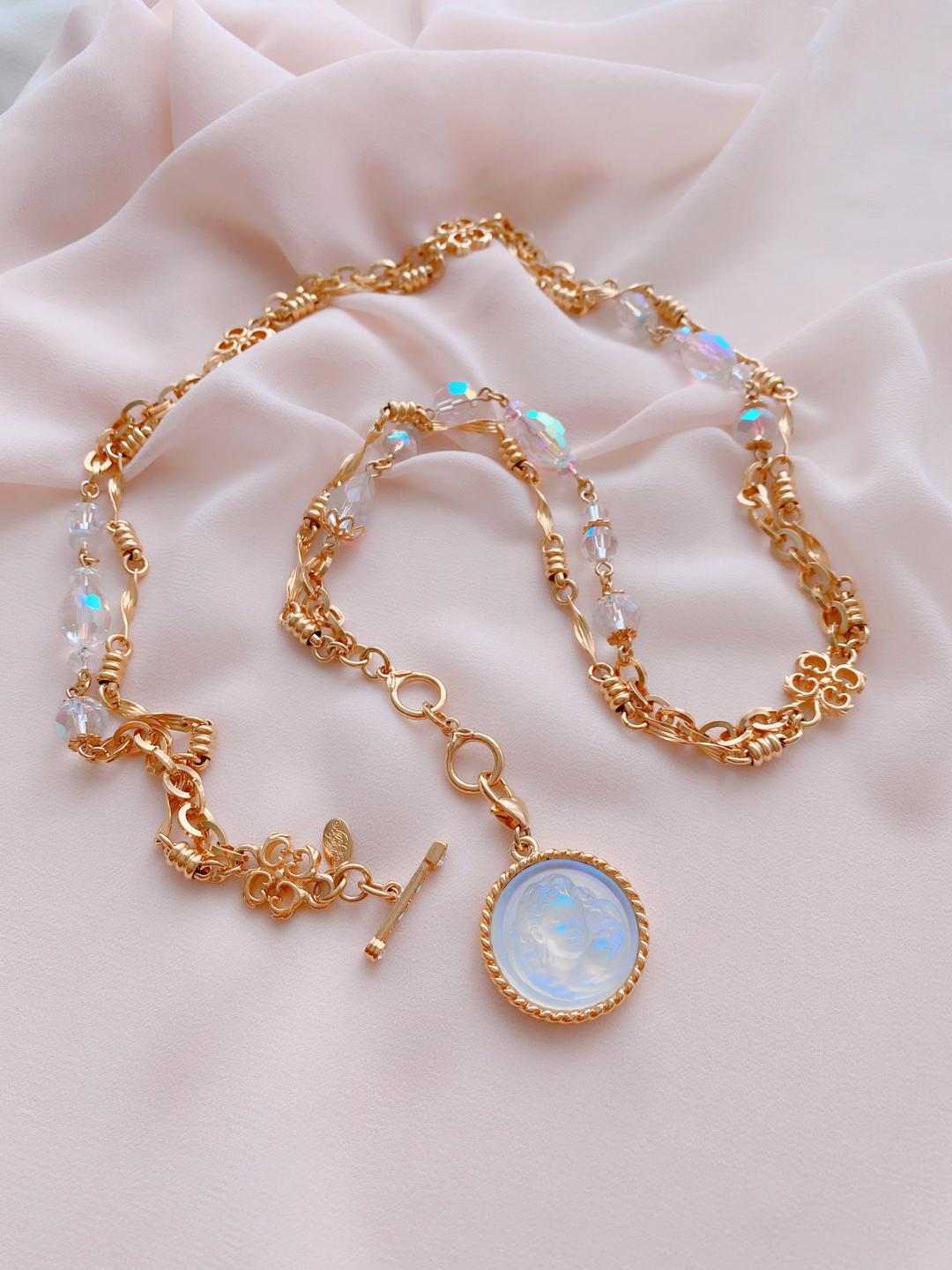 Бижутерный сплав, Кристаллы, Стекло опаловое, Позолота |