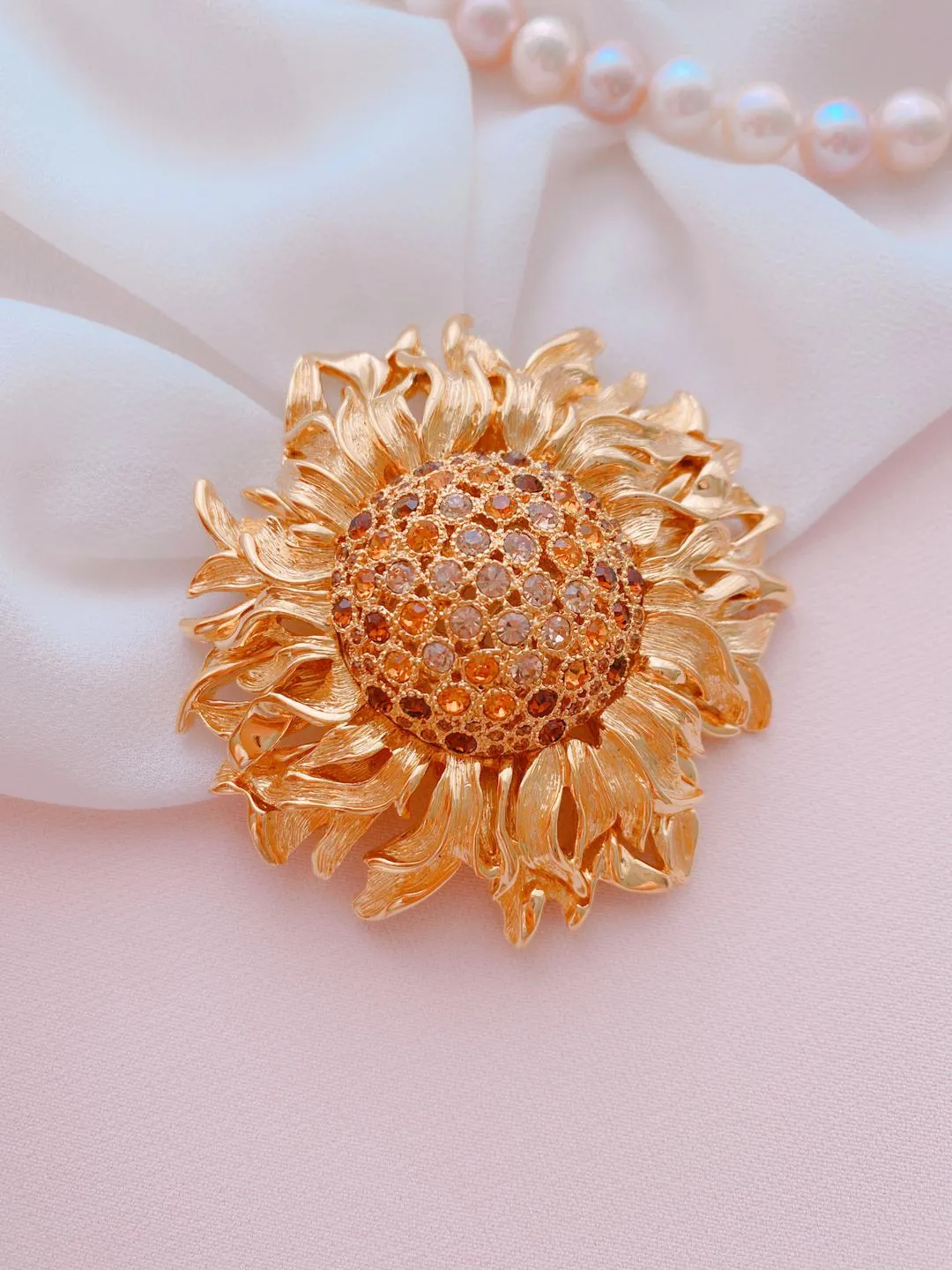 Подсолнух считается символом солнца, радости и полноты жизни у многих народов мира. Именно солнцу он обязан своей красотой, поэтому, выражая свою благодарность, он всегда раскрывается при его появлении, непрерывно поворачиваясь в направлении солнечных лучей.Брошь «ПОДСОЛНУХ» от MONET поражает реалистичностью исполнения: каждый листочек искусно повторяет растение.