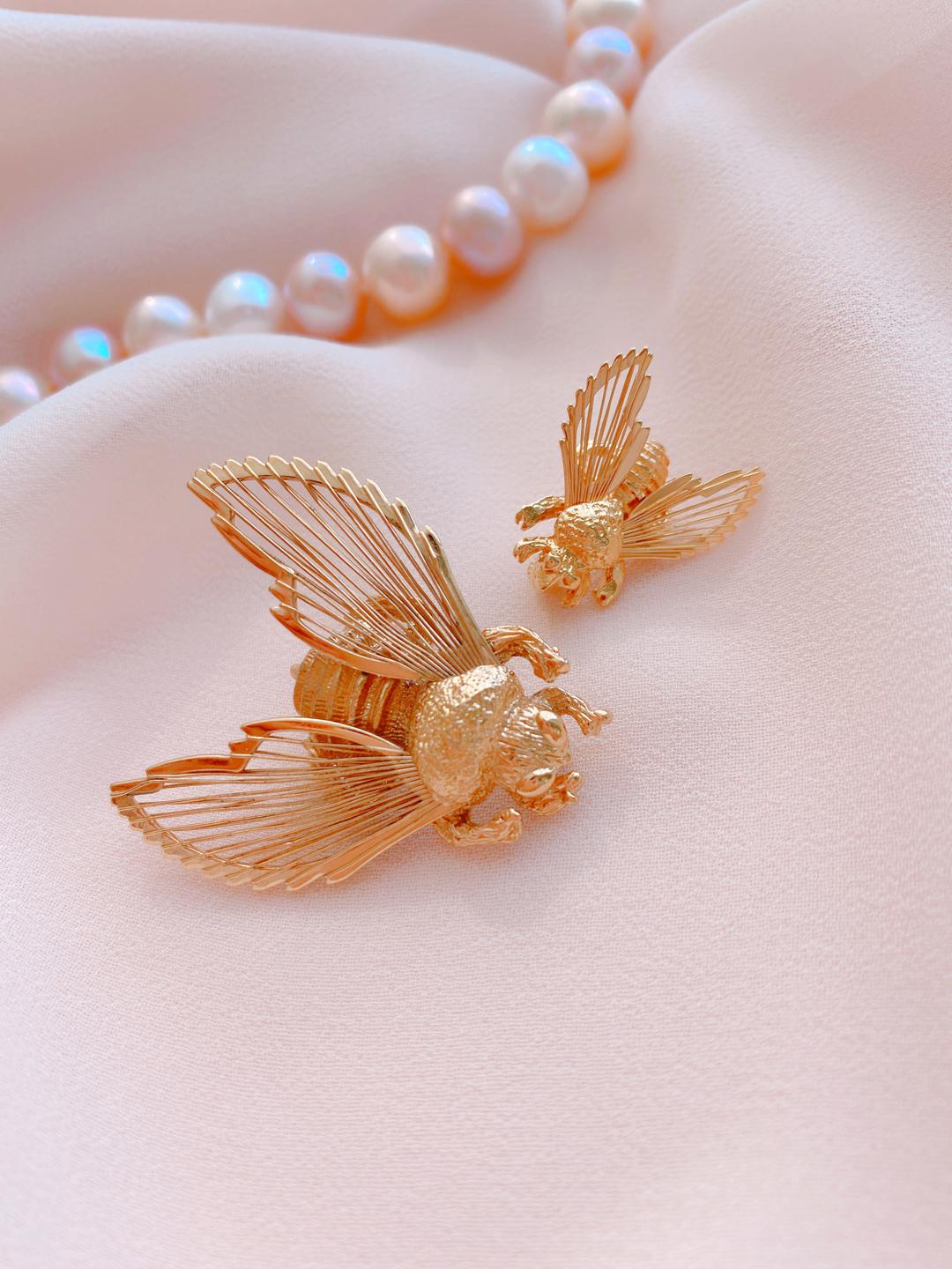 Пчелка в украшениях подчеркнёт ваше трудолюбие, поэтому их стоит заиметь тем, кто мечтает о повышении на службе. А если не хватает уверенности в собственных силах, то «пчелы» помогут справиться с волнением во время важной встречи. А уж о том, что труженица и ещё и символ красноречия говорить не приходится - «медовые речи» будут легки и непринуждённы.Только представьте, какой силой наделена эта медоносная пара! Коллекция выполнена с особой любовью! И даже цвет металла здесь не случаен: золото - символ богатства и роскоши.