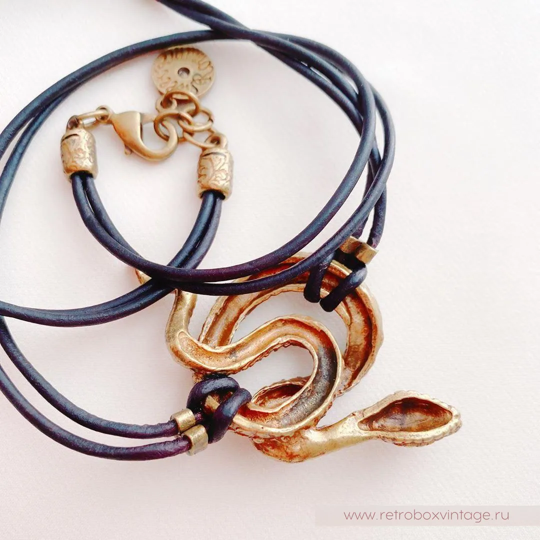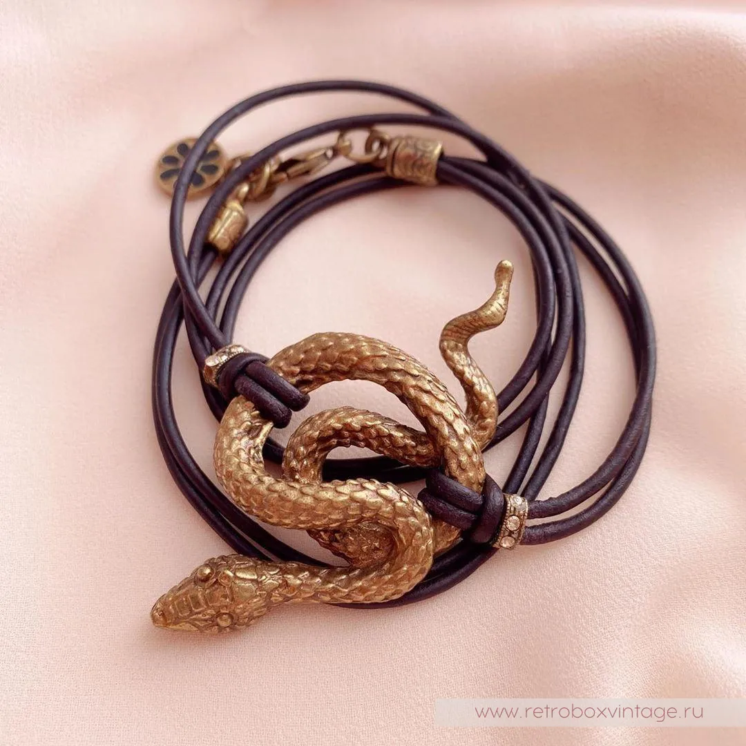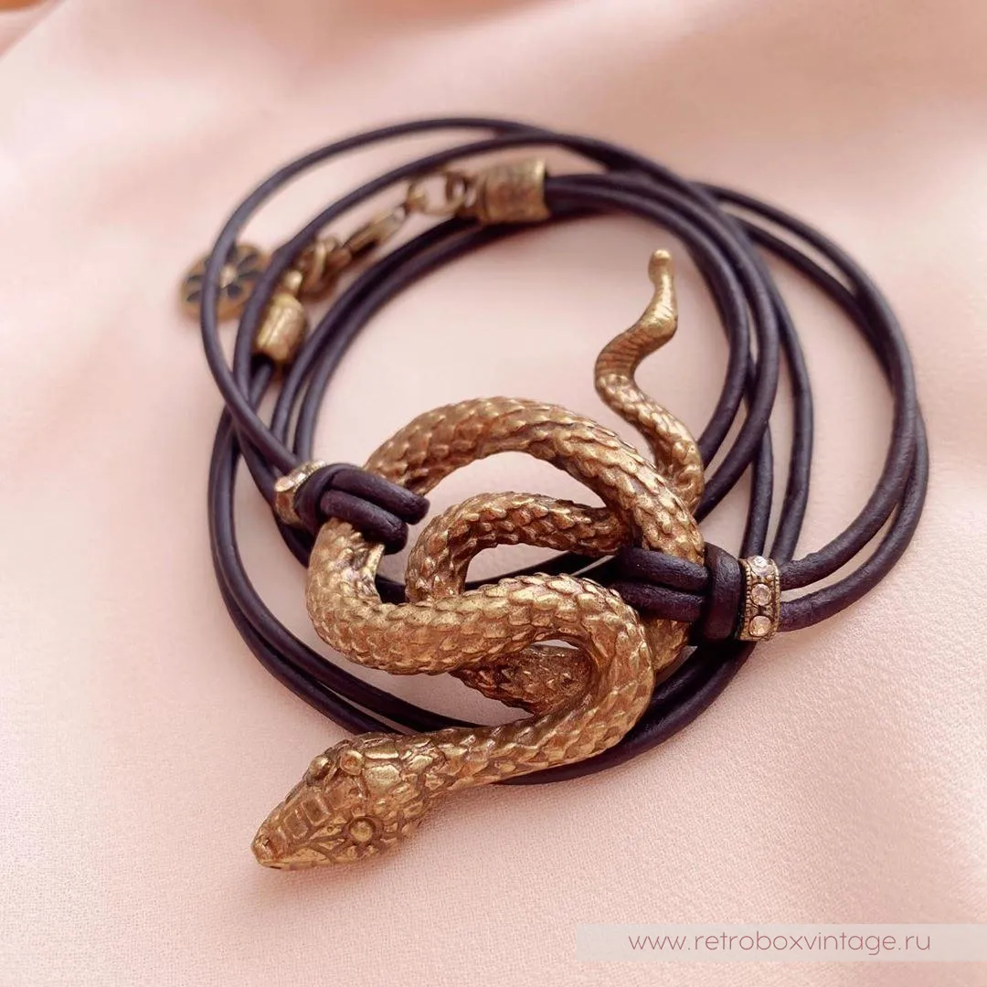 Дизайнеры марки утверждают, что украшение со змеей - лучшая защита и оберег от негативных энергий.Шнур выполнен из натуральной кожи, покрытой специальной обработкой.