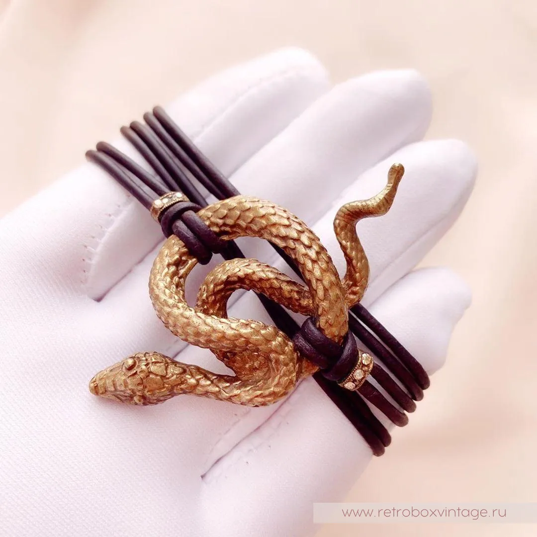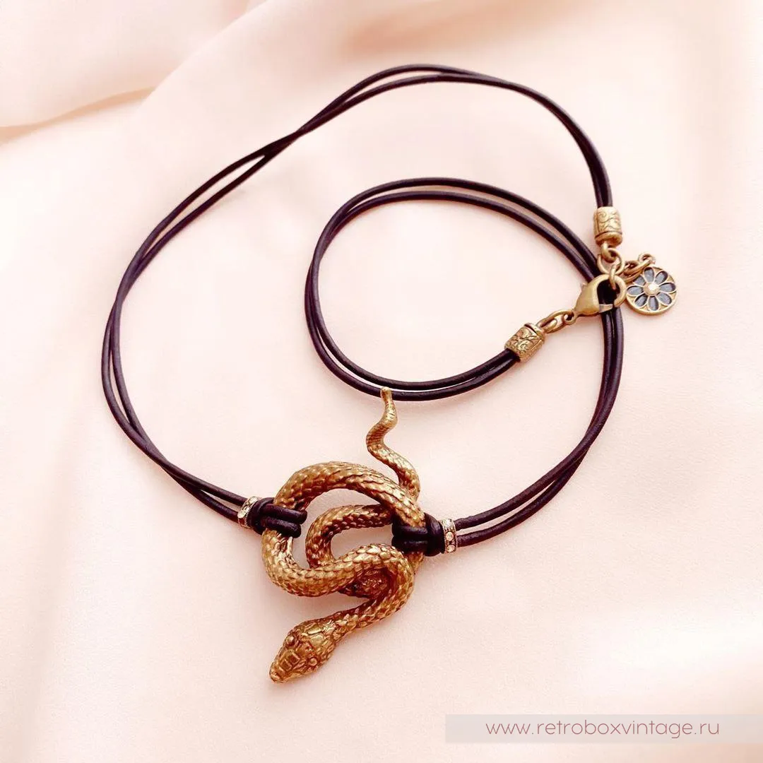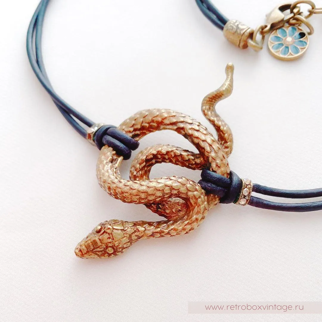 Дизайнеры марки утверждают, что украшение со змеей - лучшая защита и оберег от негативных энергий.Шнур выполнен из натуральной кожи, покрытой специальной обработкой.