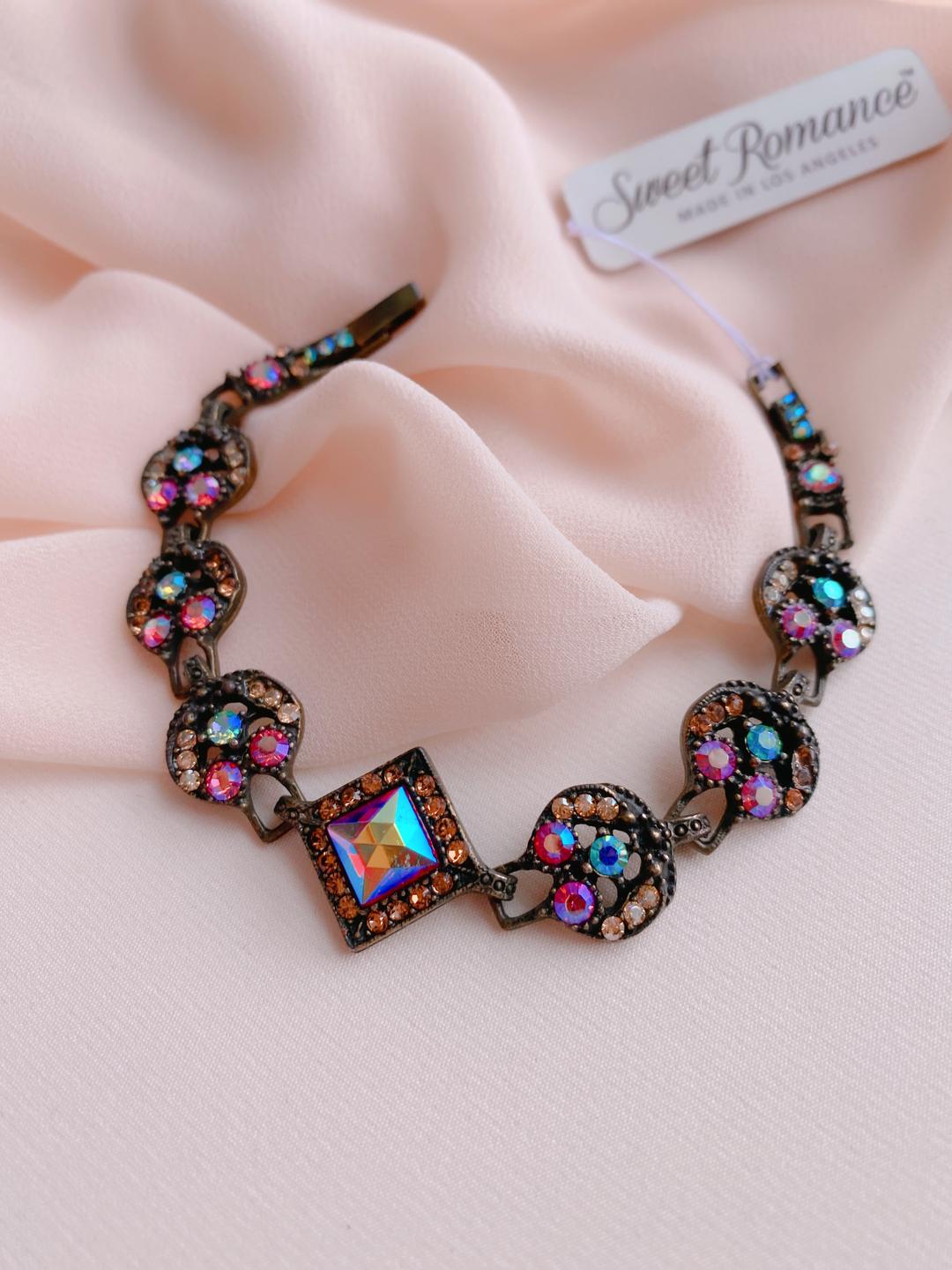 Коллекция украшений “Give me glamour” блистательна во всем: россыпь изумительных кристаллов Swarovski с особым эффектом «северное сияние», оттенённых цветом античной бронзы, буквально зомбируют! Яркий, лёгкий браслет станет вашим гламурным другом. Стоит закрыть глаза и Вы легко представите себя героиней гламурных журналов. А может быть даже актрисой прошлых лет? Почему бы и нет?!