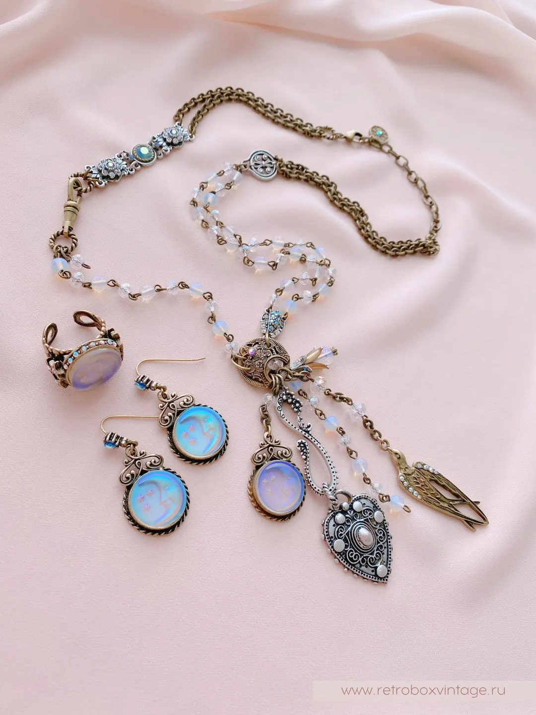 Взгляните на эти восхитительные луны! Их мягкое таинственное мерцание с переливами от голубато-розовых до цвета нежной лаванды завораживает. Внутренне свечение лунных украшений пленит нас раз и навсегда. Согласитесь, такие украшения не останутся незамеченными.А вы в таком украшении засияете подобно луноликой богине и обязательно ощутите прилив женской энергии!