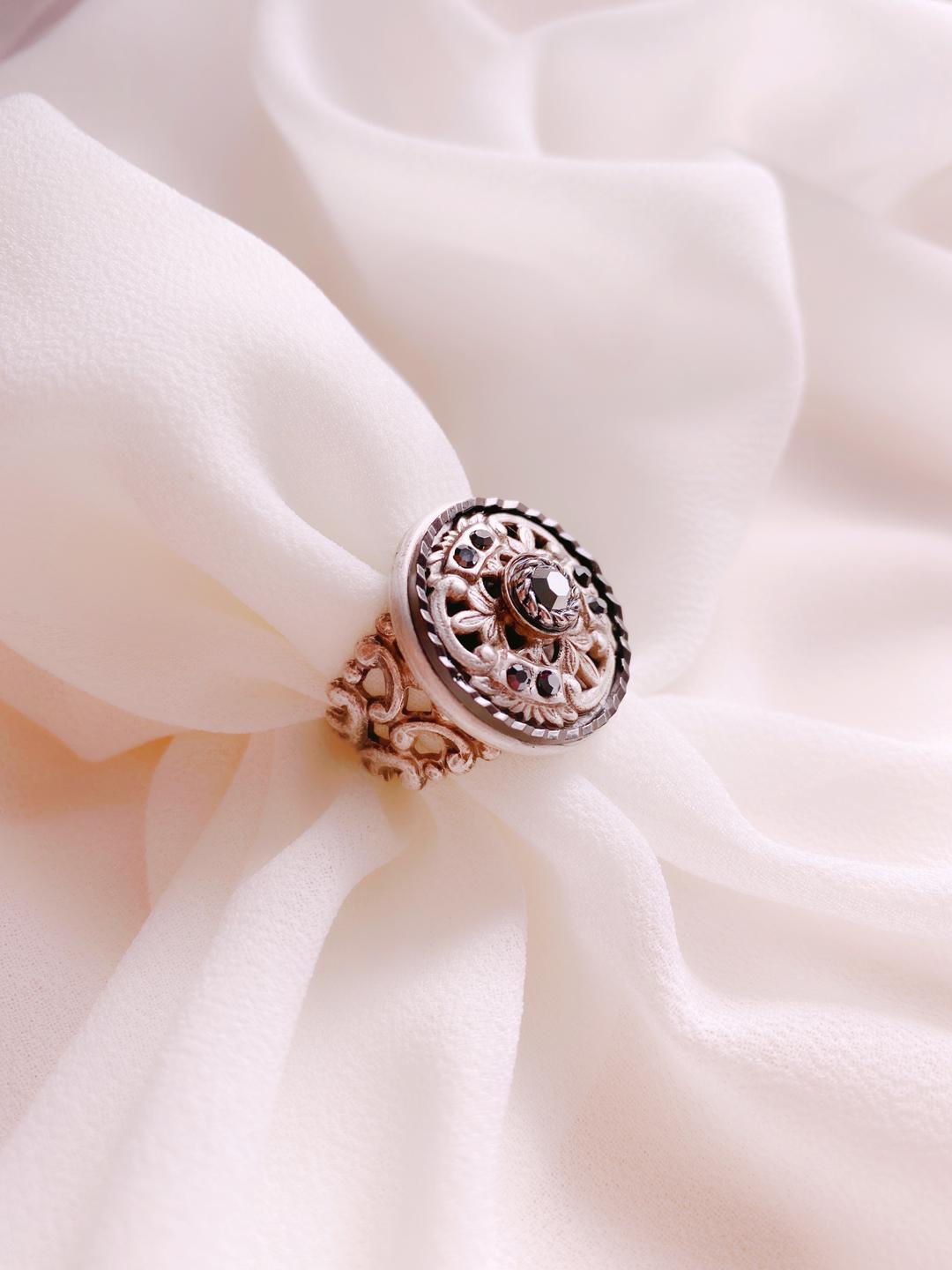 Кольцо - не сомкнуто, размер регулируется с 16 до 19, диаметр медальона 2 см |