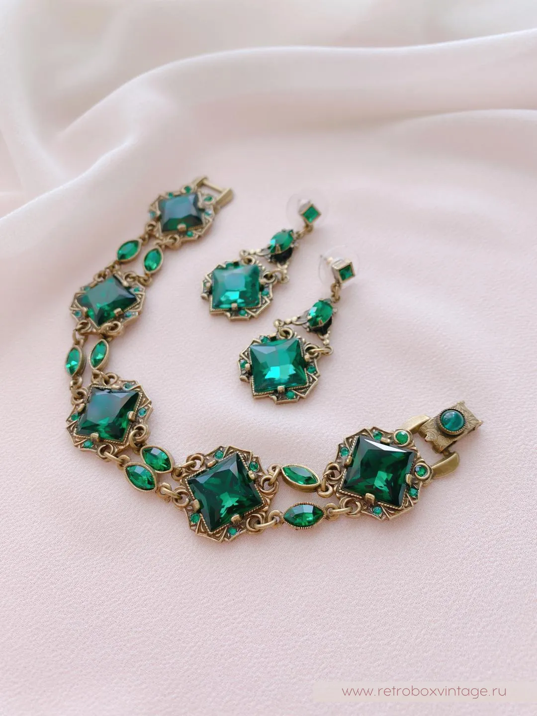 Окунуться в изумрудную магию, благодаря этим великолепным браслету и серьгам SWEET ROMANCE, можем и мы с вами, милые леди. И для этого совсем не обязательно иметь на голове венец. Ведь в сердце каждой из нас живет королева.В этих великолепных украшениях крупные изумрудные кристаллы выглядят центром притяжения. Кажется все внимание дизайнера сосредоточенно на том, чтобы подчеркнуть глубину изумрудного сияния. С таким комплектом любой образ способен стать величественным, а взгляд приобрести пленительное очарование Клеопатры.Кто из вас готов примерить на себя и пустить в ход магию изумруда?