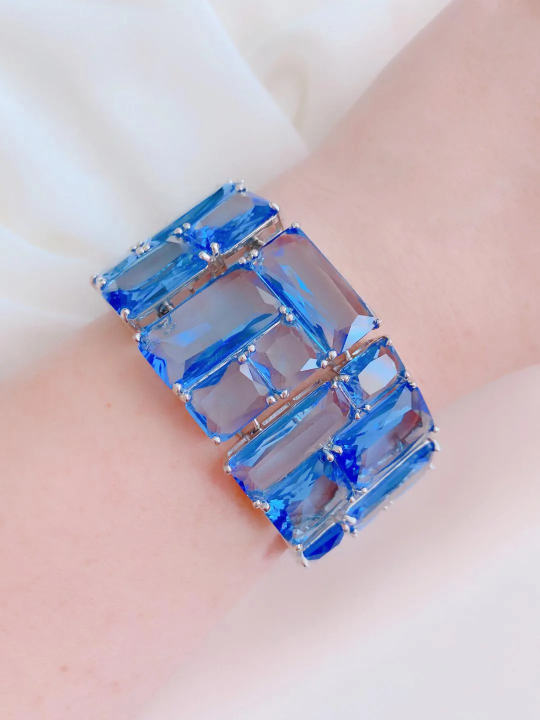 Взгляните, как притягательно смотрится этот восхитительный браслет от CAROLEE. Он чист и прозрачен как сама водная гладь. Десятки изумительных лазурных кристаллов с едва заметными креплениями будто сливаются в один поток, хрустальной чистоты.Так приятно ощущать на запястье прохладу и свежесть, которые дарит это украшение.