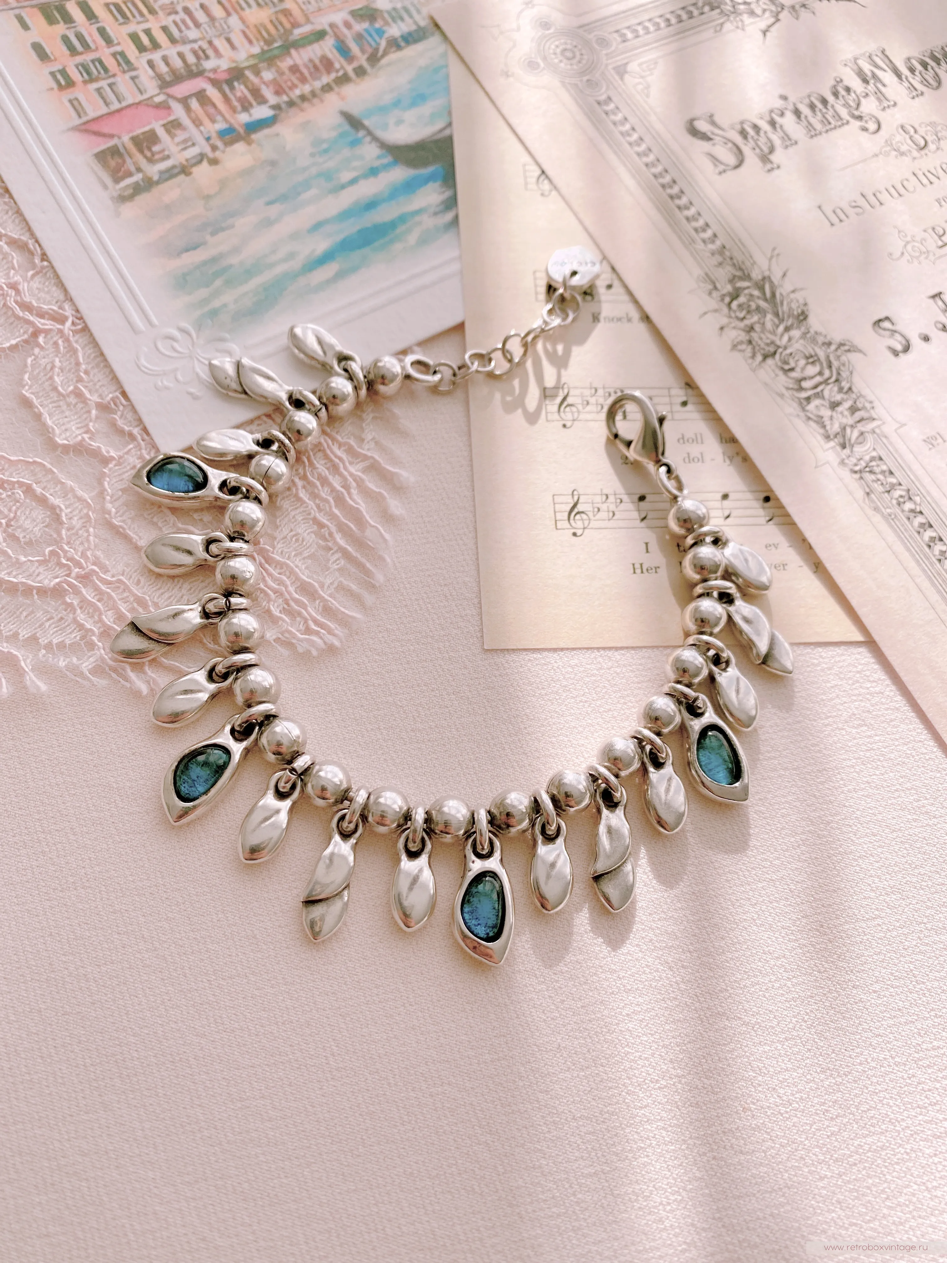 Раннее утро окутывает город лёгкой дымкой, и первые солнечные лучи скользят по воде, рассыпаясь переливами, словно сама природа разложила крошечные кристаллы. Лёгкий ветерок касается листвы, приносит аромат росы и цветущих трав, и кажется, что мир вокруг дышит тихой, безмятежной гармонией. В такие мгновения возникает желание прикоснуться к самой сути природы, ощутить её ритм, её дыхание.И пусть сама природа не осязаема, воплощением этих чувств может стать вдохновляющее украшение, такое как браслет: металлические бусины, плавно соединённые между собой, чередуются с завораживающими подвесками из муранского стекла, которые играют со светом при каждом повороте руки, отражая оттенки утра и превращая движение в тихую, переливчатую мелодию.