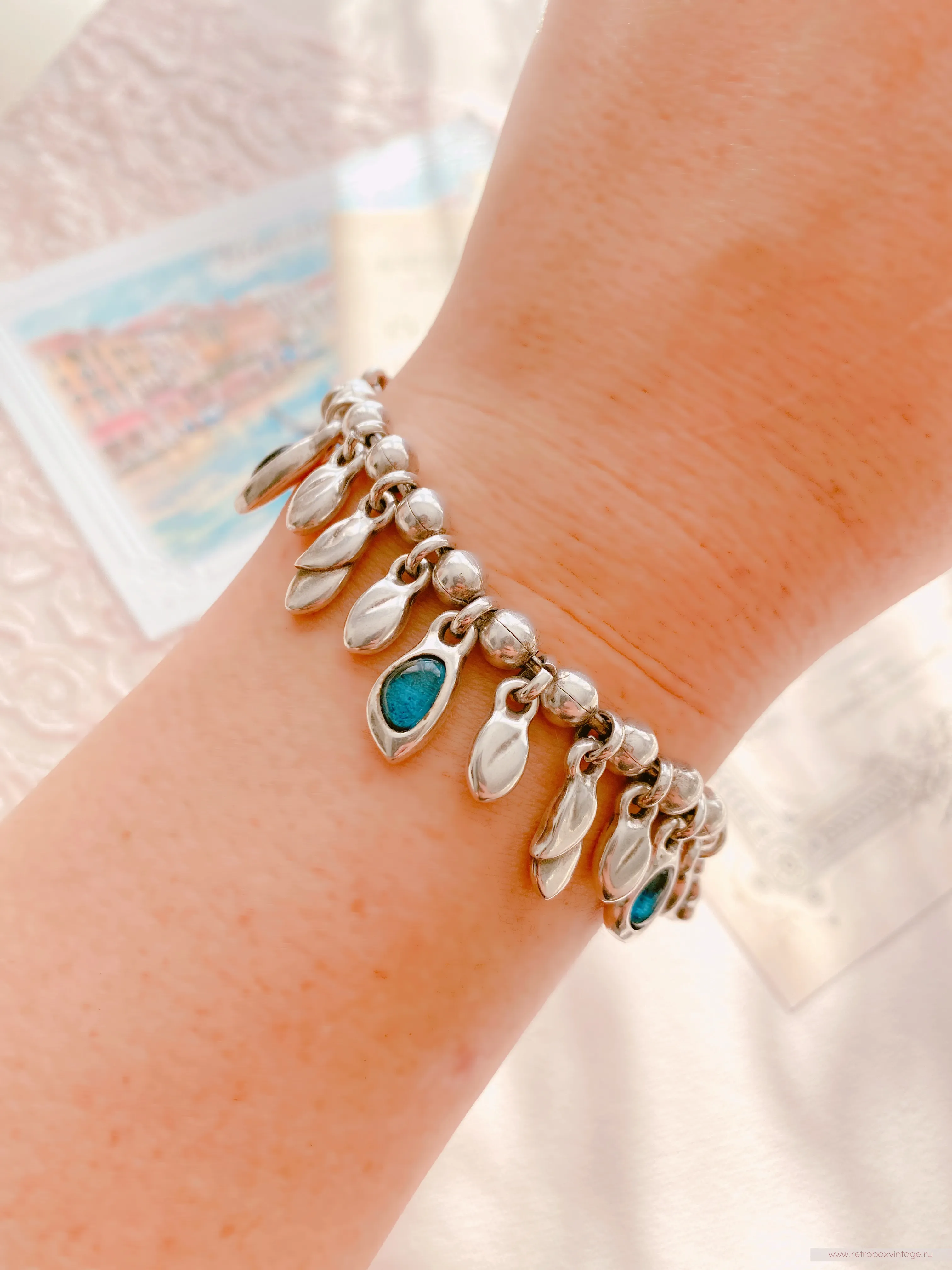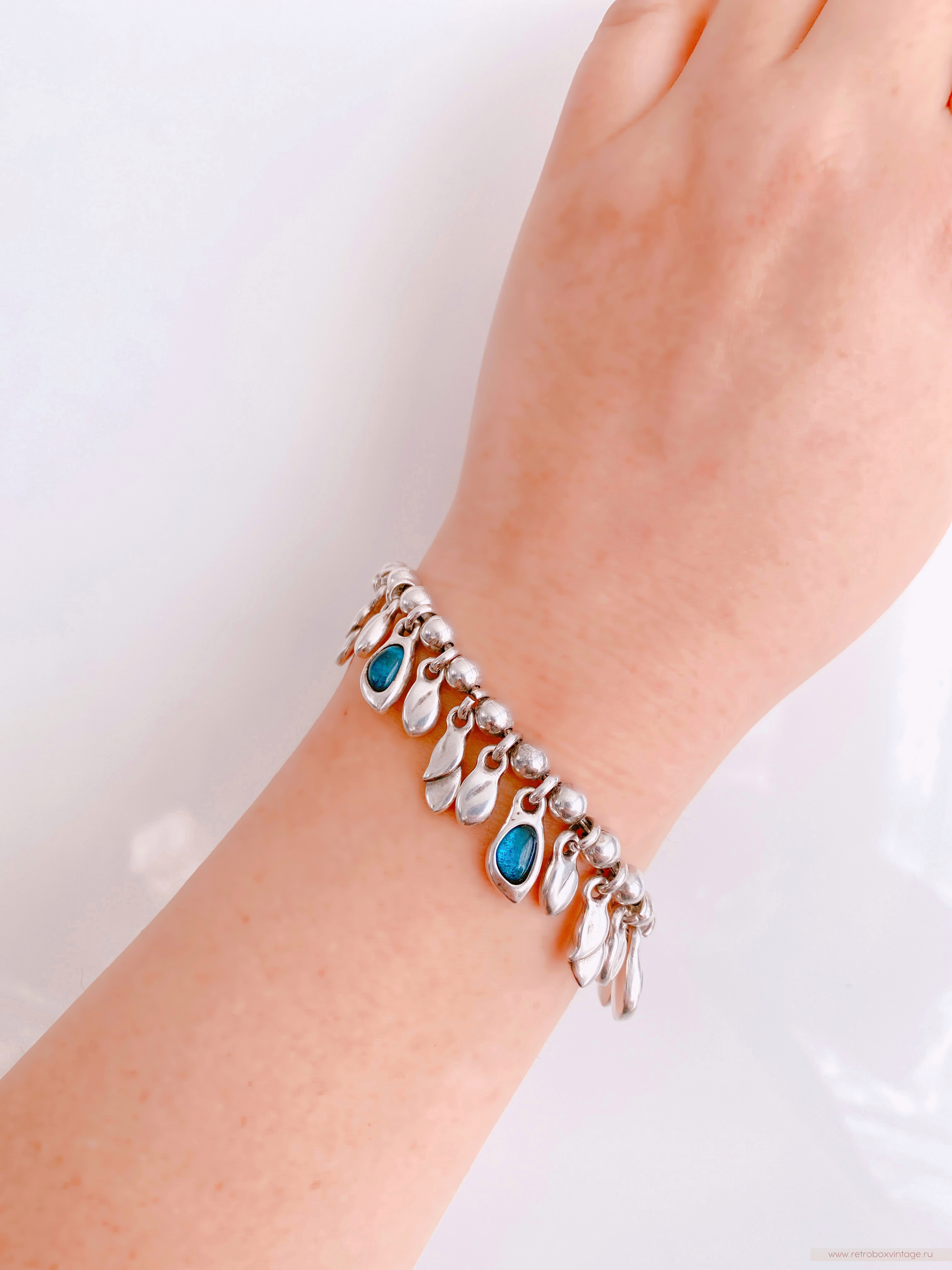 Бирюзовый цвет символизирует гармонию души и мыслей, умиротворение и внутреннюю чистоту. Он отражает доверие и открытость, помогает отпускать тревоги, вдохновляет на творчество и новые начинания, словно зовёт погрузиться в бескрайние горизонты. В этом оттенке будто скрыта тайна глубоких морей — и когда он появляется на запястье, кажется, что легкое течение воды движется вместе с вами, обвивая и подчёркивая утонченность руки.