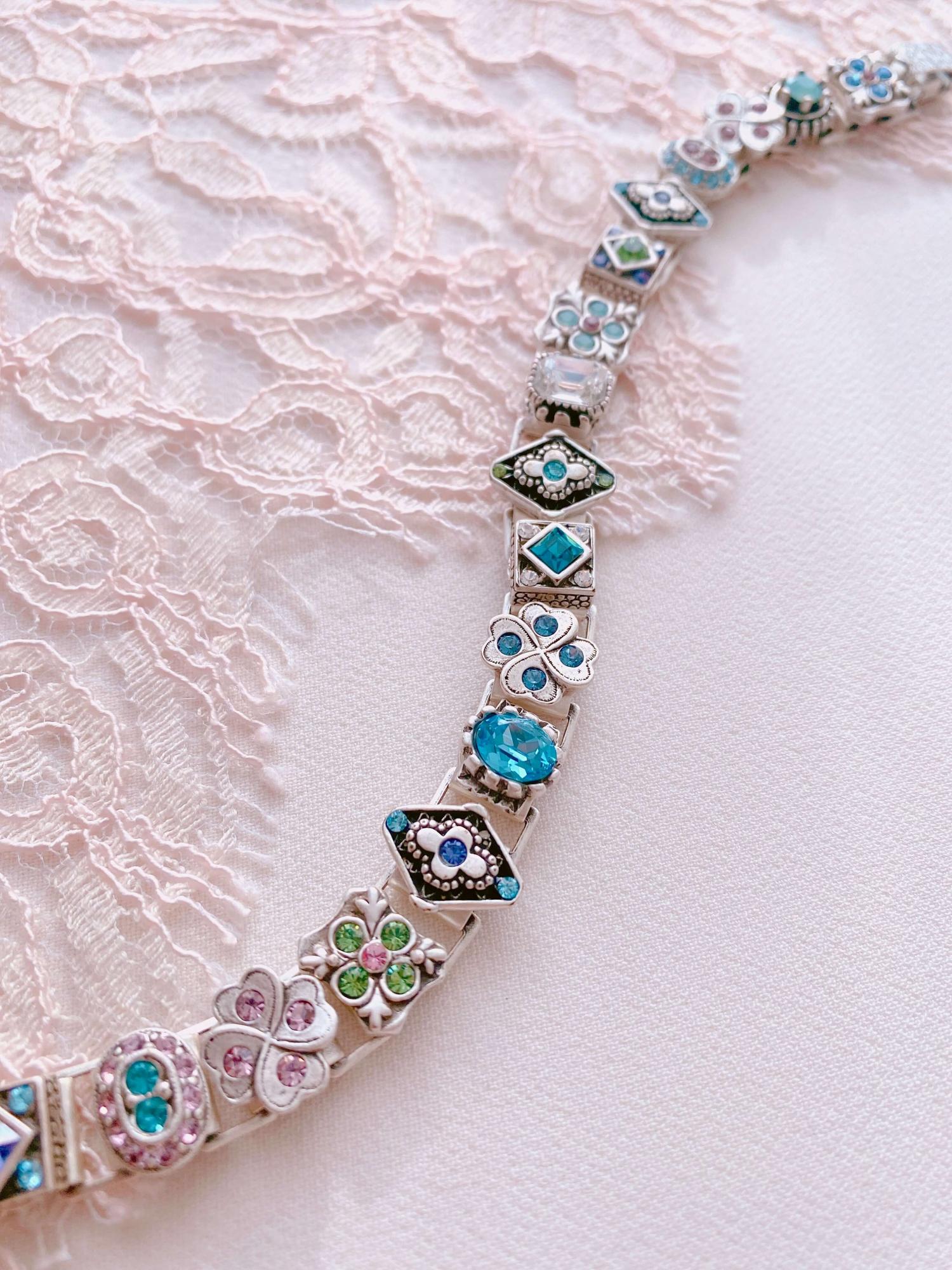 Каждая деталь «Сильвии» продумана до совершенства: гармония пастельных оттенков, изящество линий, баланс между нежностью и выразительностью. Этот браслет легко вписывается в повседневный образ, добавляя ему света, и так же органично становится утончённым акцентом вечернего наряда. Украшения SWEET ROMANCE выпускаются ограниченными тиражами и давно стали объектом желания коллекционеров по всему миру — за редкое сочетание винтажного характера, художественного вкуса и душевного тепла.