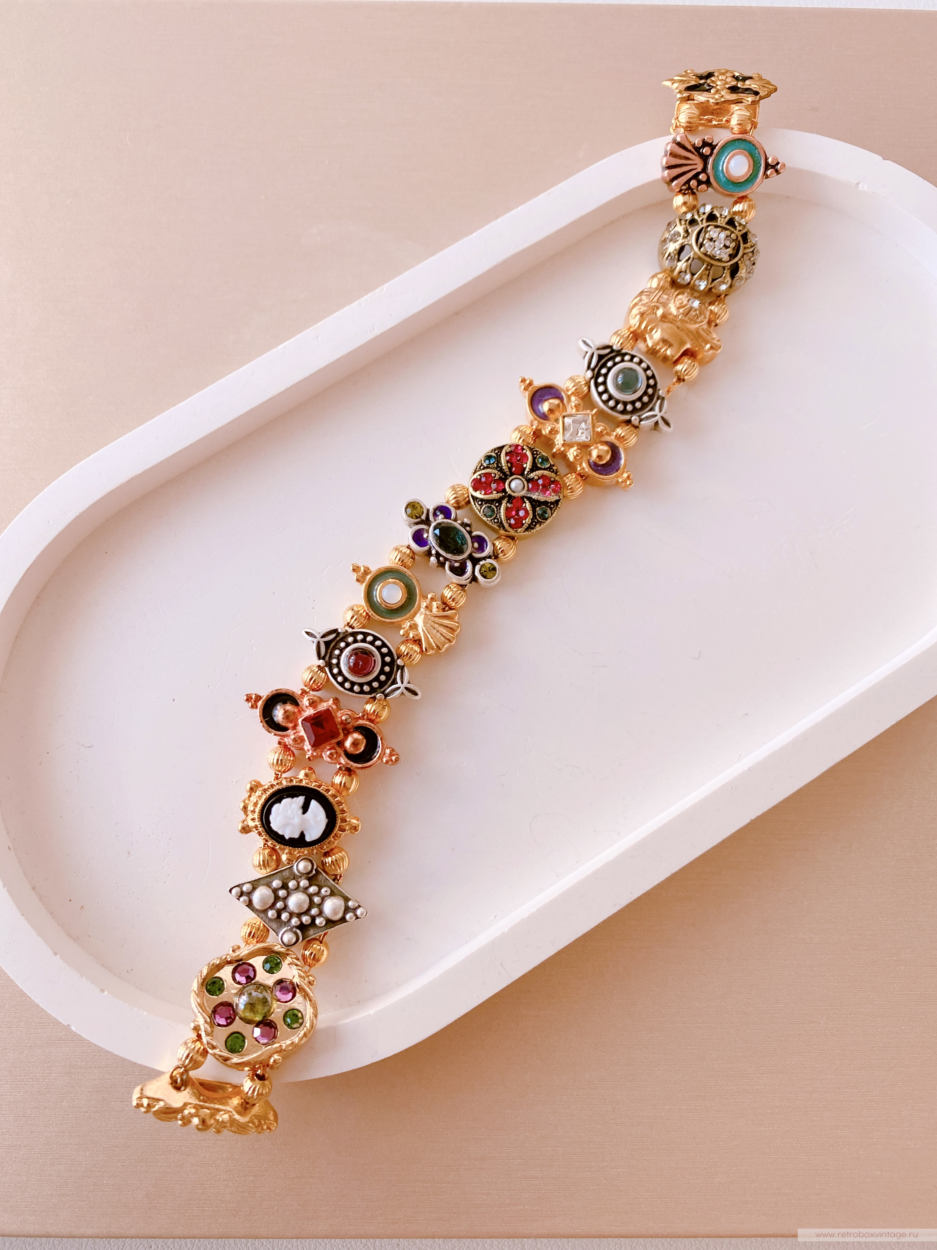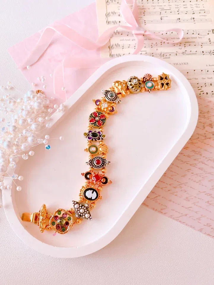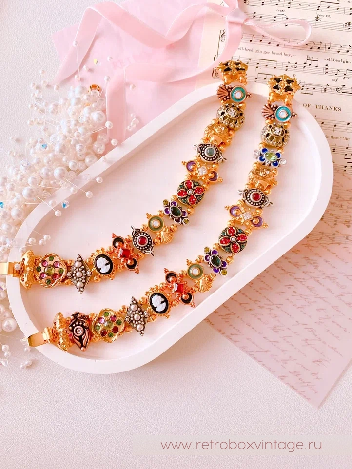 Ажурные звенья — знаки совершенства и внутренней гармонии, а цветные кристаллы и эмали вспыхивают, как искры радости, напоминая о яркости и полноте каждого прожитого мгновения.