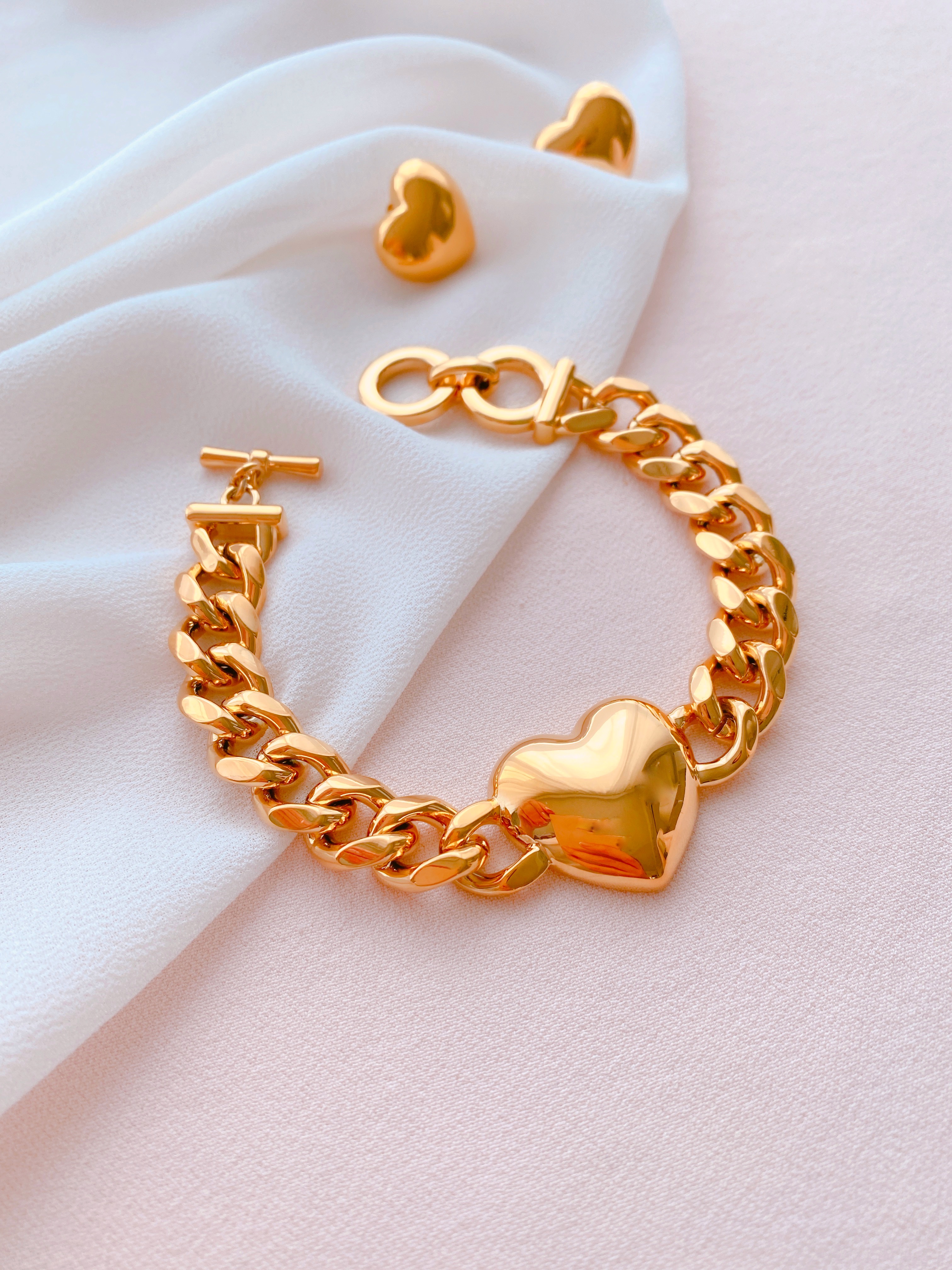 Как например, этот стильный браслет! Объемные цепи и глянцевое сердце будут мило скользить по вашему запястью. Браслет при этом ещё и совсем не тяжелый. Наденьте его на руку и признайтесь себе в любви!