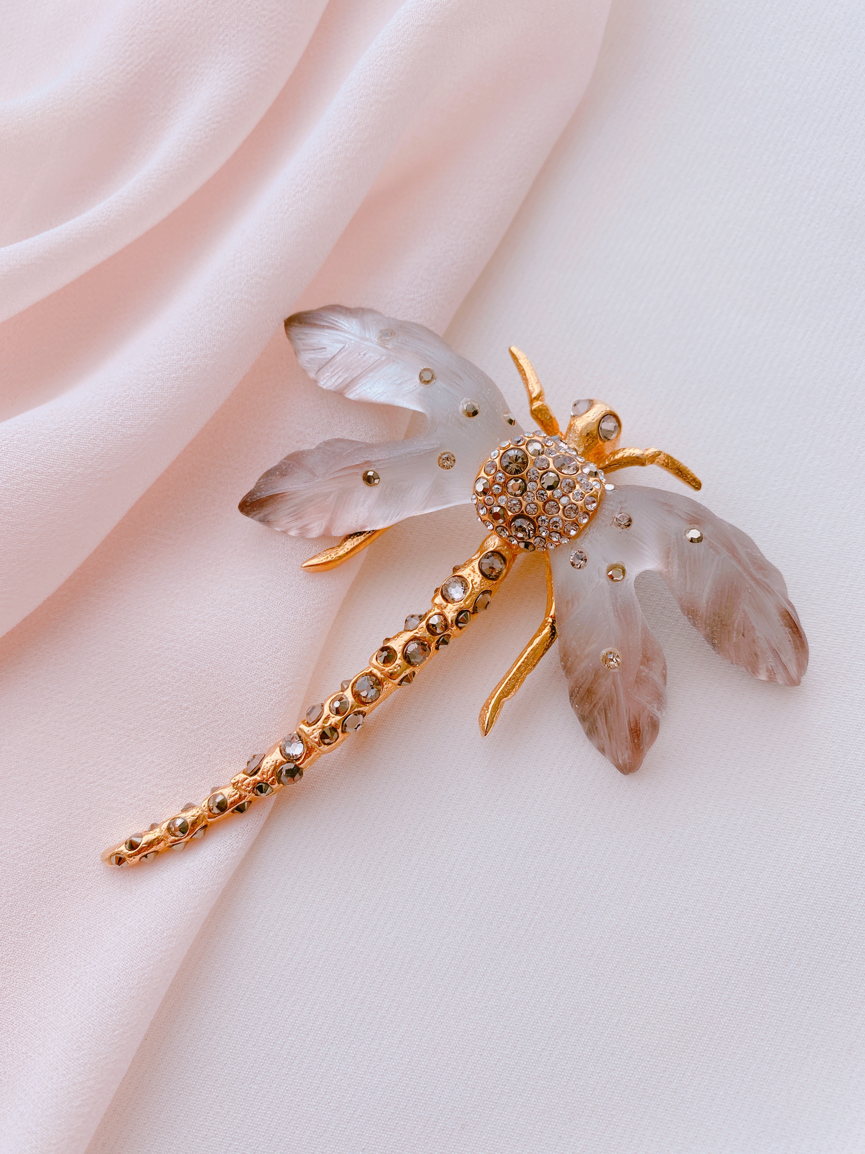 Я не знаю, чем вдохновлялся Алексис Бетар, создавая великолепную брошь в виде стрекозы, но она получилась по-настоящему уникальной. Нежные пастельные бежевые оттенки крыльев из люцита восхищают своей необычностью цвета.Представьте себе, что каждая деталь этой броши выполнена вручную талантливым мастером! Сколько души вложено в это украшение, чтобы радовать вас!