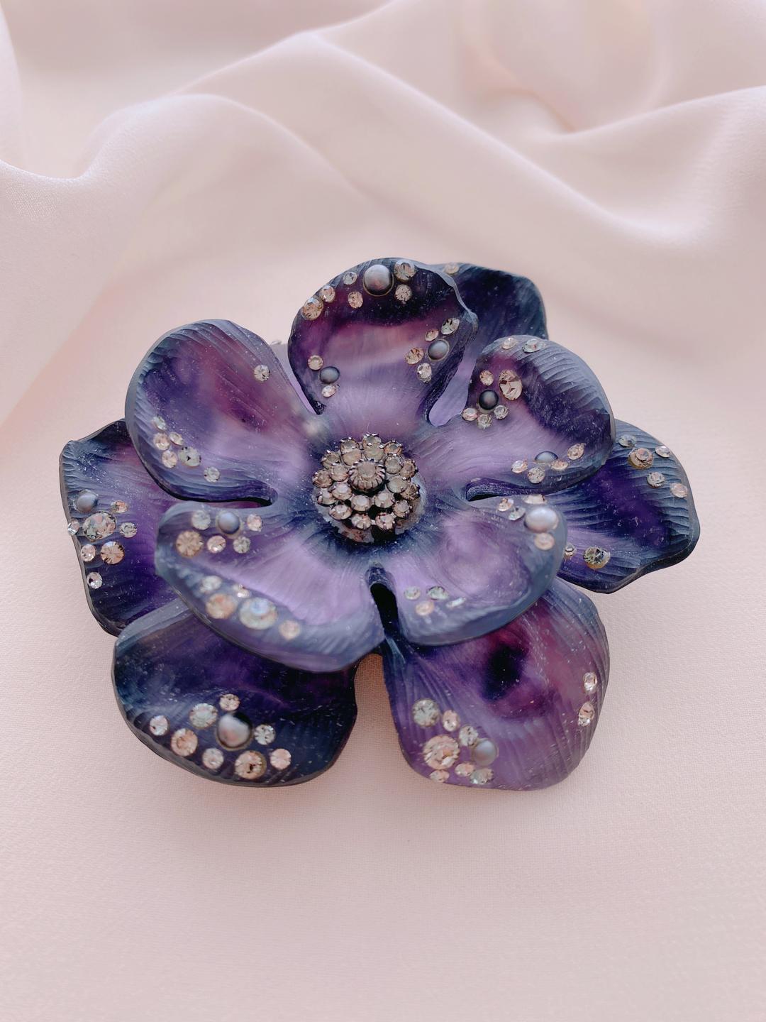 Глядя на эту восхитительную брошь, я почему-то уверена, что Алексис Биттар смог найти тот самый цветок ночи.Невероятный мерцающий сливово-фиолетовый оттенок люцита с легкими лавандовыми переливами будто впитал в себя всю загадочность сумерек. В переливах его лепестков отражается дивный лунный свет. А сверкающие кристаллы – это звезды, которые упали в волшебную ночь на землю.Запечатлев чудо природы в невероятно изысканном, изящном и стильном украшении, Биттар подарил нам с вами возможность увидеть редкое чудо, скрываемое от глаз покровом ночи.Вот только как он сумел миновать ночных стражей? Быть может, он просто покорил их своим мастерством облекать чудеса в прекрасные украшения.