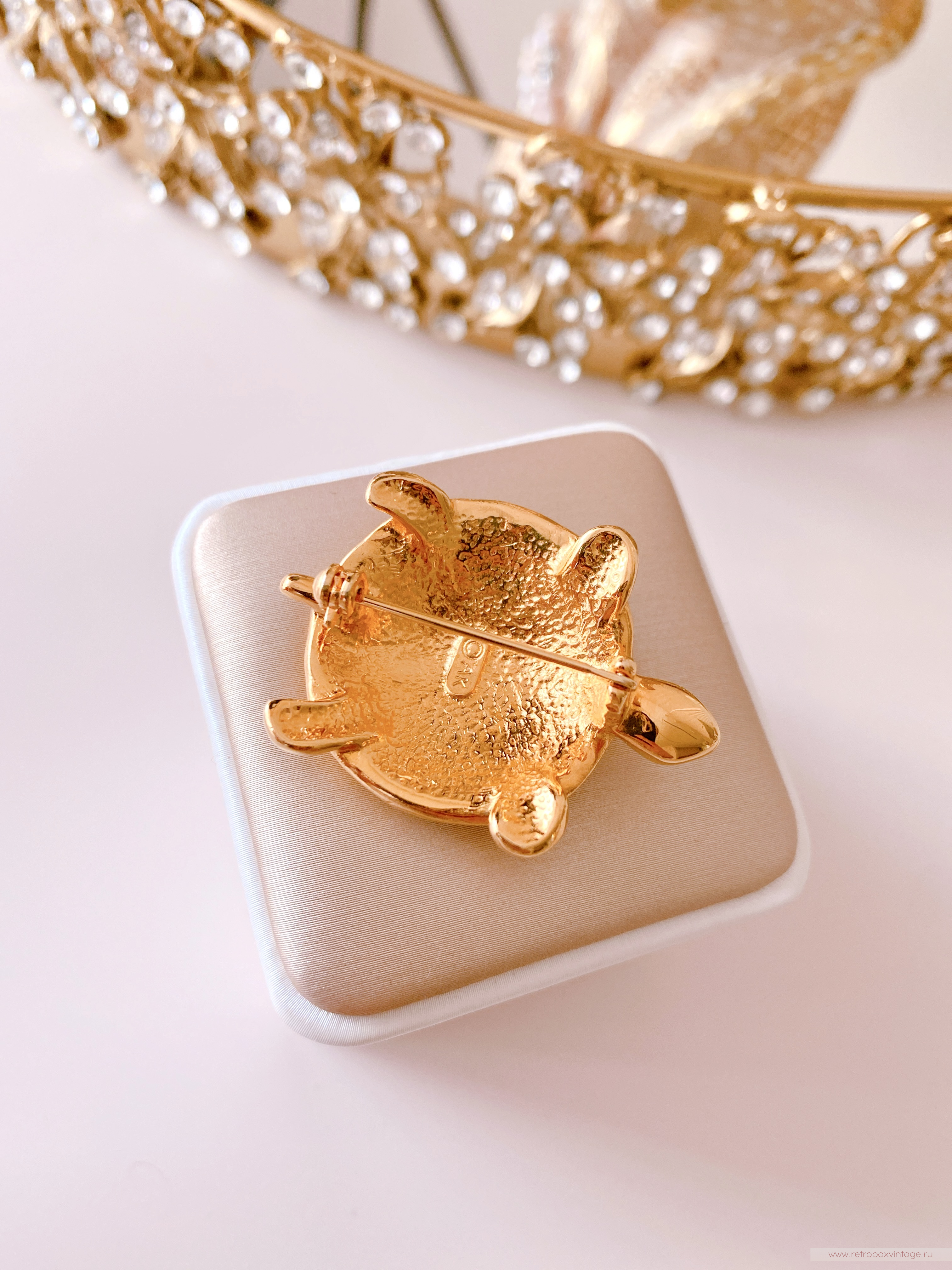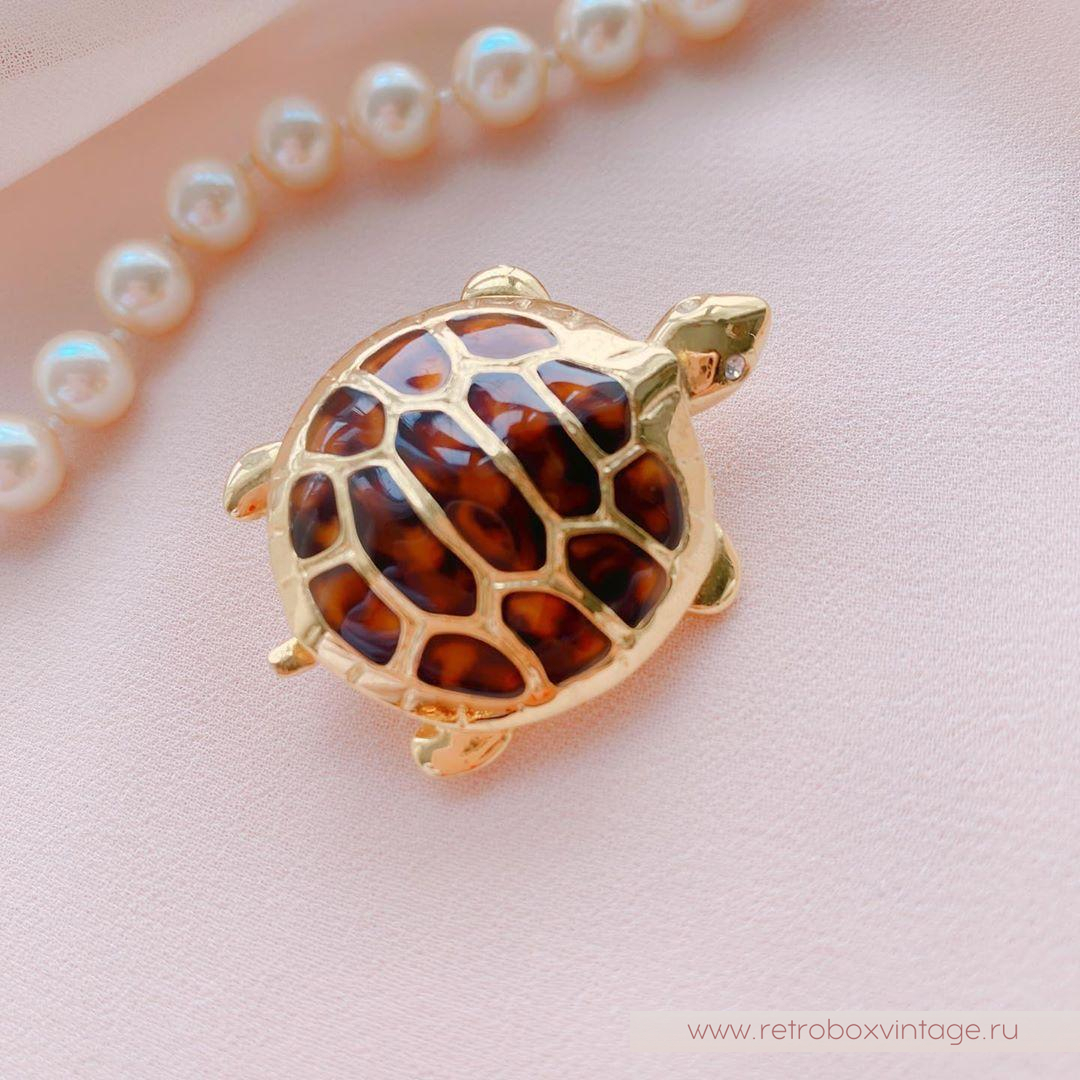 Наши предки почитали черепаху как одно из мудрейших существ на Земле. Ее долгая жизнь, охватывающая века и стихии (землю и воду), сделала ее символом невероятной стойкости, терпения и глубинной мудрости. Не случайно в мифах именно черепахе доверяли держать мироздание – она олицетворяла незыблемый мировой порядок. Этот благородный образ веками вдохновлял на создание оберегов и талисманов, притягивающих удачу, долголетие и процветание. Считалось, что даже простое прикосновение к ее панцирю могло даровать частичку ее мудрости и покровительства.Черепаха оставалась популярным мотивом и в XX веке, украшая изысканные винтажные и дизайнерские броши. Брошь «Маленькая черепаха» от ANNE KLEIN – очаровательное продолжение этой традиции. Это не просто украшение, а маленькое произведение искусства: