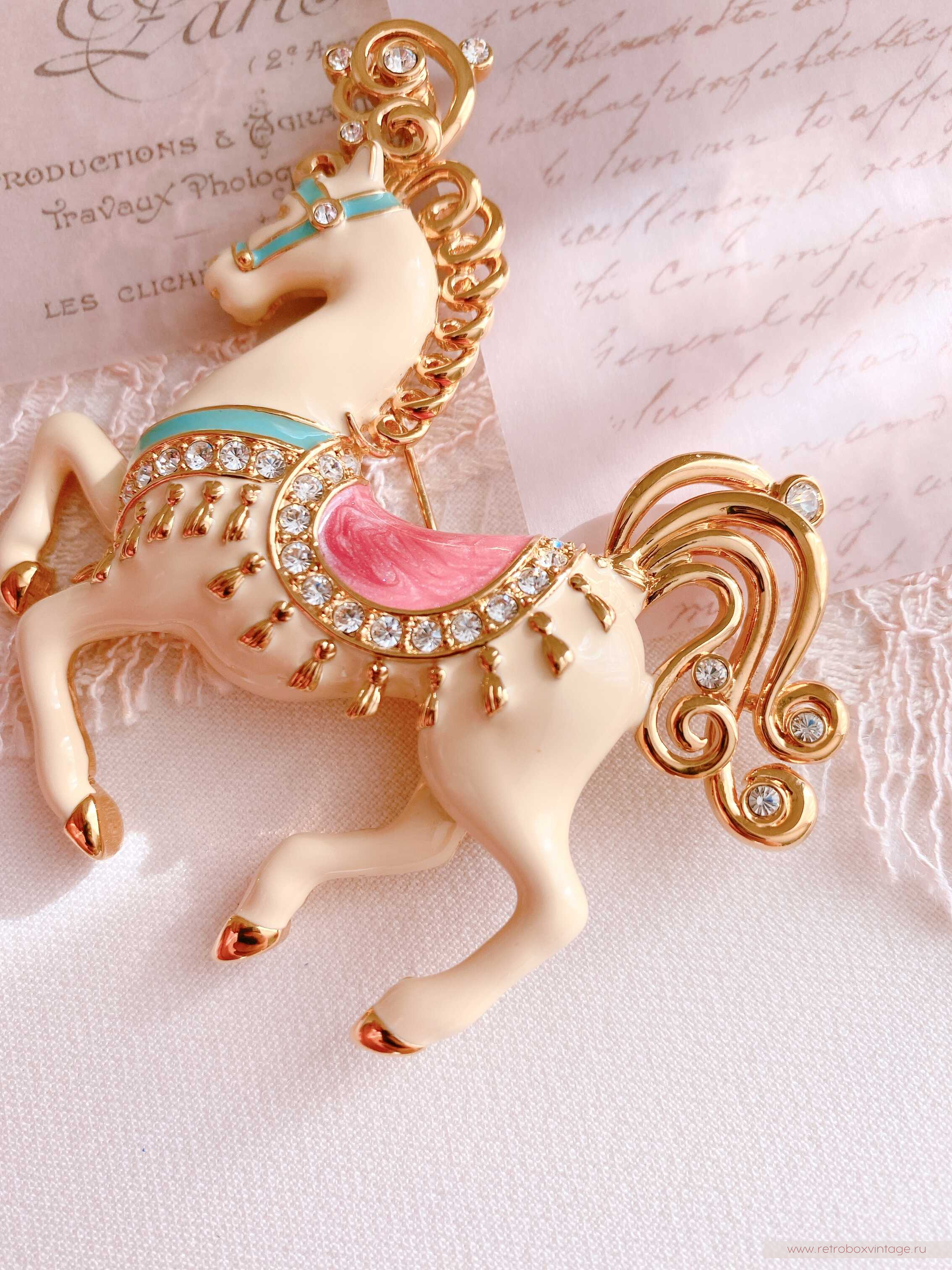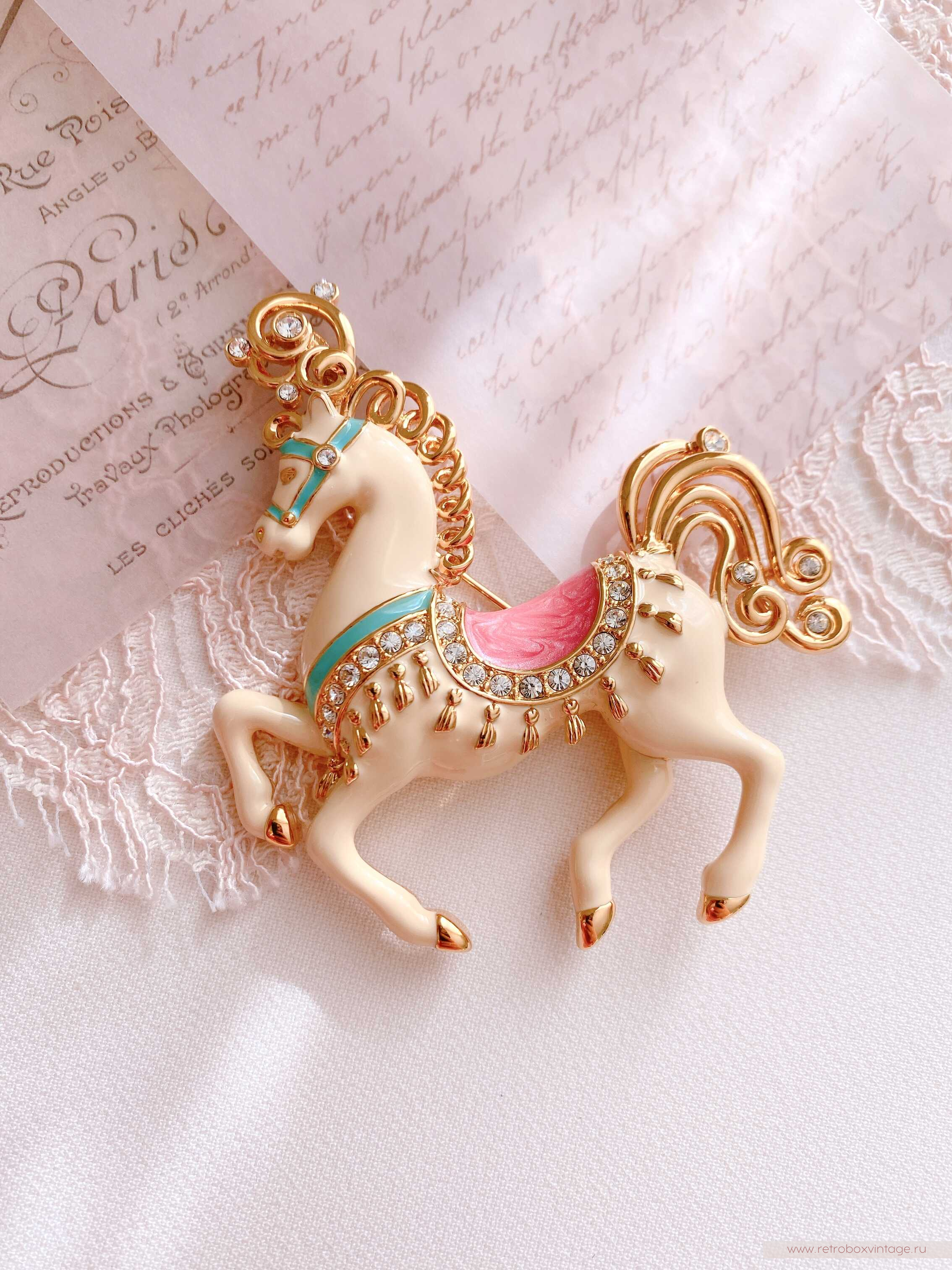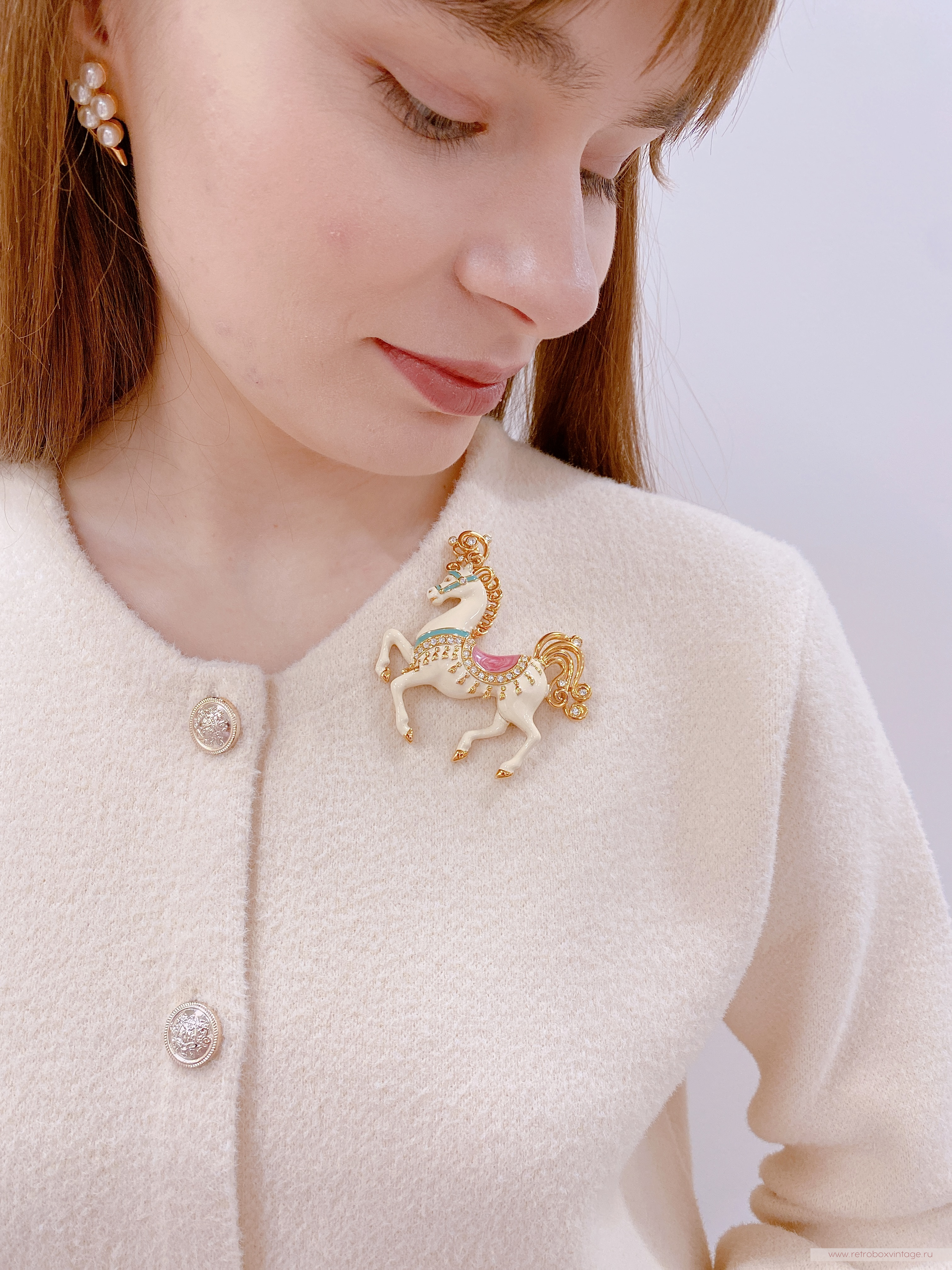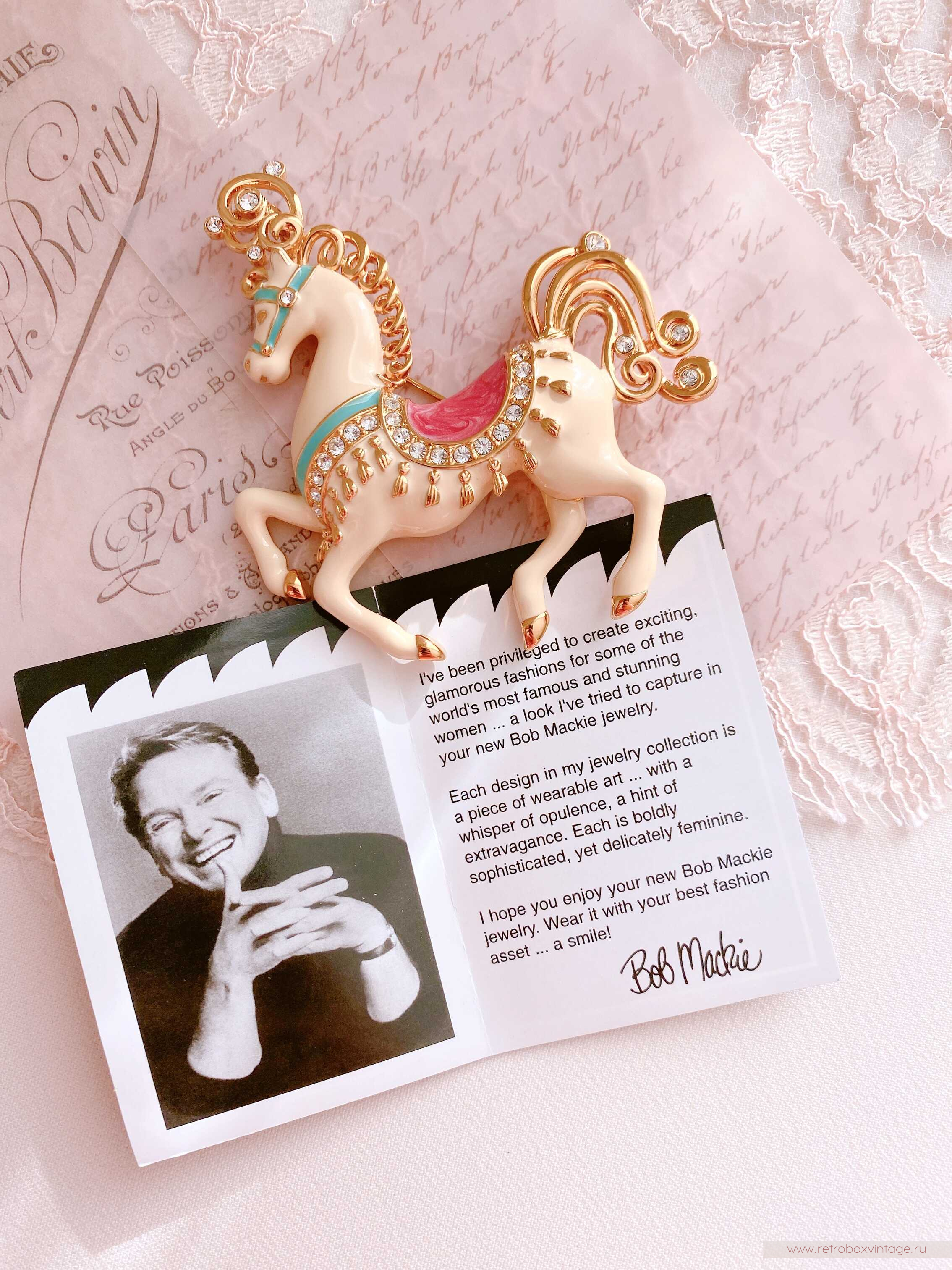 BOB MACKIE Винтажная брошь «Царская лошадь: кремовая» — сила, свобода и грация.