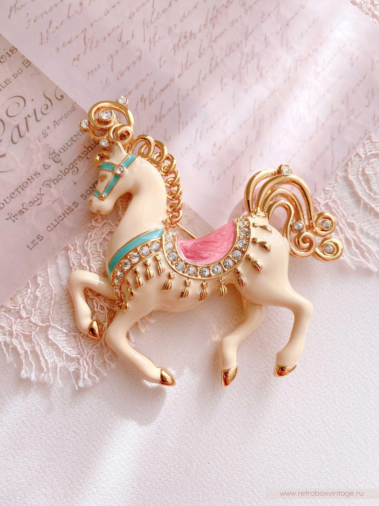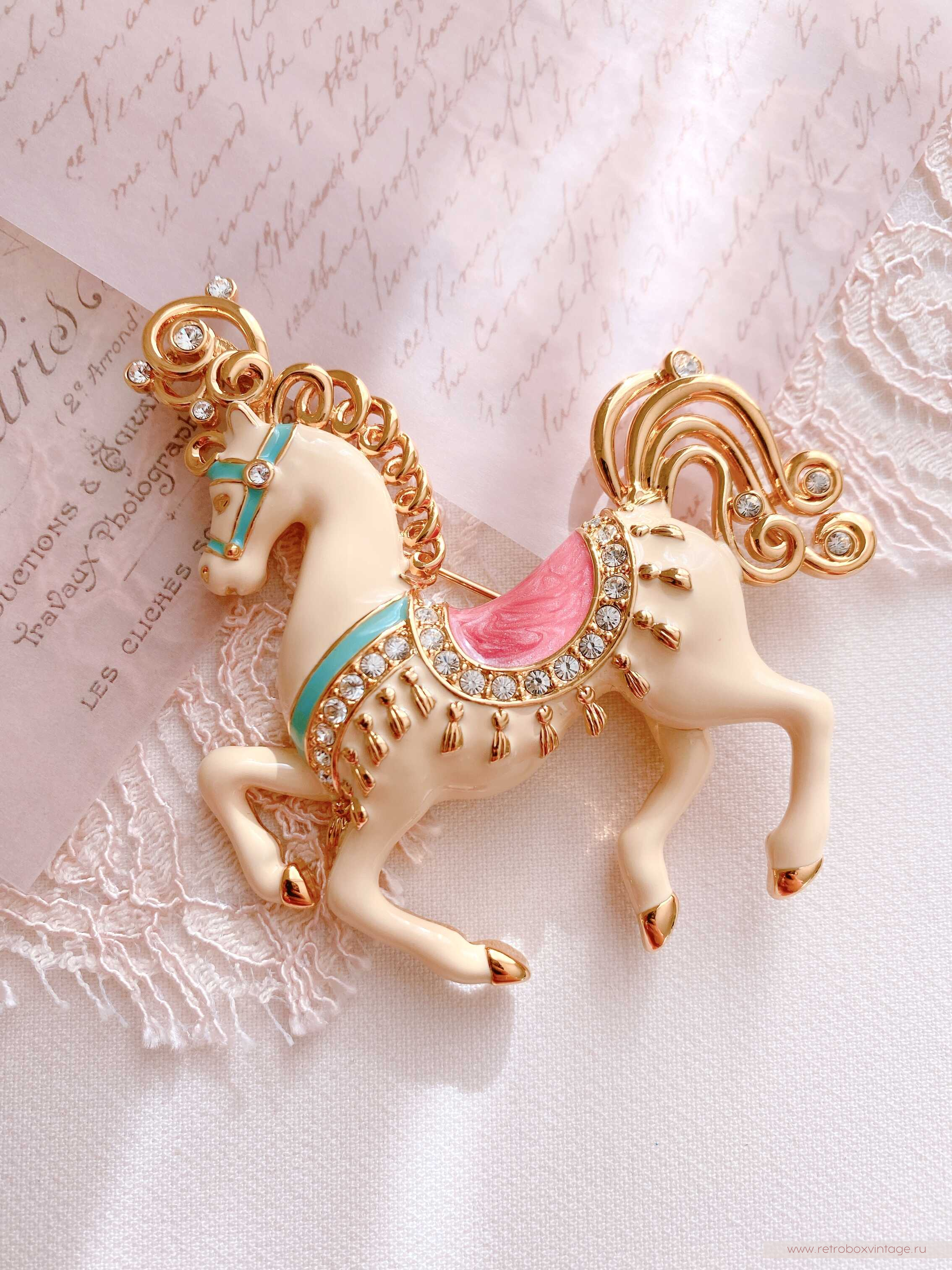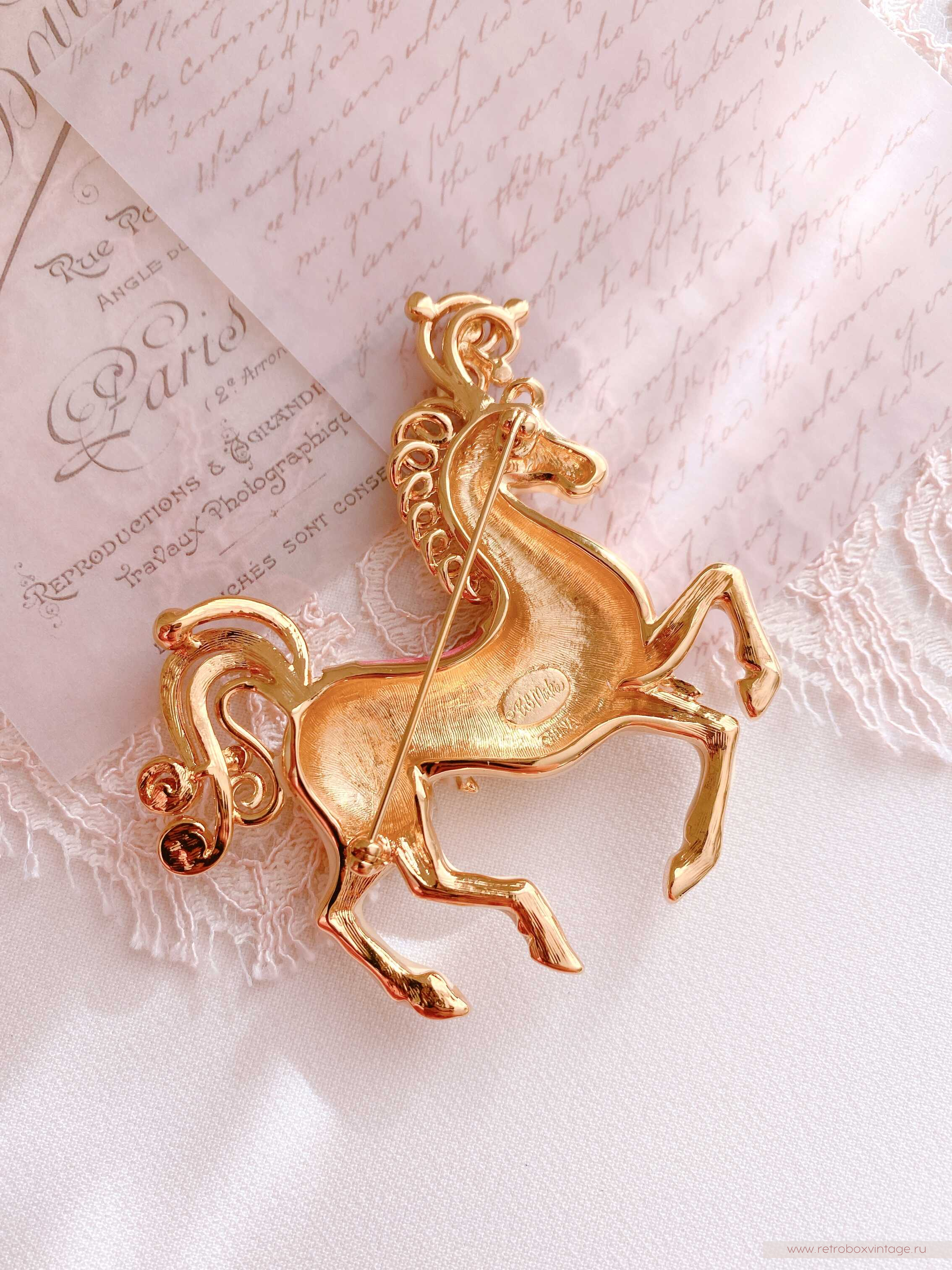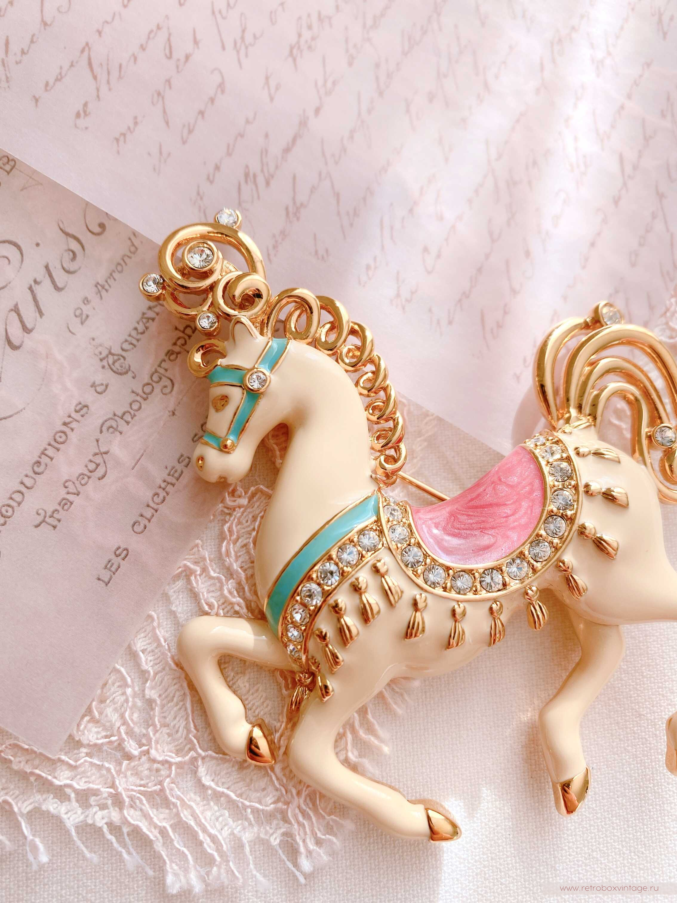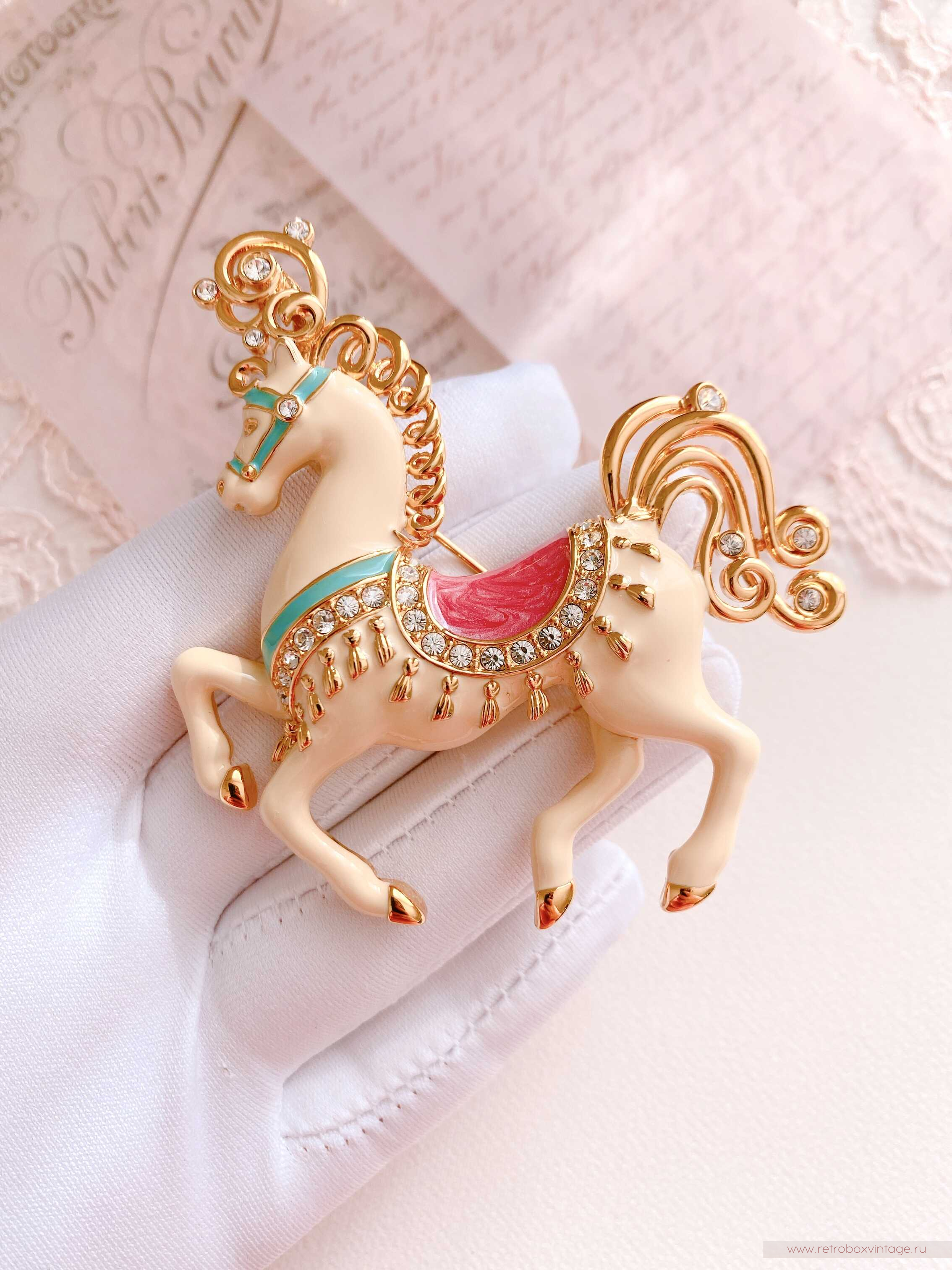 BOB MACKIE Винтажная брошь «Царская лошадь: кремовая» — сила, свобода и грация.