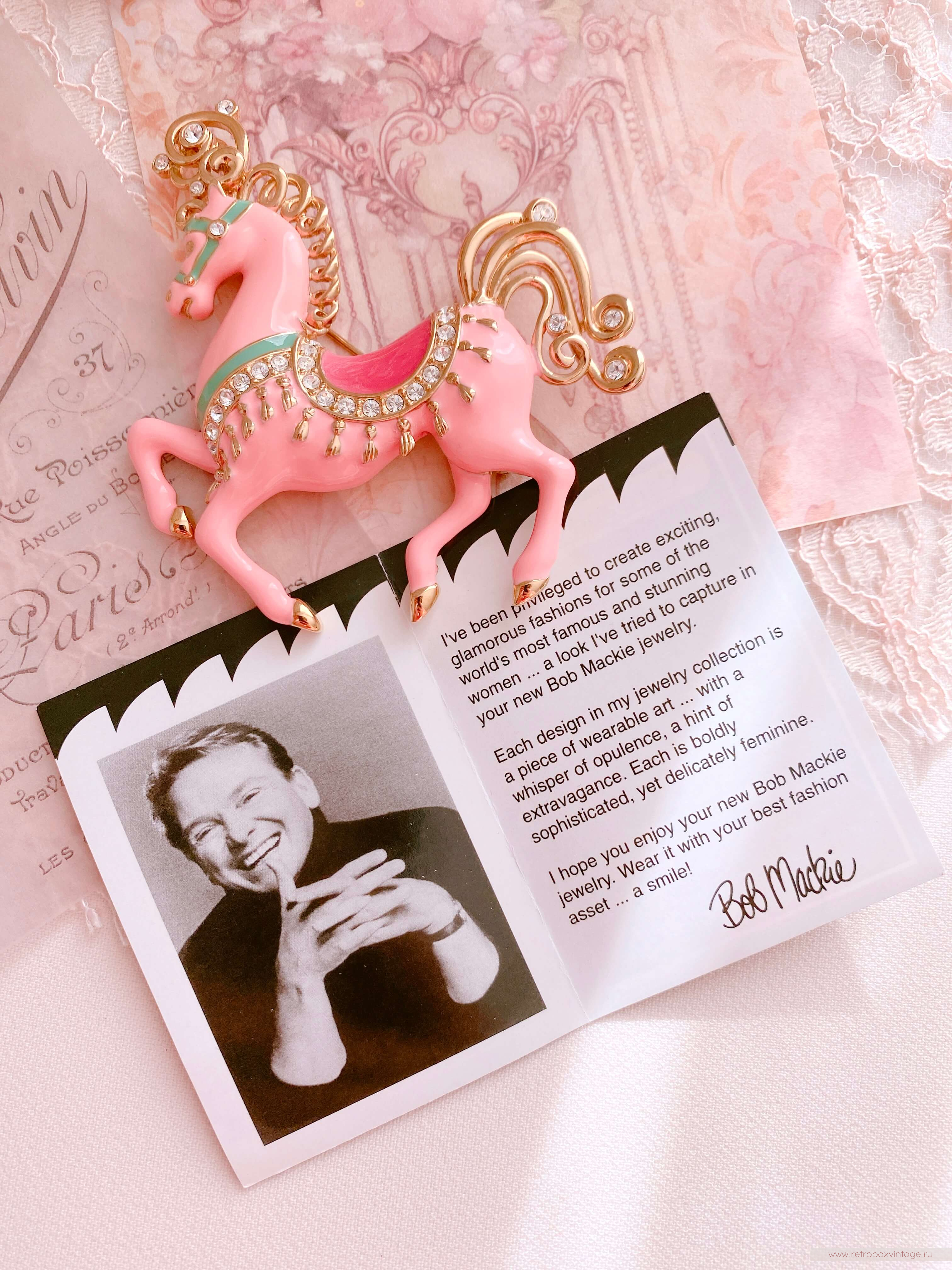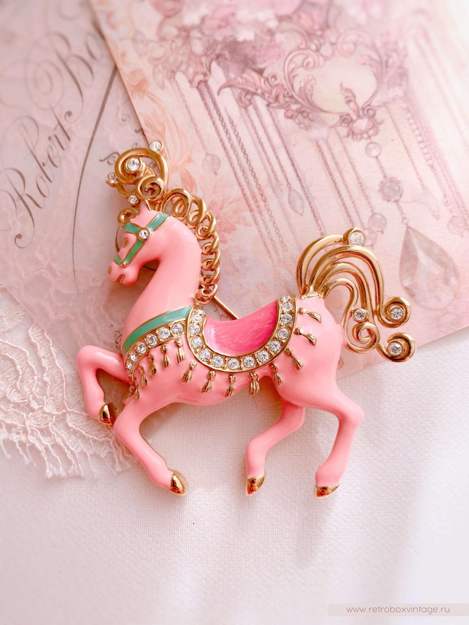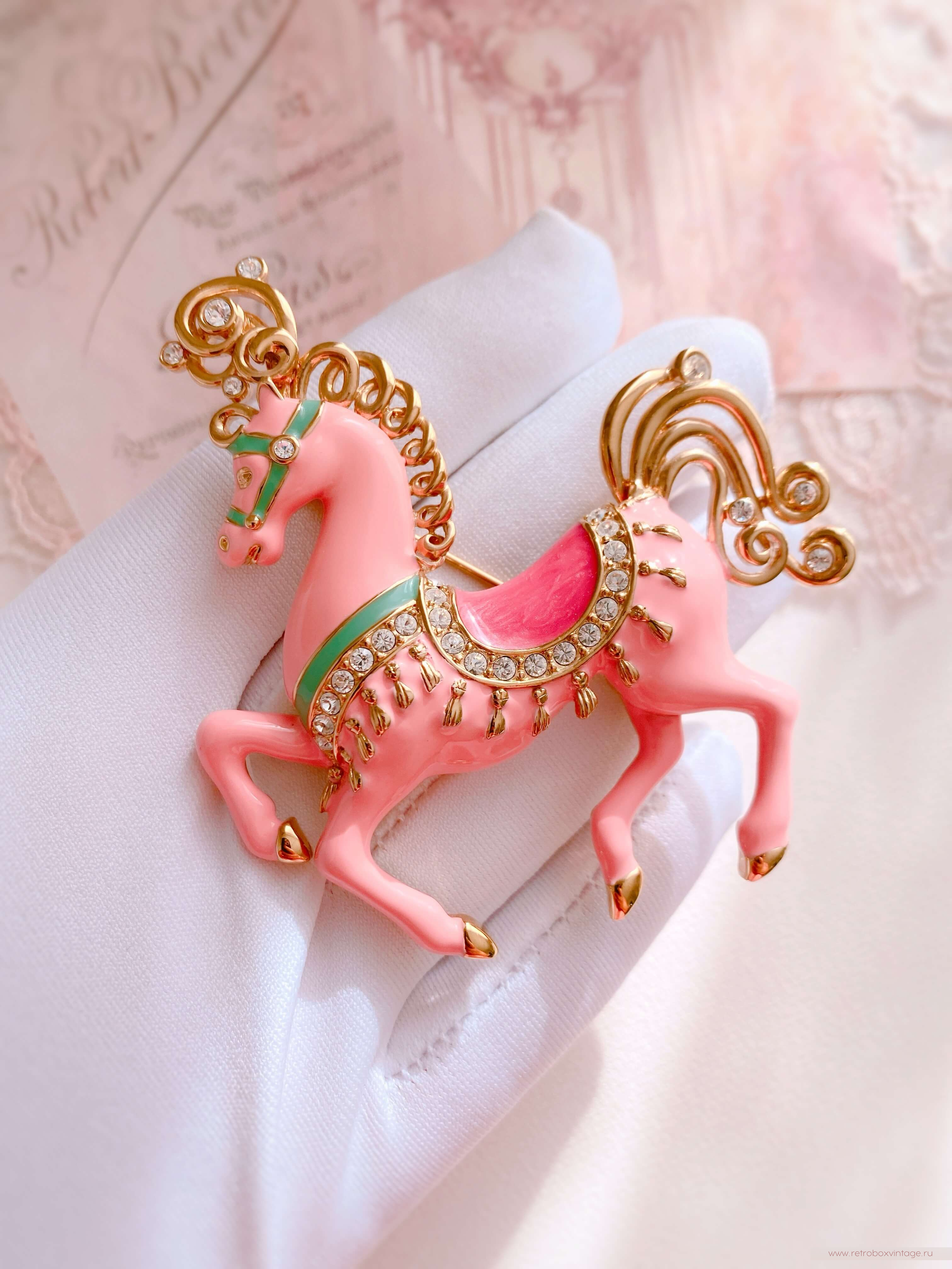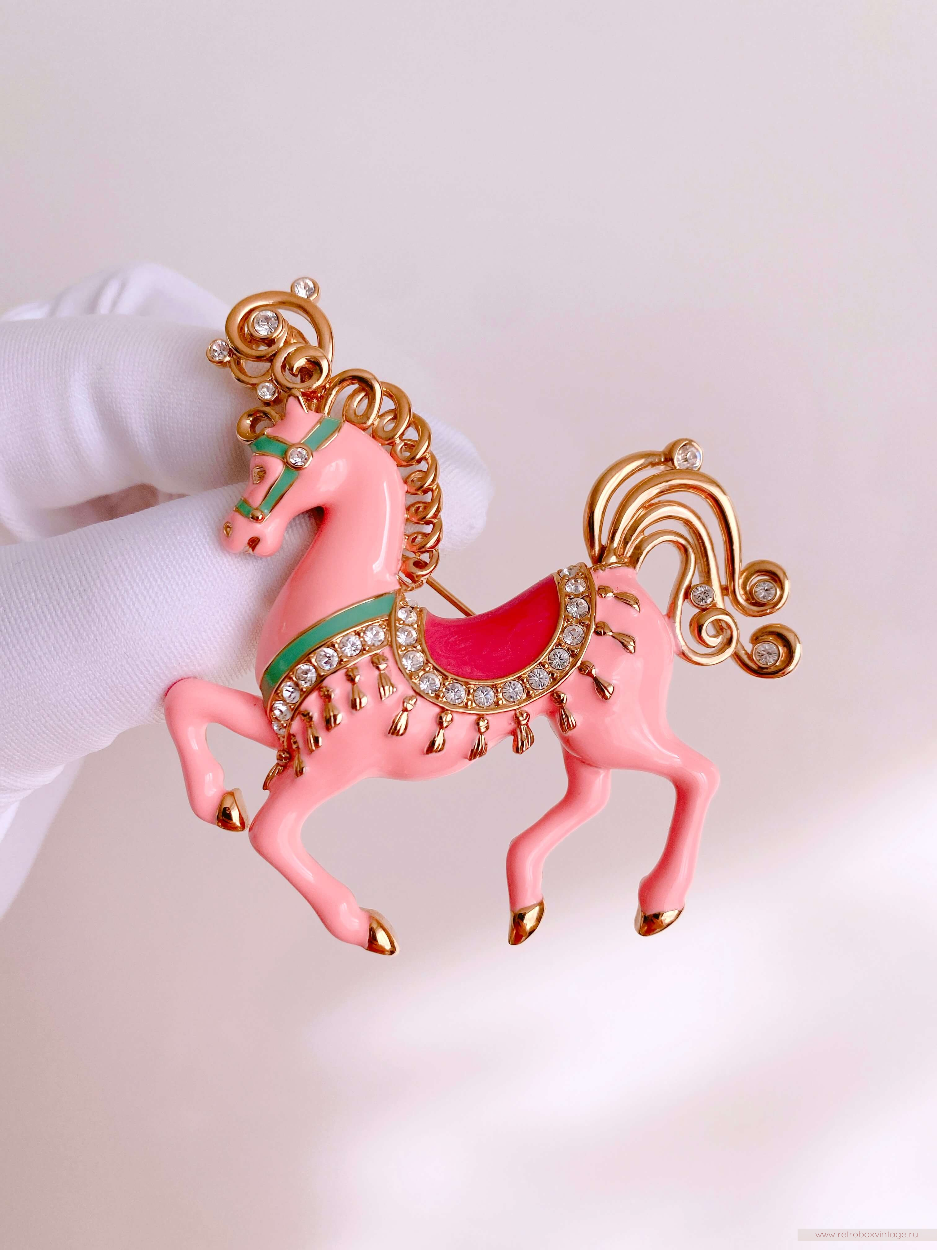 Винтажная брошь BOB MACKIE «Царская лошадь: розовая» – благородная спутница.