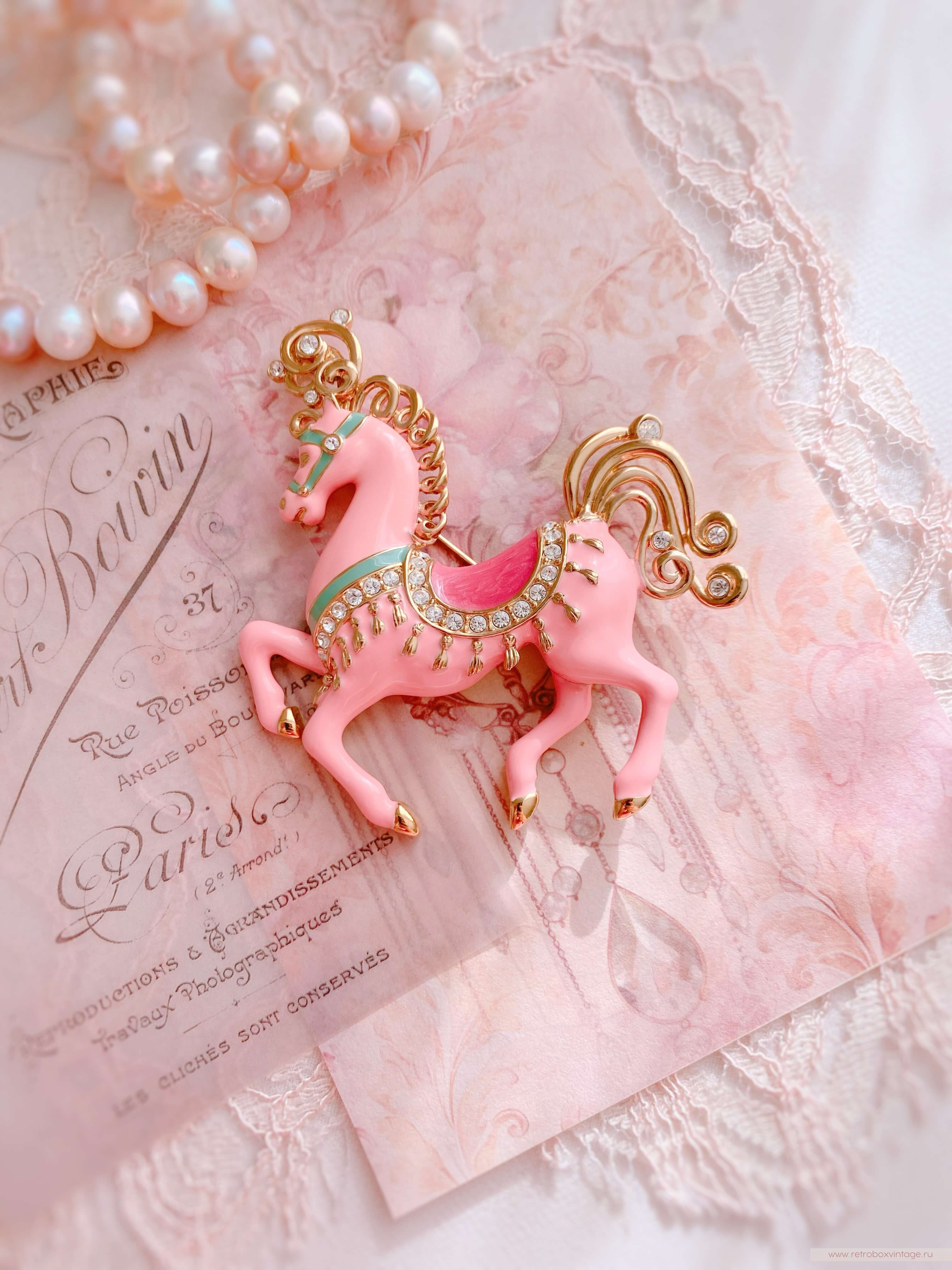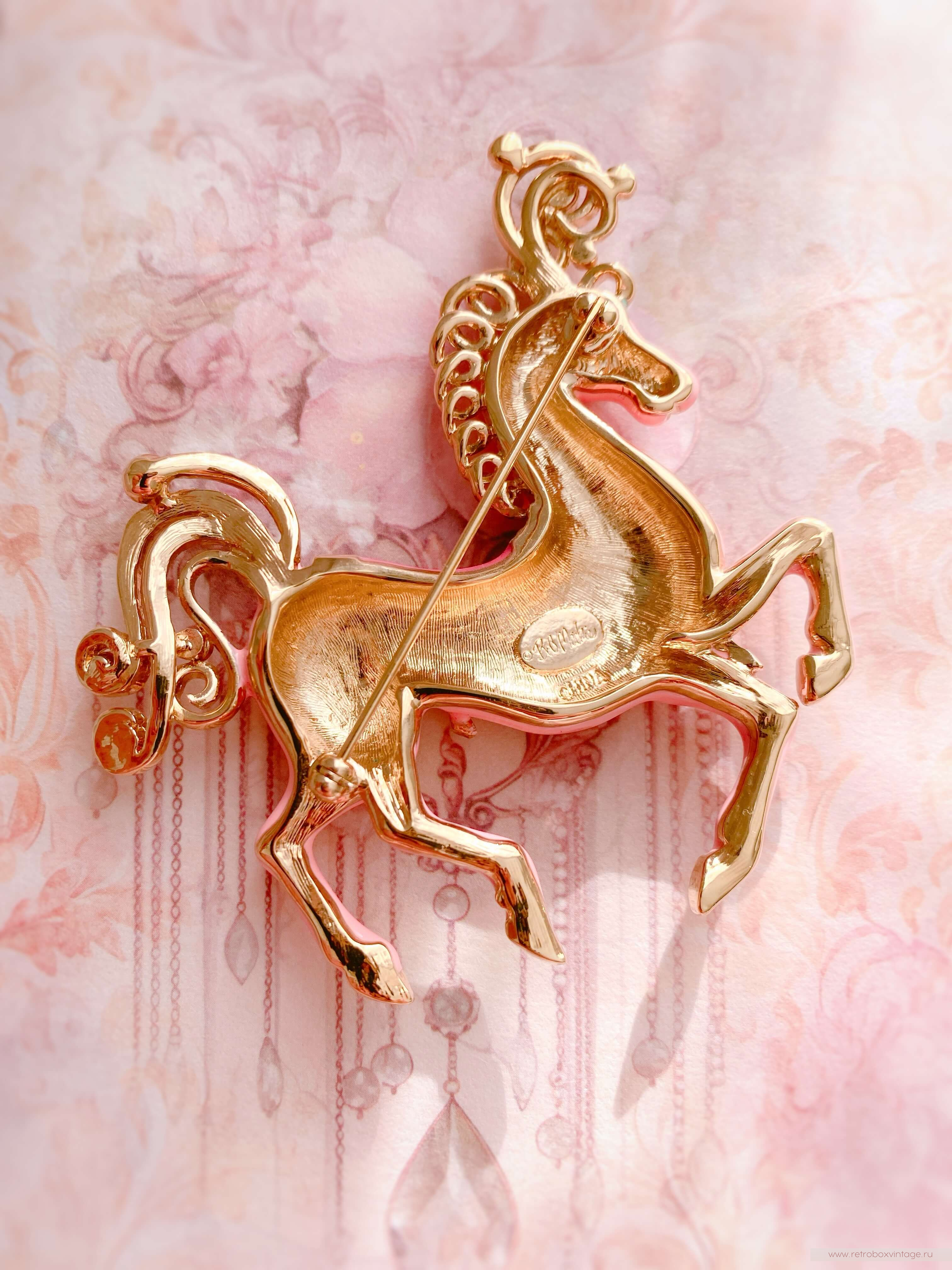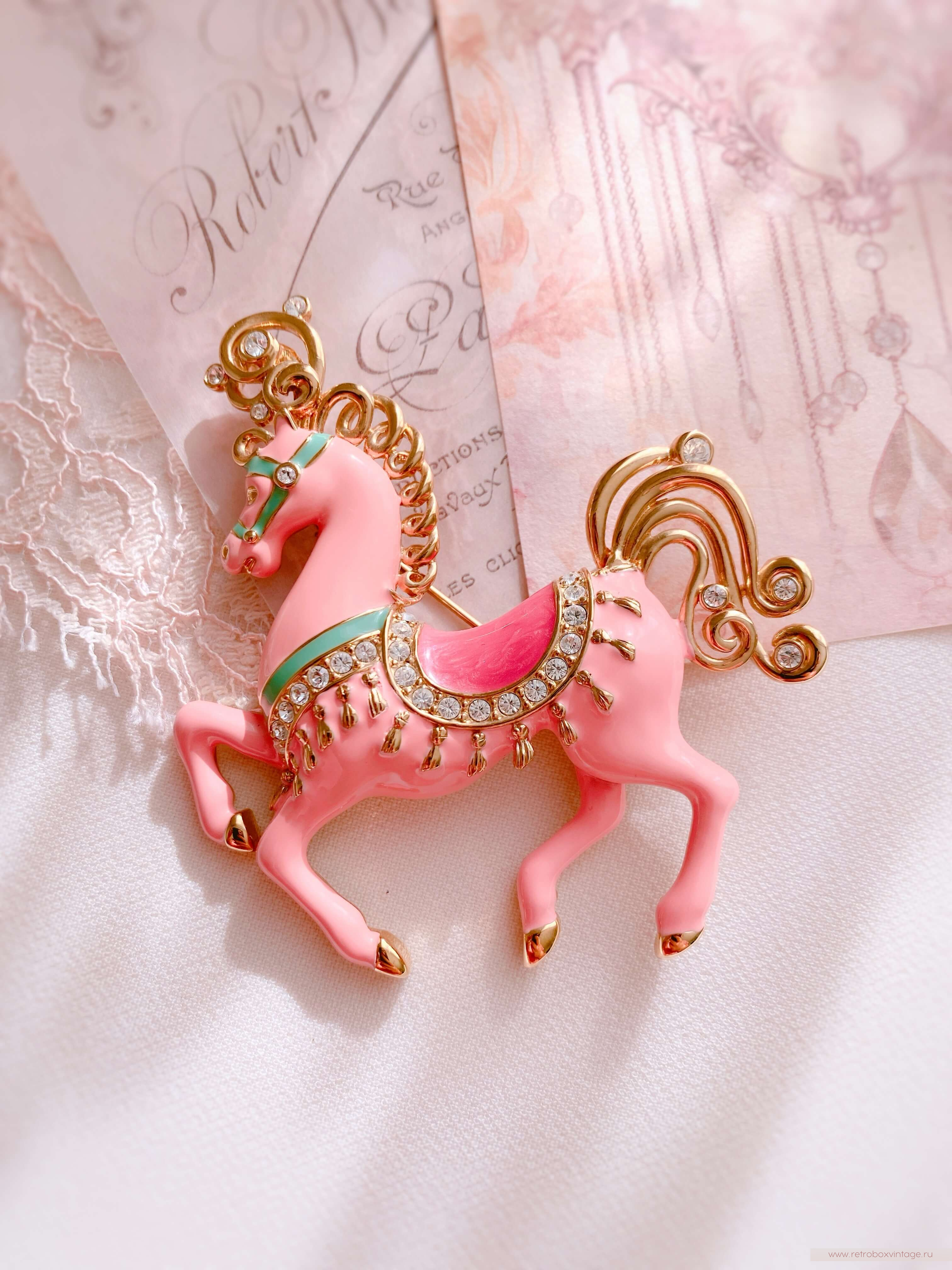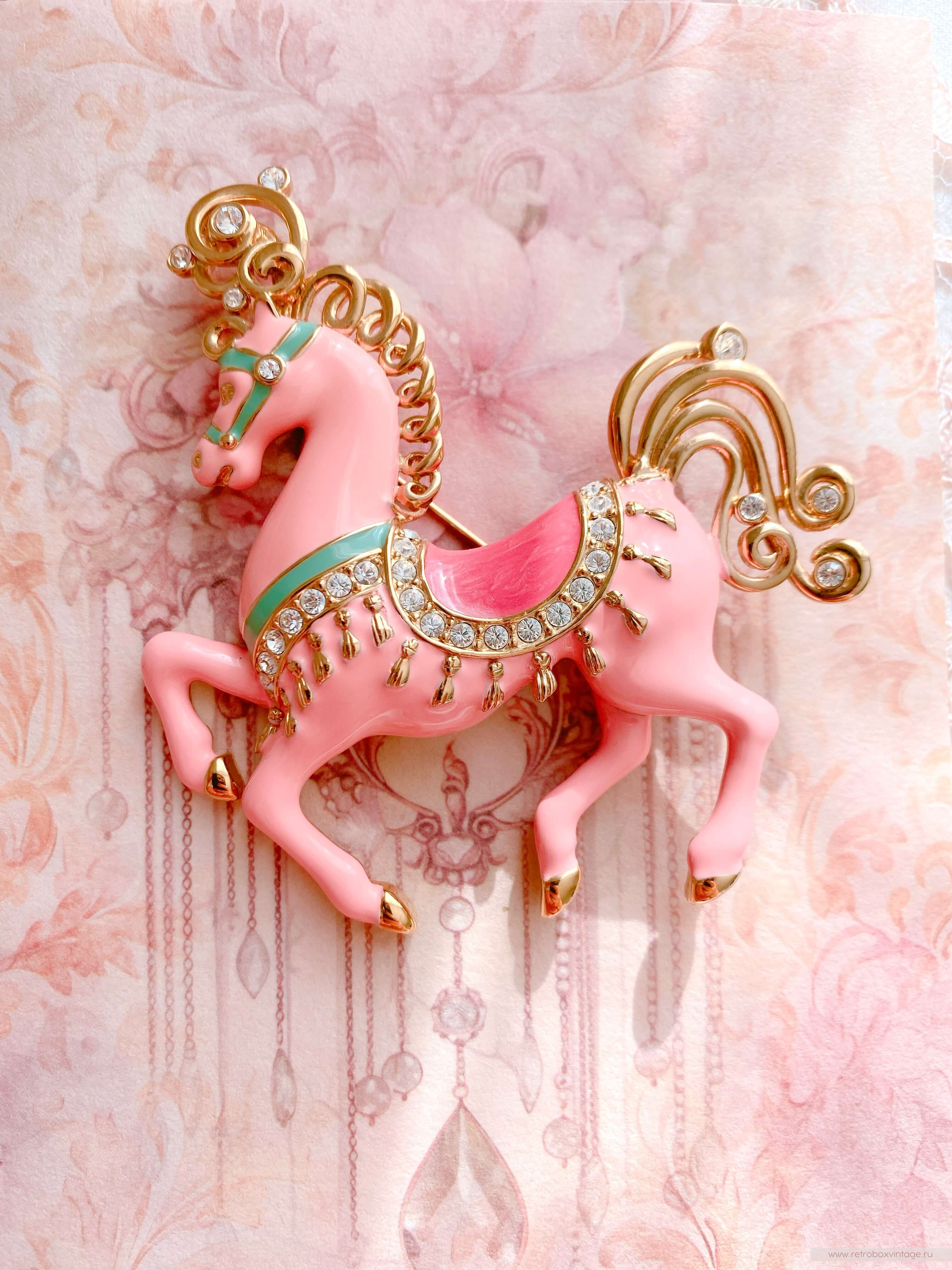Винтажная брошь BOB MACKIE «Царская лошадь: розовая» – благородная спутница.