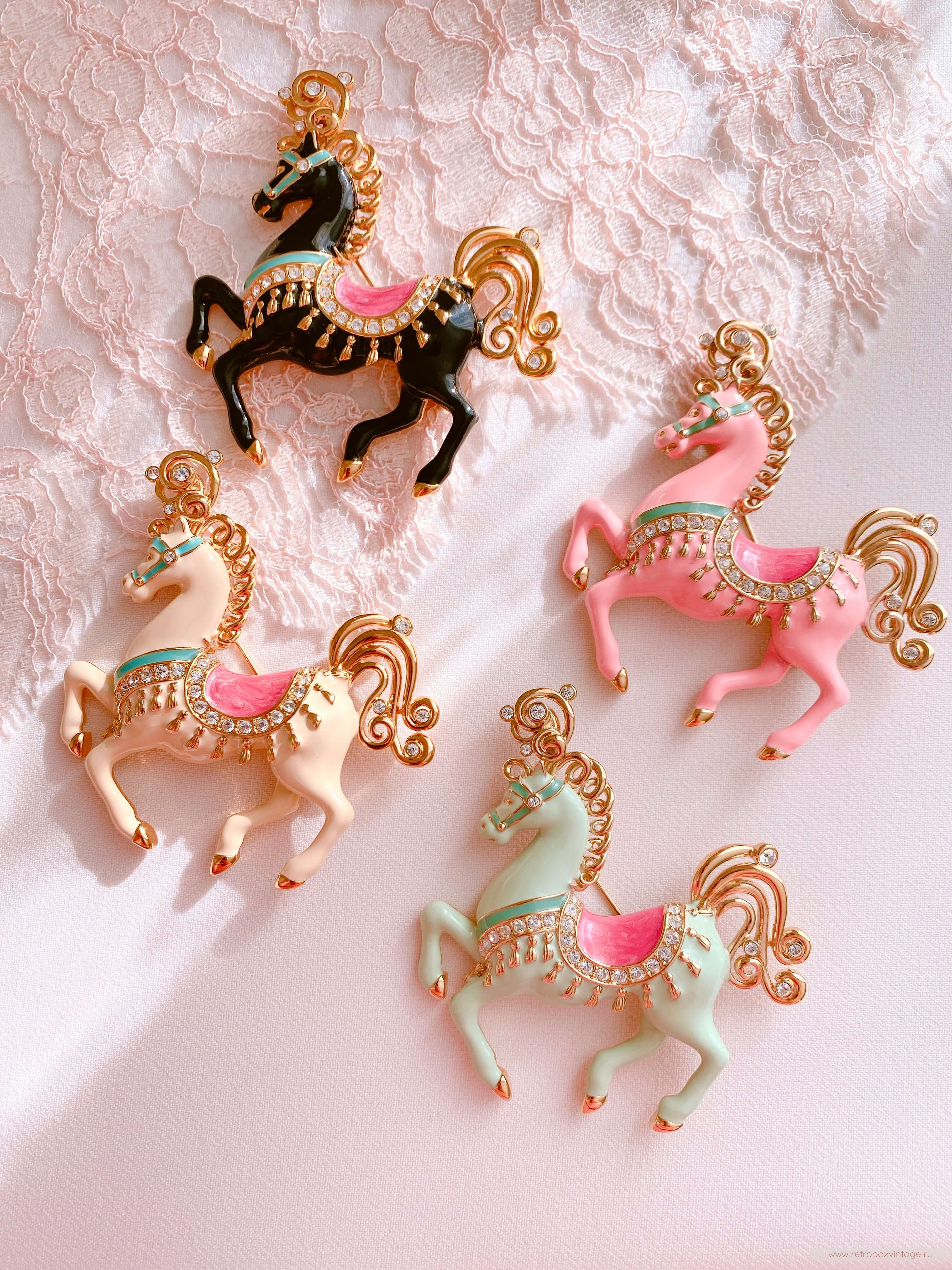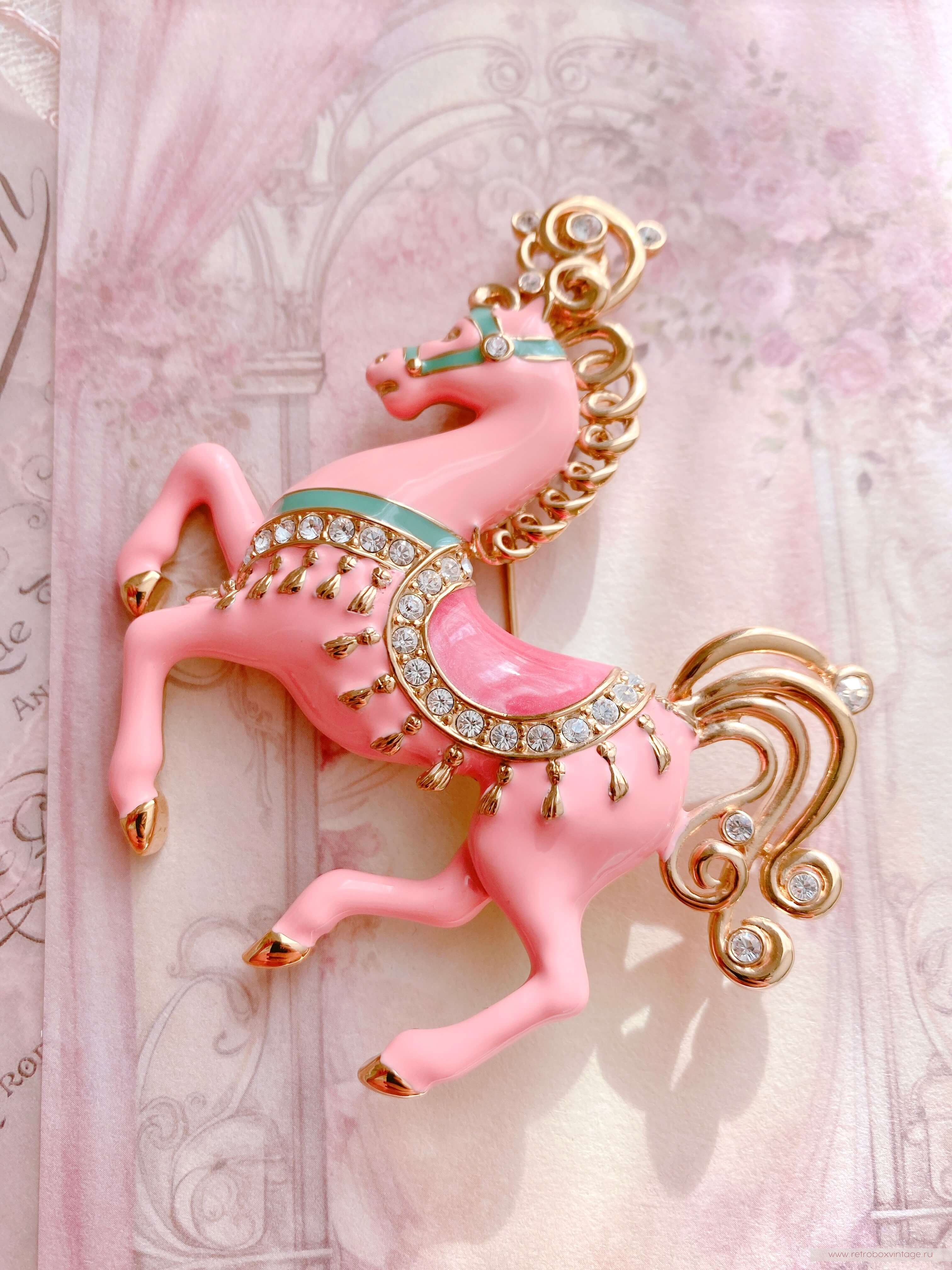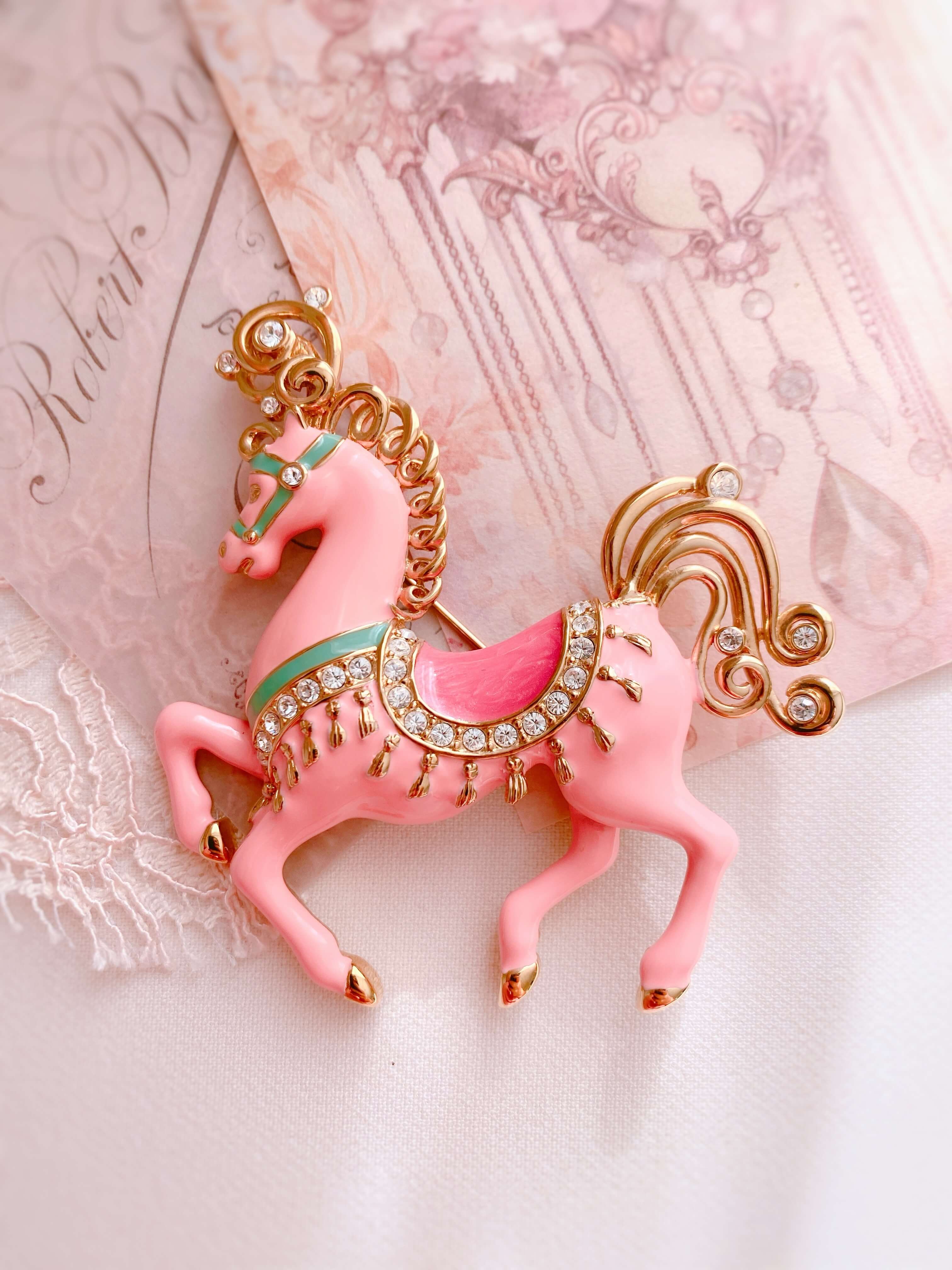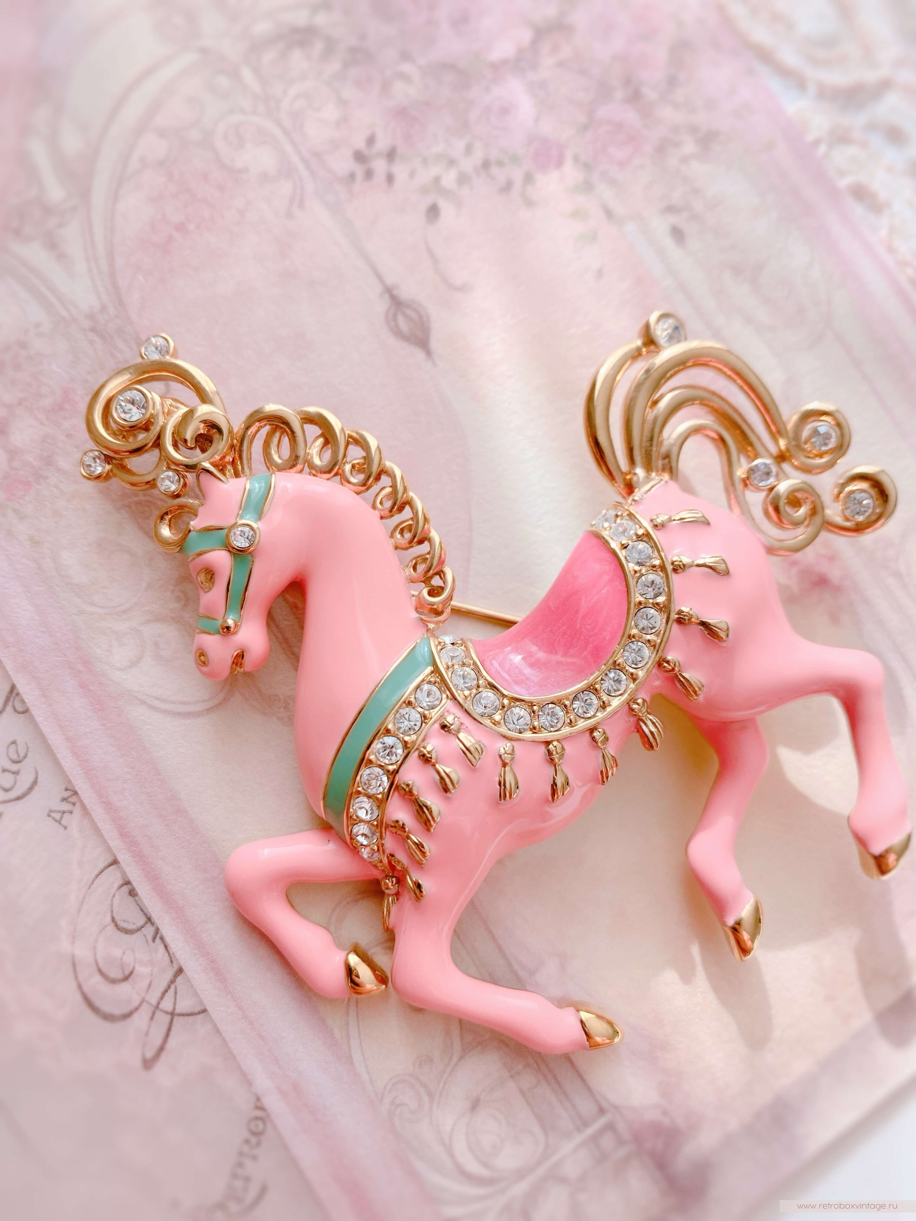 Винтажная брошь BOB MACKIE «Царская лошадь: розовая» – благородная спутница.