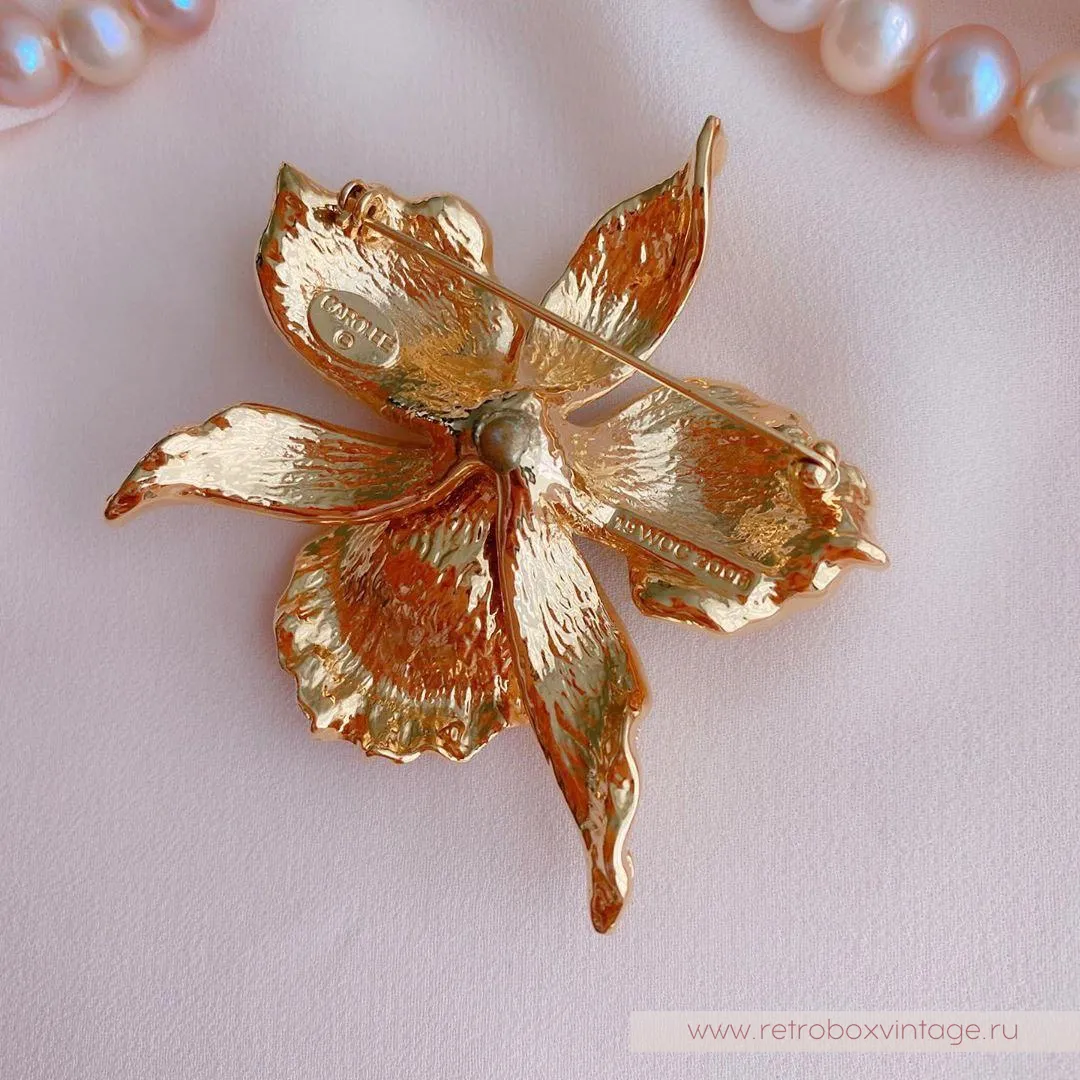 Роскошной аристократкой, сулящей удачу, увидели орхидею дизайнеры марки CAROLEE. Украшение выполнено безупречно. Плавность и естественность изгибов лепестков создает впечатление реалистичного объемного изображения. А едва уловимые переходы полутонов зеленого цвета, будто мазки Краски на холсте, изысканно передают природную прелесть необычной расцветки.