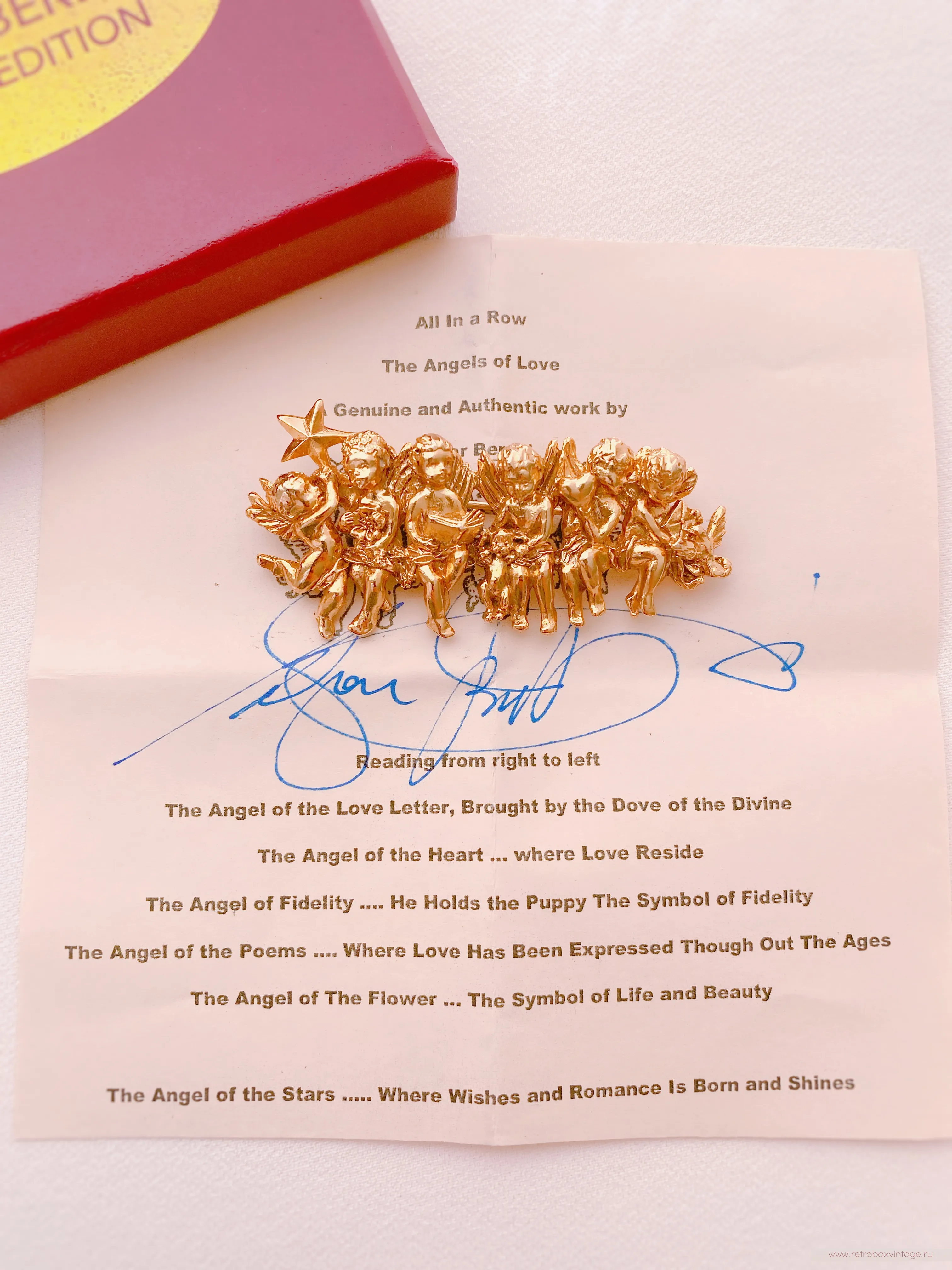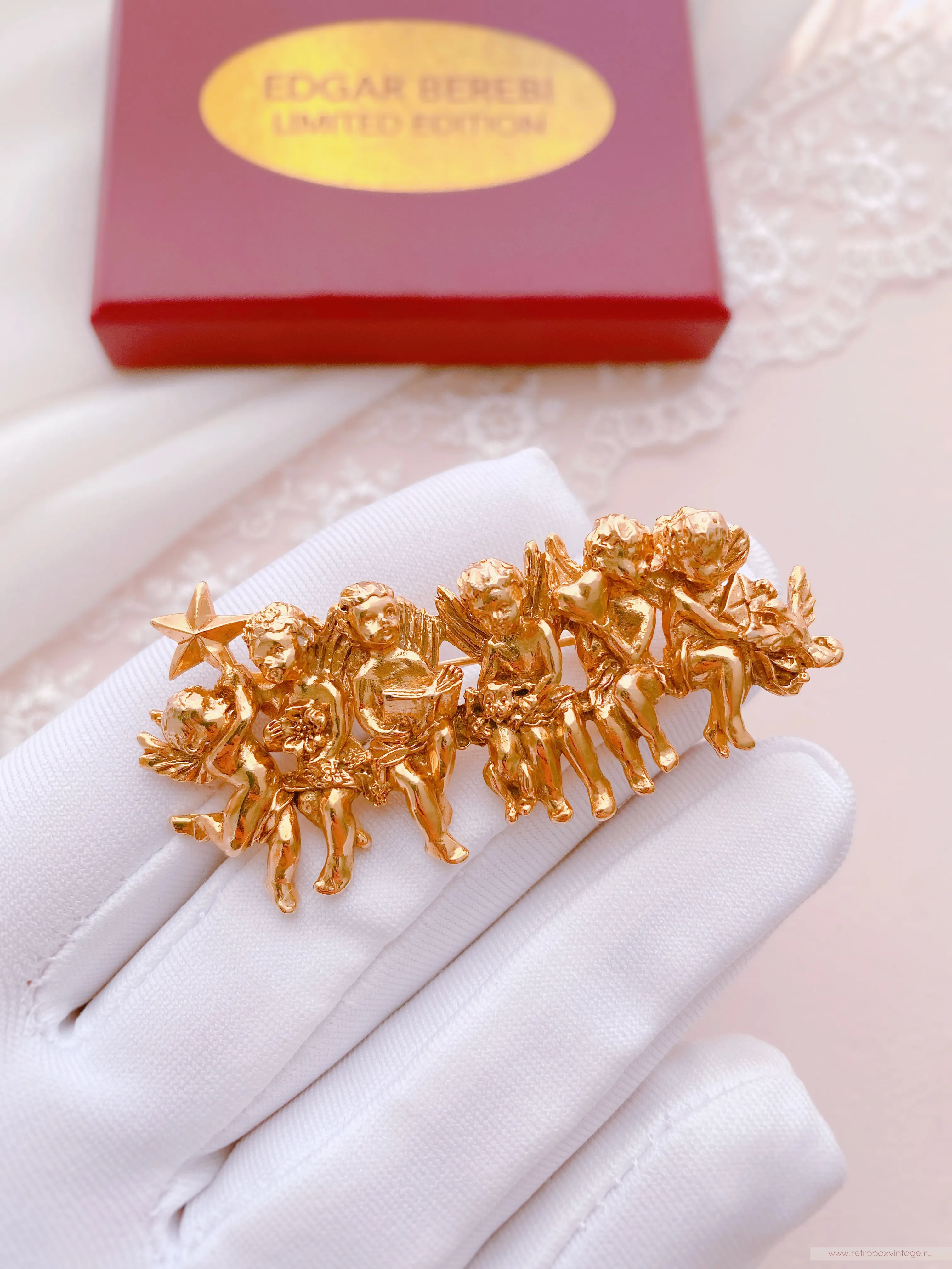 Эдгар Береби — гений, чьё имя стало символом ювелирного совершенства. Его серия «Ангелочков» покорила мир ещё в 1980-х, а сегодня каждая работа мастера — раритет. Брошь «Ангелы любви» — часть лимитированного тиража, который никогда не будет повторён. Золочёное покрытие, филигранная проработка деталей, эмоции в глазах ангелов — это наследие, созданное, чтобы переходить из поколения в поколение.