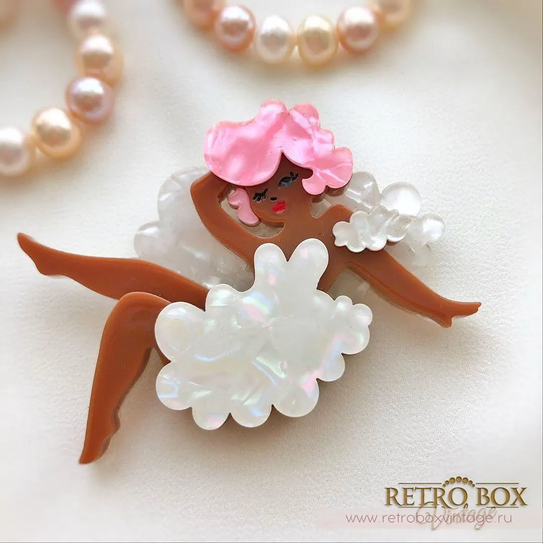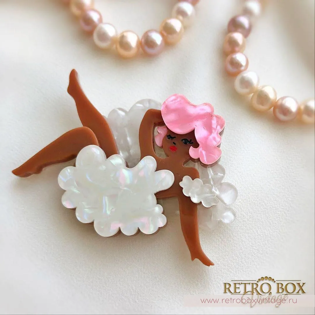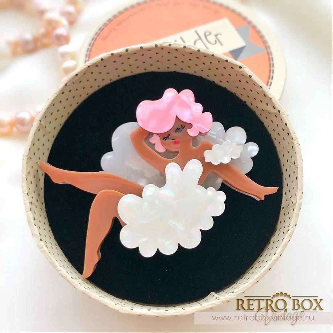 Воздушные, сладкие, цвета ванили и зефира... Я думаю, что именно так, как эта брошь! С такой очаровательной игривой брошью от ERSTWILDER вы можете подчеркнуть свое легкое и «воздушное» настроение.Представьте себя на месте этой кокетки с розовыми волосами и прической Мерлин Монро. Вы уютно устроились на облаке, соорудив из облачной органзы легкое белое платье. Вам так приятно парить над землей.