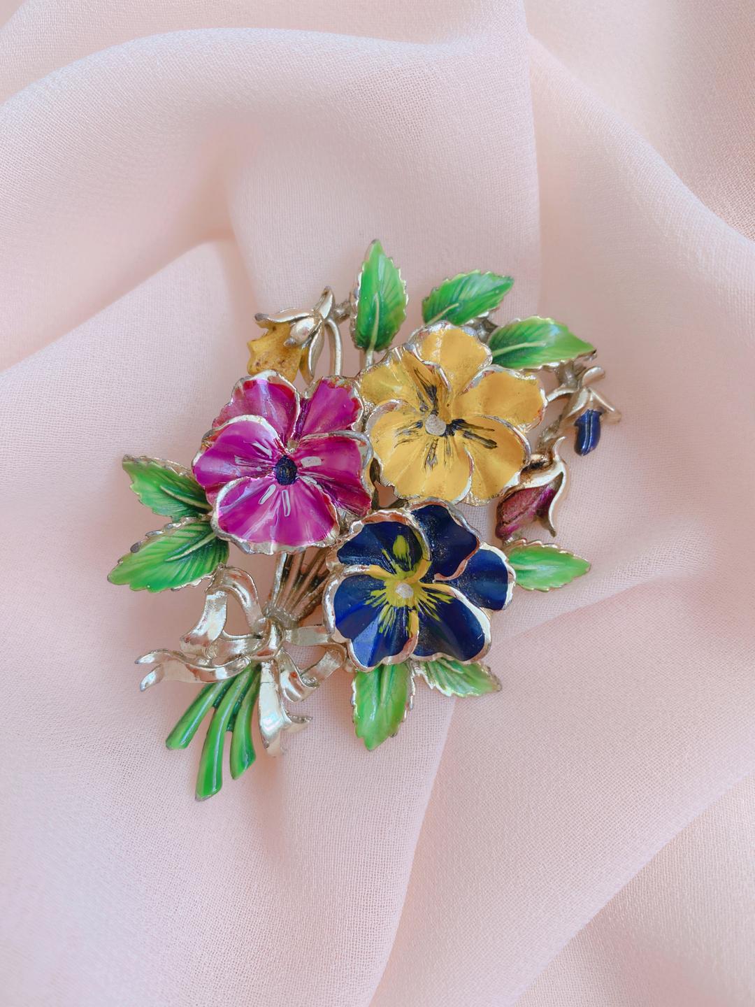 Сегодня знакомлю Вас с одной из самых красивых брошей коллекции - фиалками. Броши выпускались в двух размерах; на фото - та, что крупнее.Такие нежные, легкие, невероятно изящные броши-букетики непременно поднимут вам настроение. Ведь, согласитесь, цветы – это всегда праздник! К тому же они никогда не увянут!