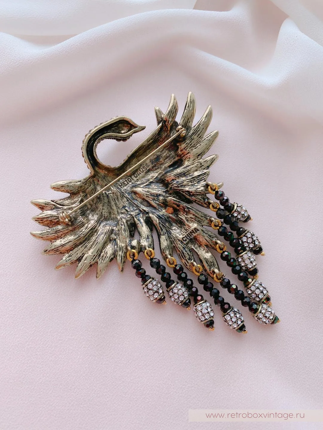 Лебедь и сегодня продолжает вызывать восхищение своей удивительной красотой, грацией и мудрым характером. Эти птицы селятся только там, где от земли и людей исходит энергия мира и спокойствия.Вас скорее всего удивит то, что до XVII века европейцы не верили в существование чёрных лебедей? И только экспедиция к берегам Западной Австралии в 1697 г. явила миру этот редкий вид грациозных созданий.Глядя на эту редкую брошь HEIDI DAUS, Вы почувствуете себя тем самым первооткрывателем, а окружающие не смогут отвести взгляд от этого великолепия.