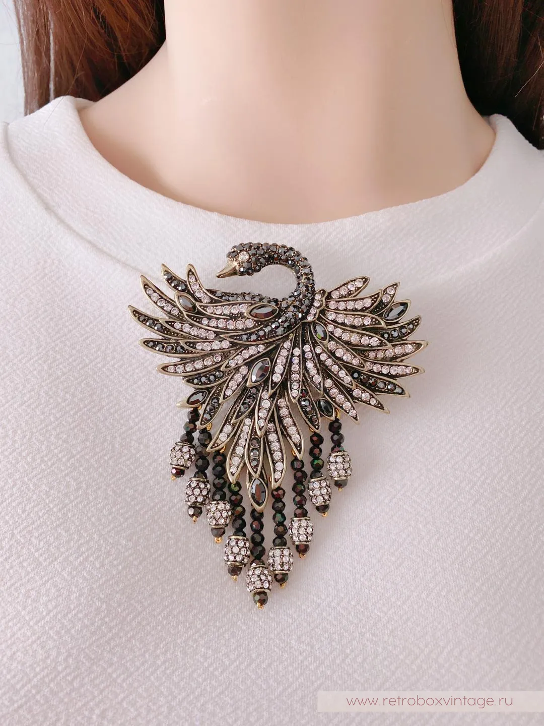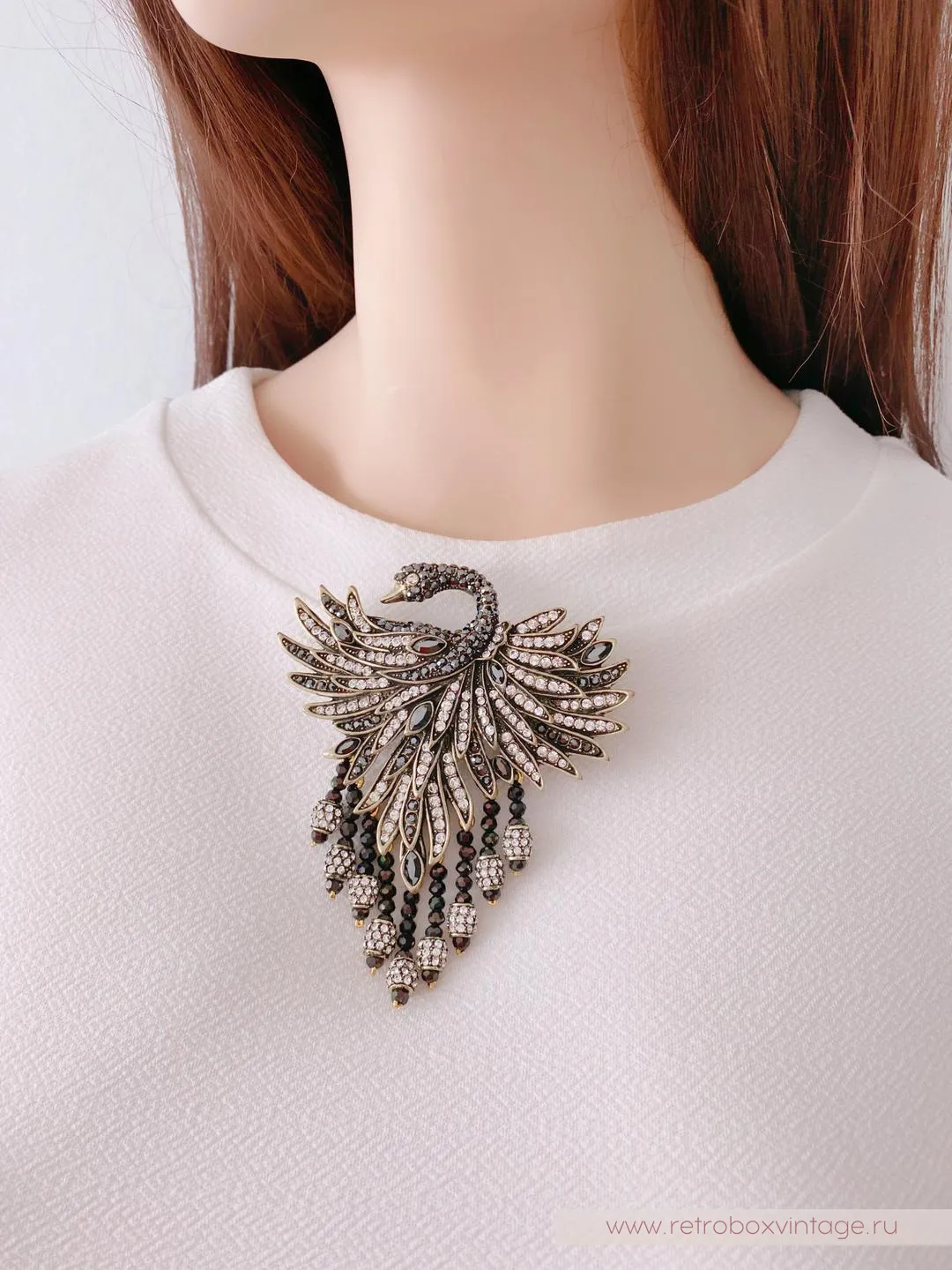 Это очень редкое украшение во всех смыслах этого слова. Каждая деталь завораживает, пробуждает самые яркие эмоции, которые сложно выразить словами. Сотни дымчатых и чёрных кристаллов в оперении птицы дарят вспышки искр.Эта брошь способна подарить ощущением собственной исключительности, о чем вам красноречиво поведают взгляды окружающих....