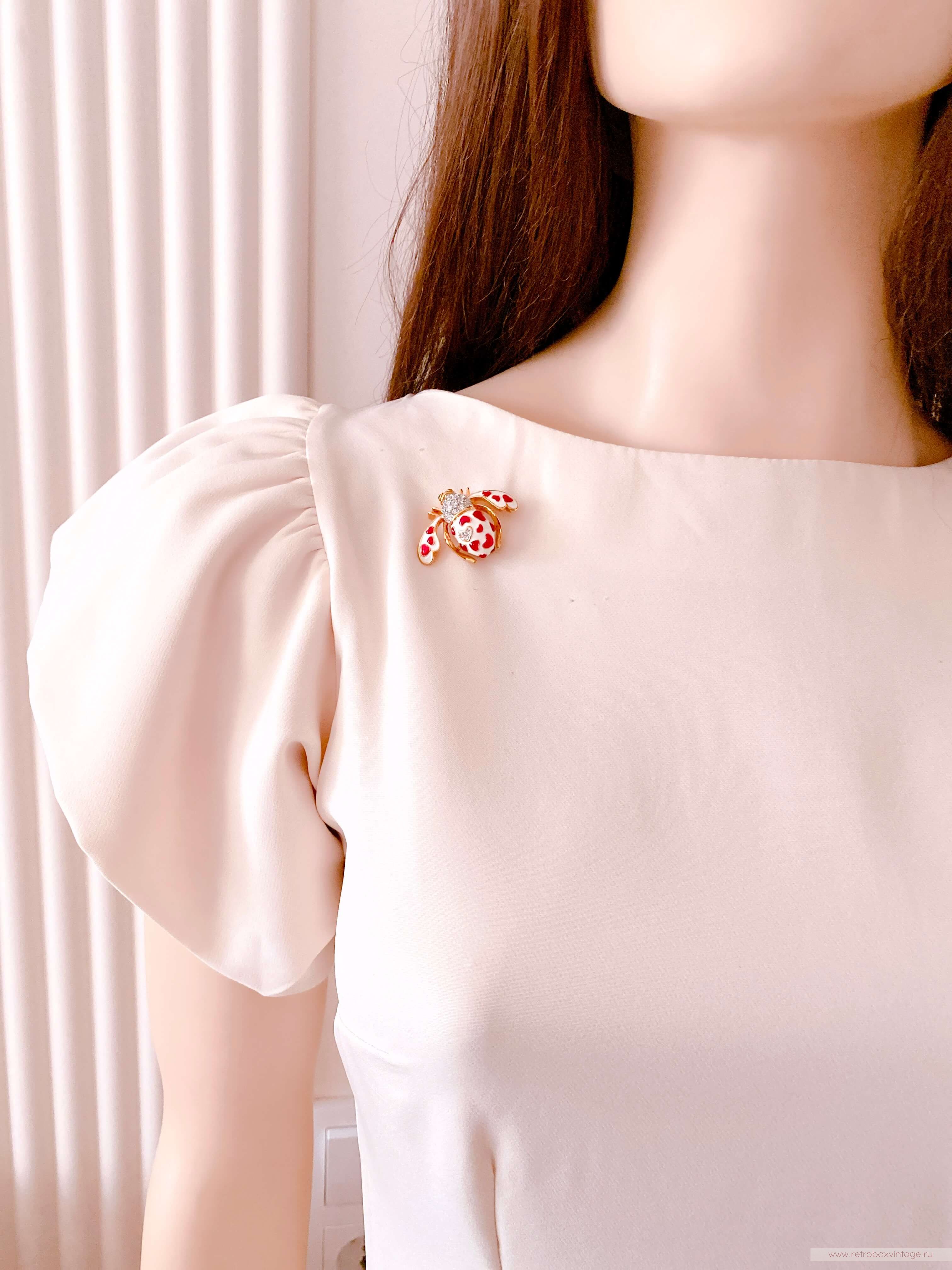 «Любовная пчёлка» легко станет изящной изюминкой образа. Её можно приколоть к лацкану жакета, на воротник блузы, на кардиган или даже украсить ею шёлковый шарф. Особенно красиво такая брошь смотрится ближе к лицу — она добавляет образу мягкого сияния и лёгкой игривости. Это украшение подойдёт женщинам, которые любят детали с характером: романтичным натурам, ценительницам винтажного стиля и тем, кто умеет создавать элегантность без лишней вычурности.