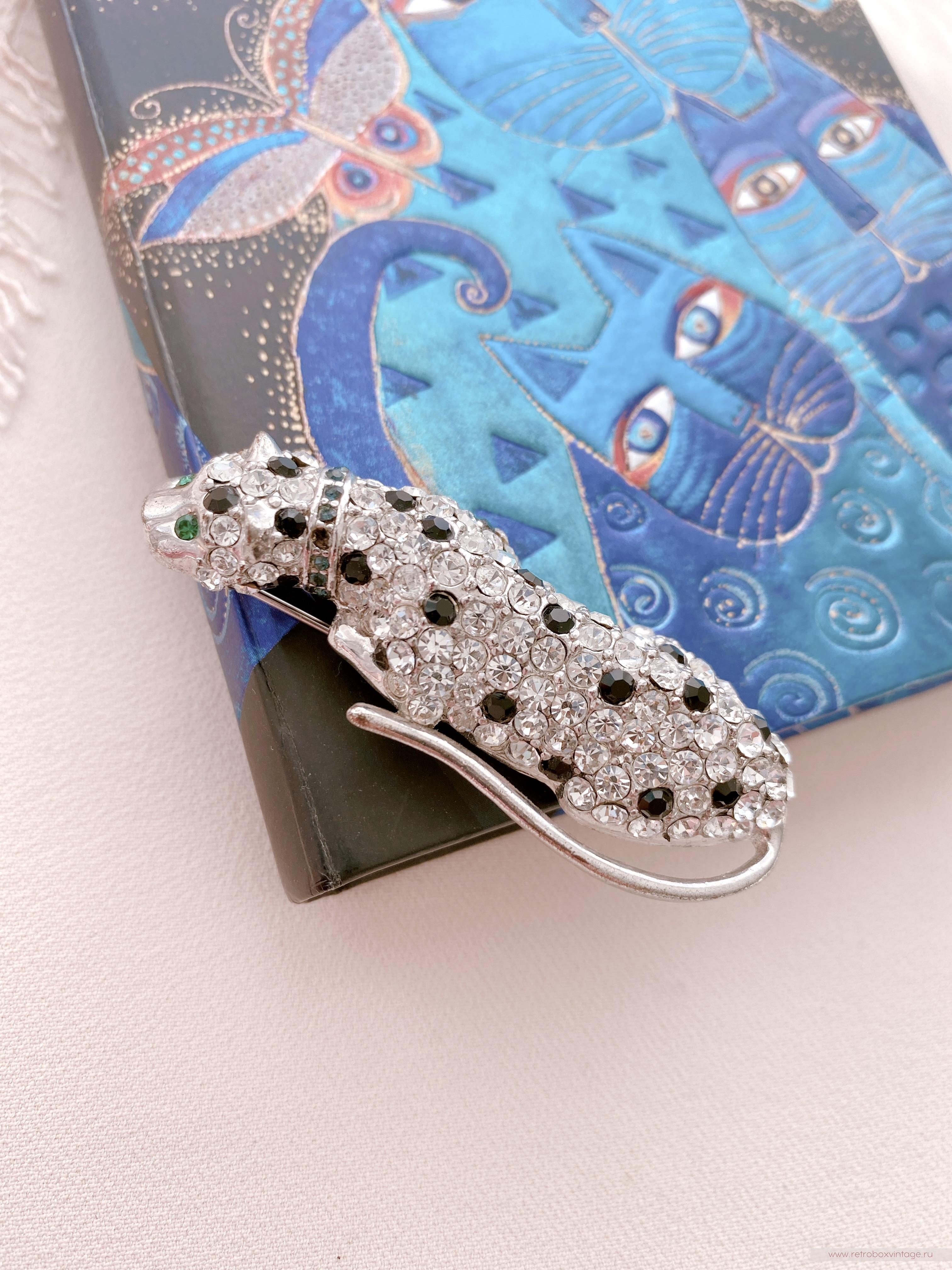 Винтажная брошь KENNETH J LANE for AVON «Кристальный леопард с зелеными глазами» – подчеркните свою хищную грацию.