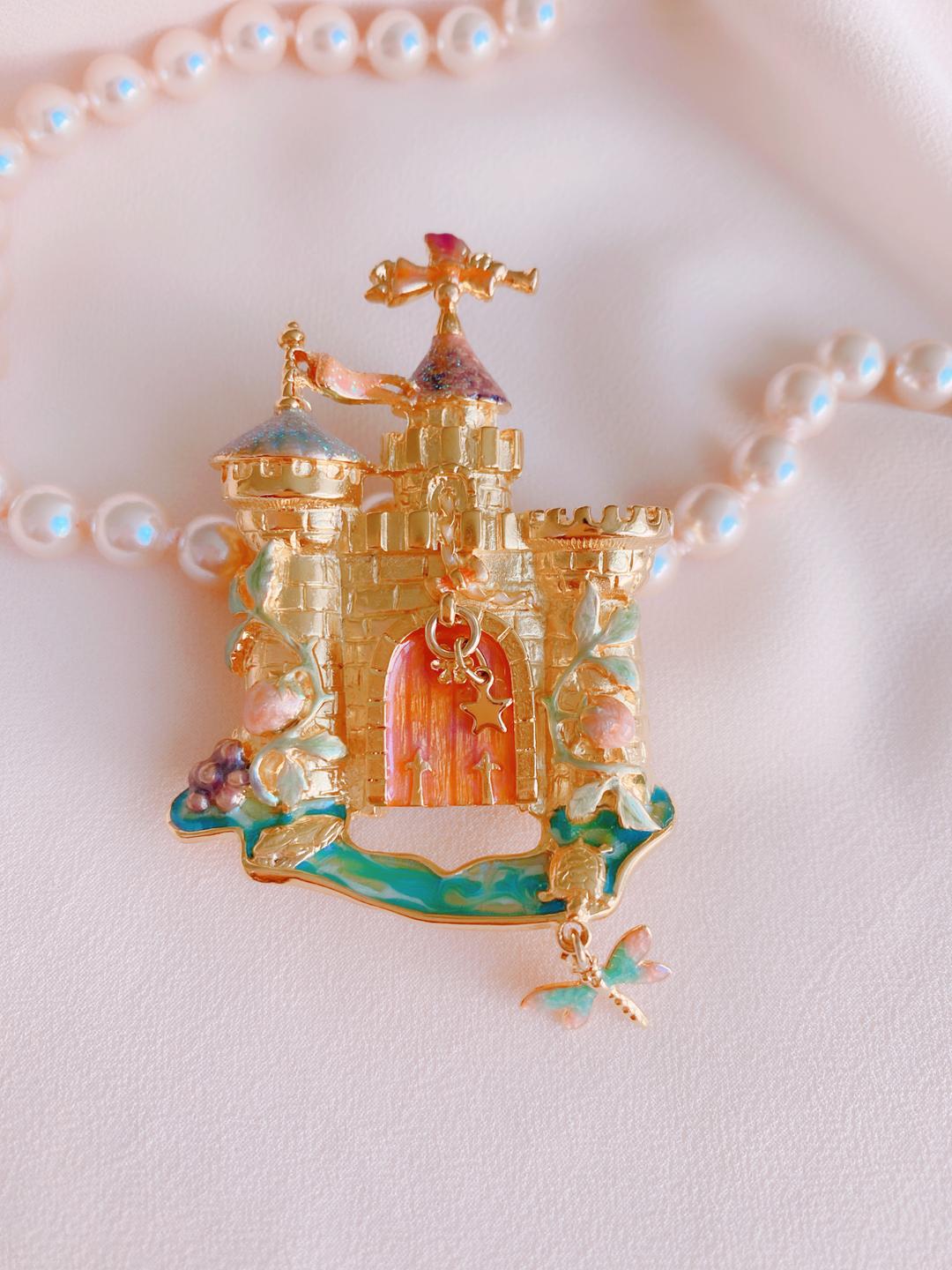 Но люди творческие не перестают убеждать нас в том, что воздушные замки могут стать вполне реальными, стоит лишь придать им соответствующие очертания. Например, в виде броши.KIRKS FOLLY предлагают окунуться в мир фантазий и полюбоваться своим видением мечты. Благодаря нежнейшим сверкающим эмалям их замок выглядит ожившей грезой, исполненной потайных смыслов.