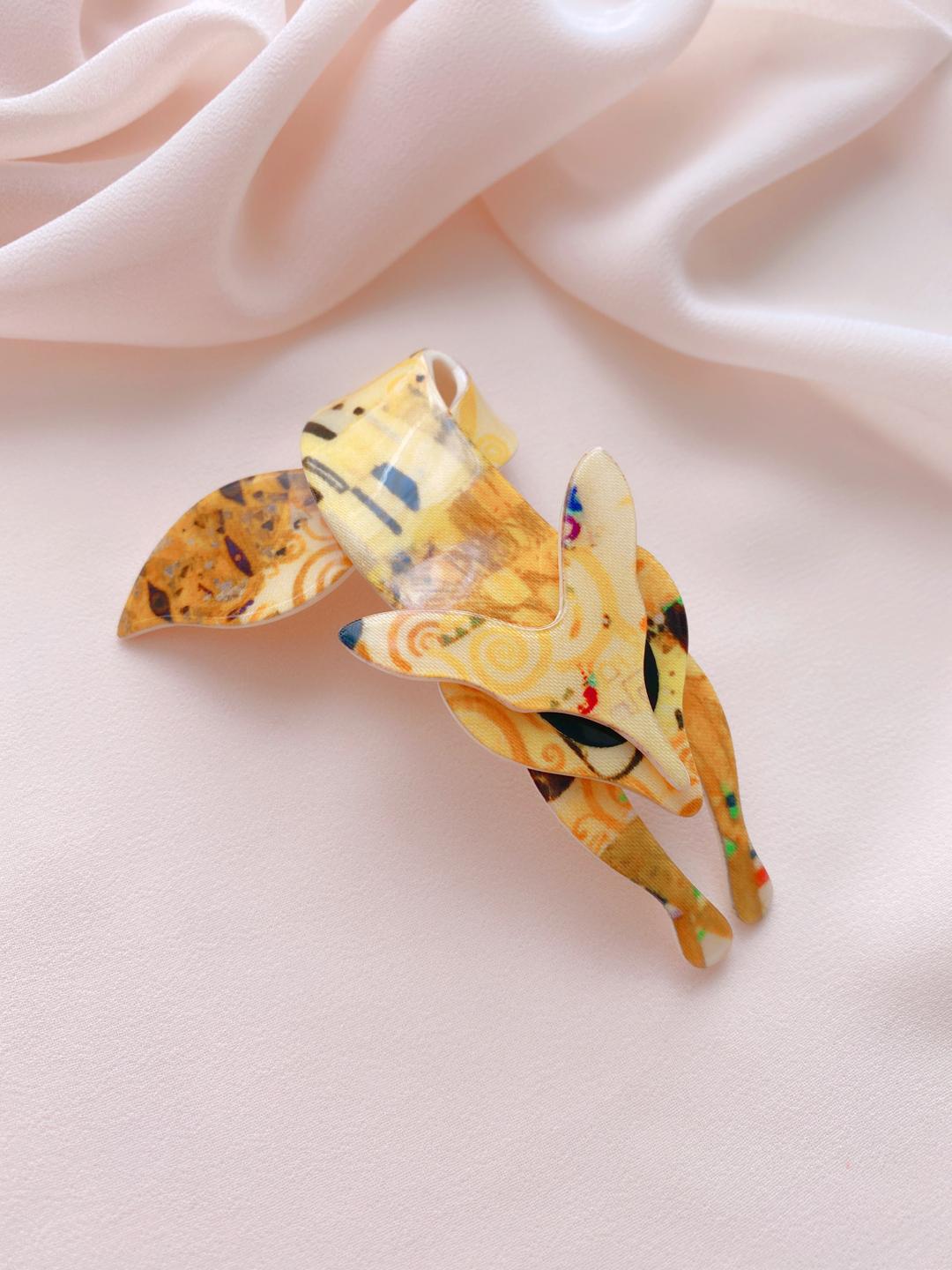 Проворный, умный и невероятно обаятельный зверек, лиса обладает присущей нам грацией и харизмой. Уютно устроившись на вашем плече, брошь создаст вам приподнятое жизнерадостное настроение на целый день. К тому же, она станет своеобразным проводником в мир живописи. Ценители искусства непременно оценят ваш художественный вкус.Эти лисы в коллекции бренда особенные и встречаются довольно редко. Тем теплее осознавать, что я, наконец-то могу показать вам это чудо. Иначе и не назовешь этот яркий, солнечный аксессуар. Кстати, проверим вашу эрудицию: какие работы австрийского модерниста вы угадали в расцветке лисичек?