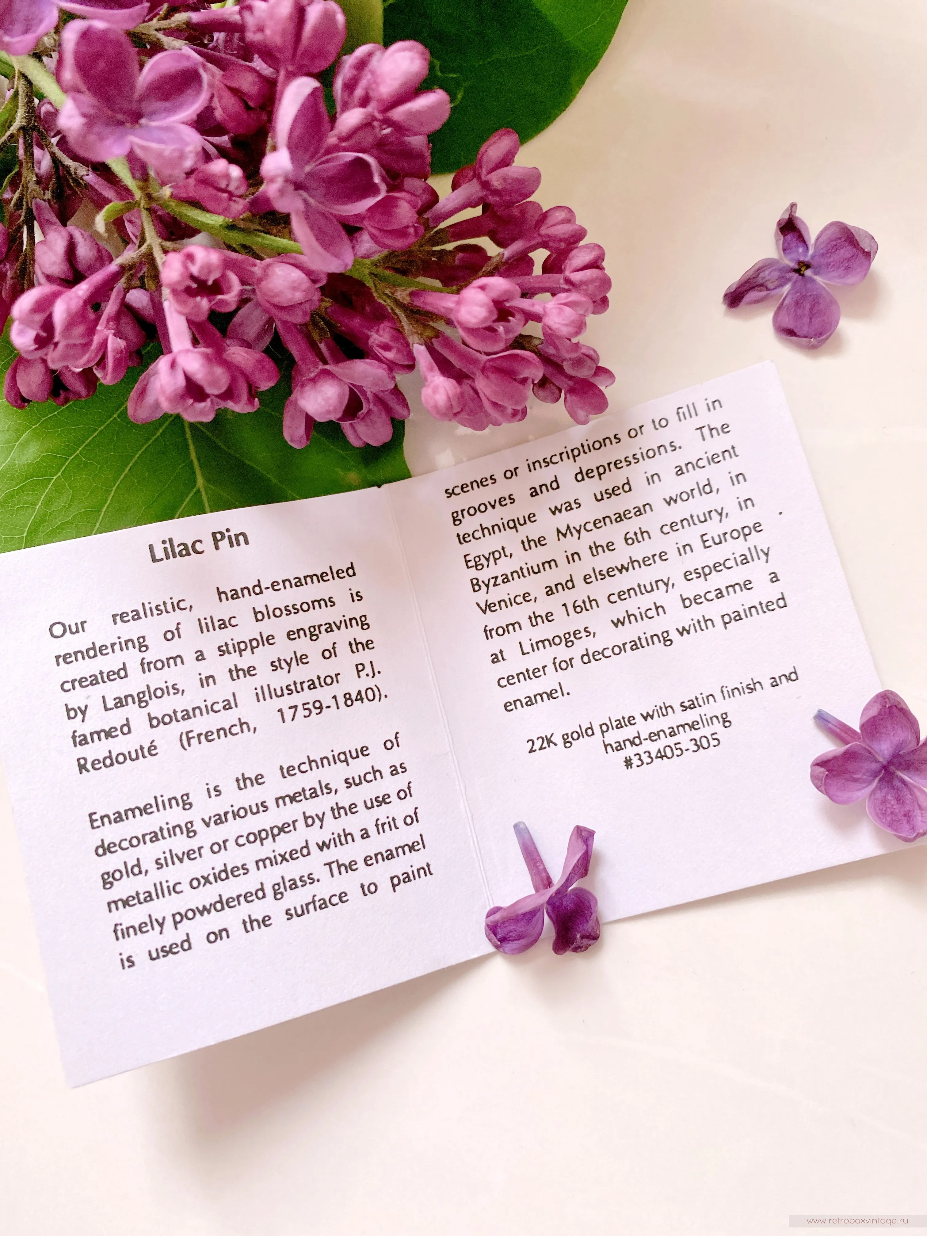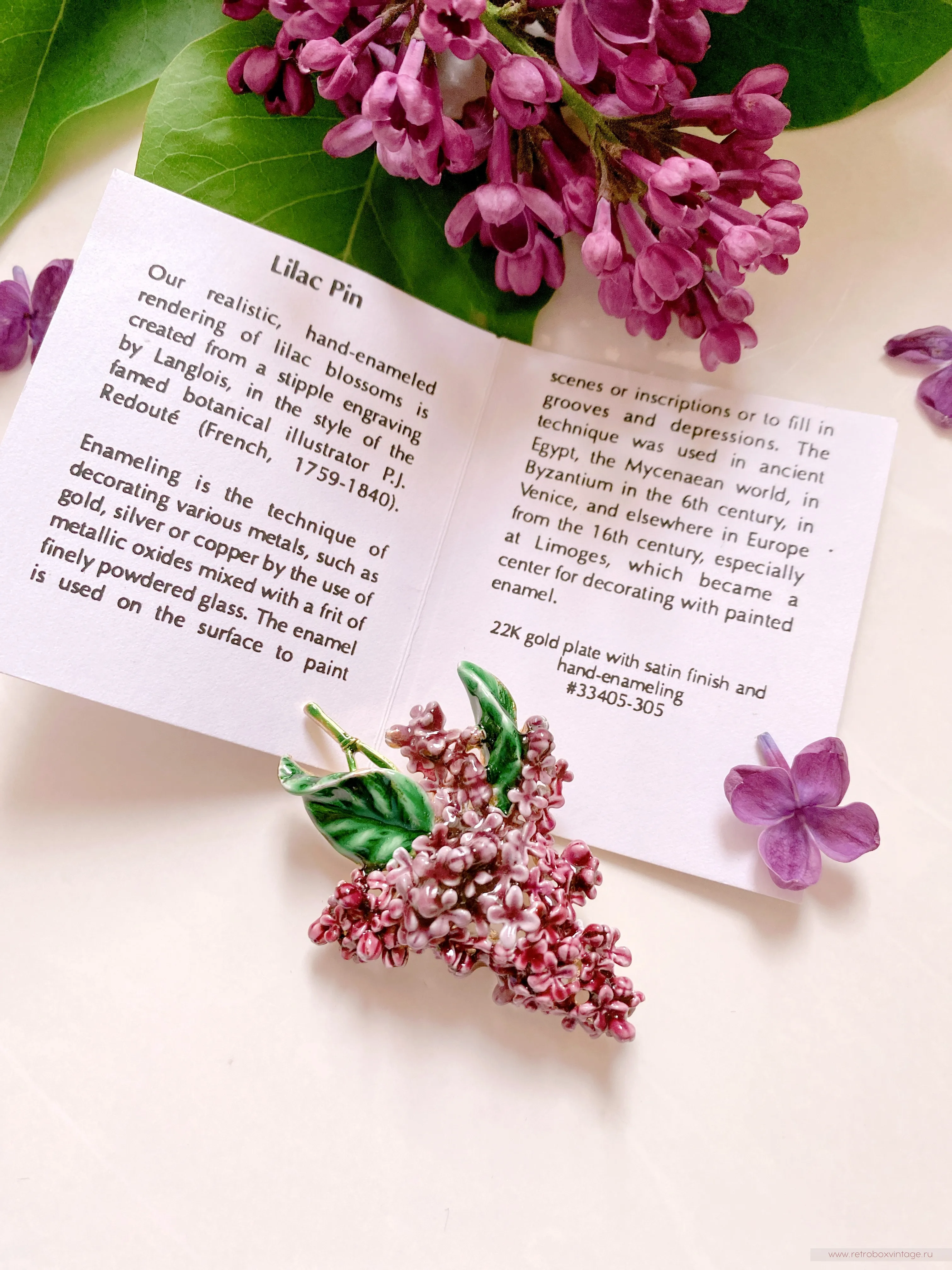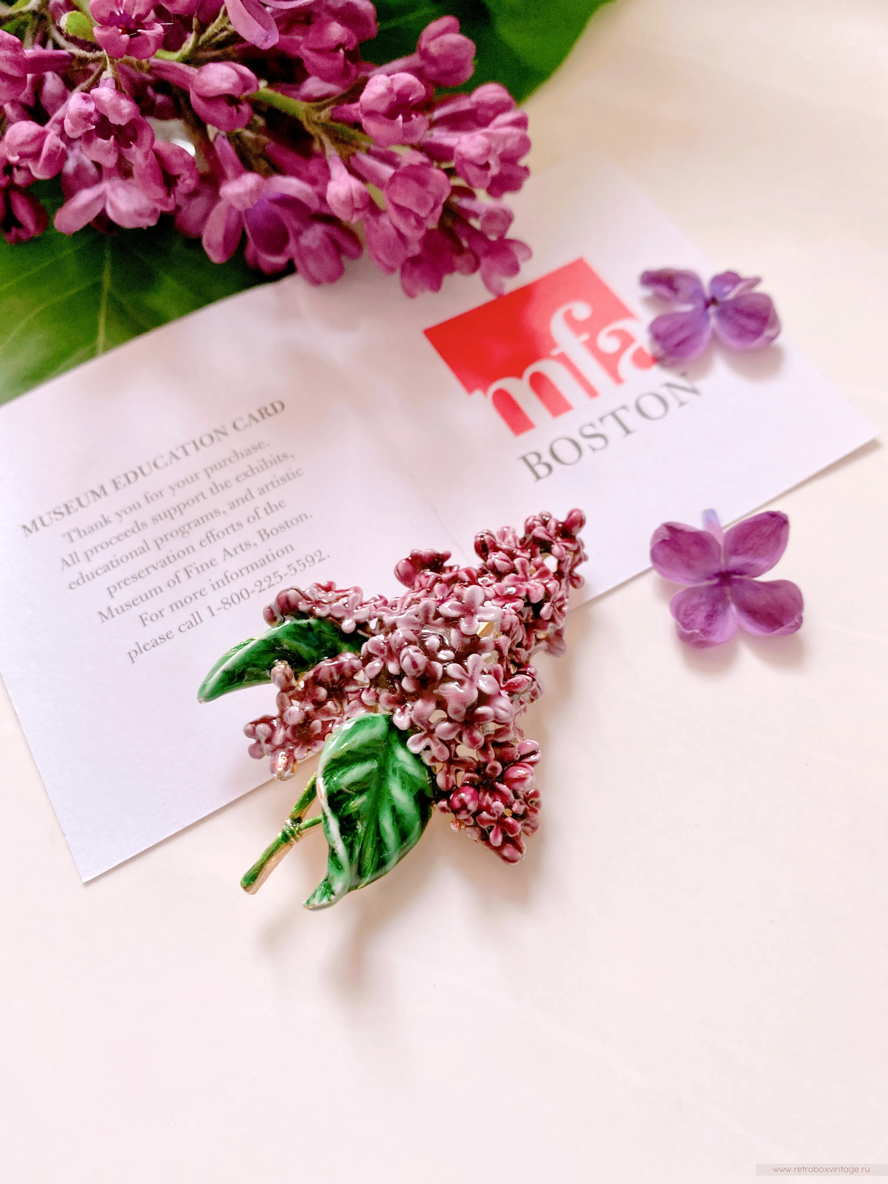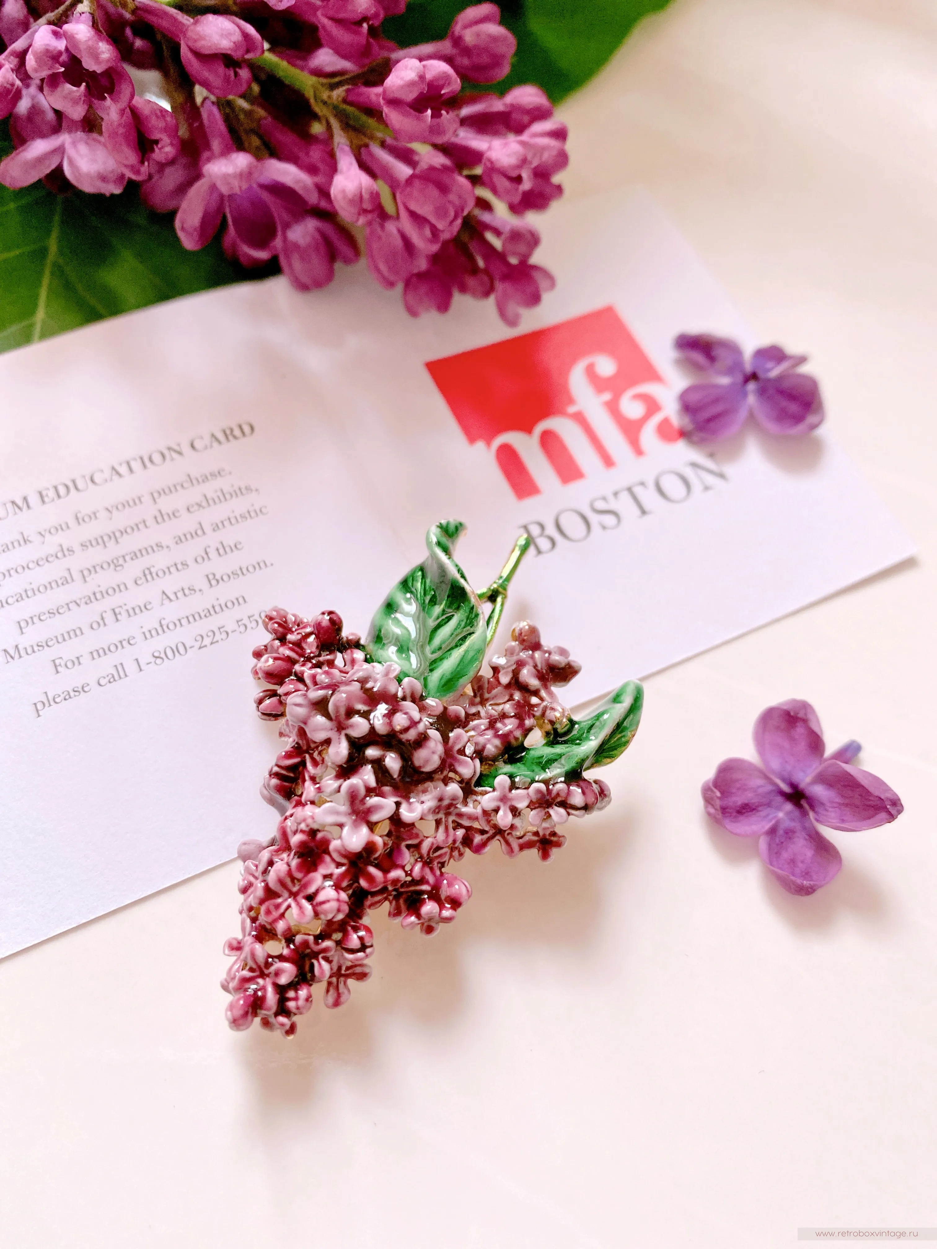 Броши MFA (Museum of Fine Arts) – Бостонского Музея изящных искусств – гордость любой коллекции. Мастерские музея известны тем, что создают не только копии старинных или известных произведений ювелирного искусства в более демократичном исполнении, но и уникальные изделия по мотивам живописных полотен и гравюр. Сиреневые броши были изготовлены в соответствие со знаменитым ботаническим рисунком бельгийского художника Пьера-Жозефа Редуте.