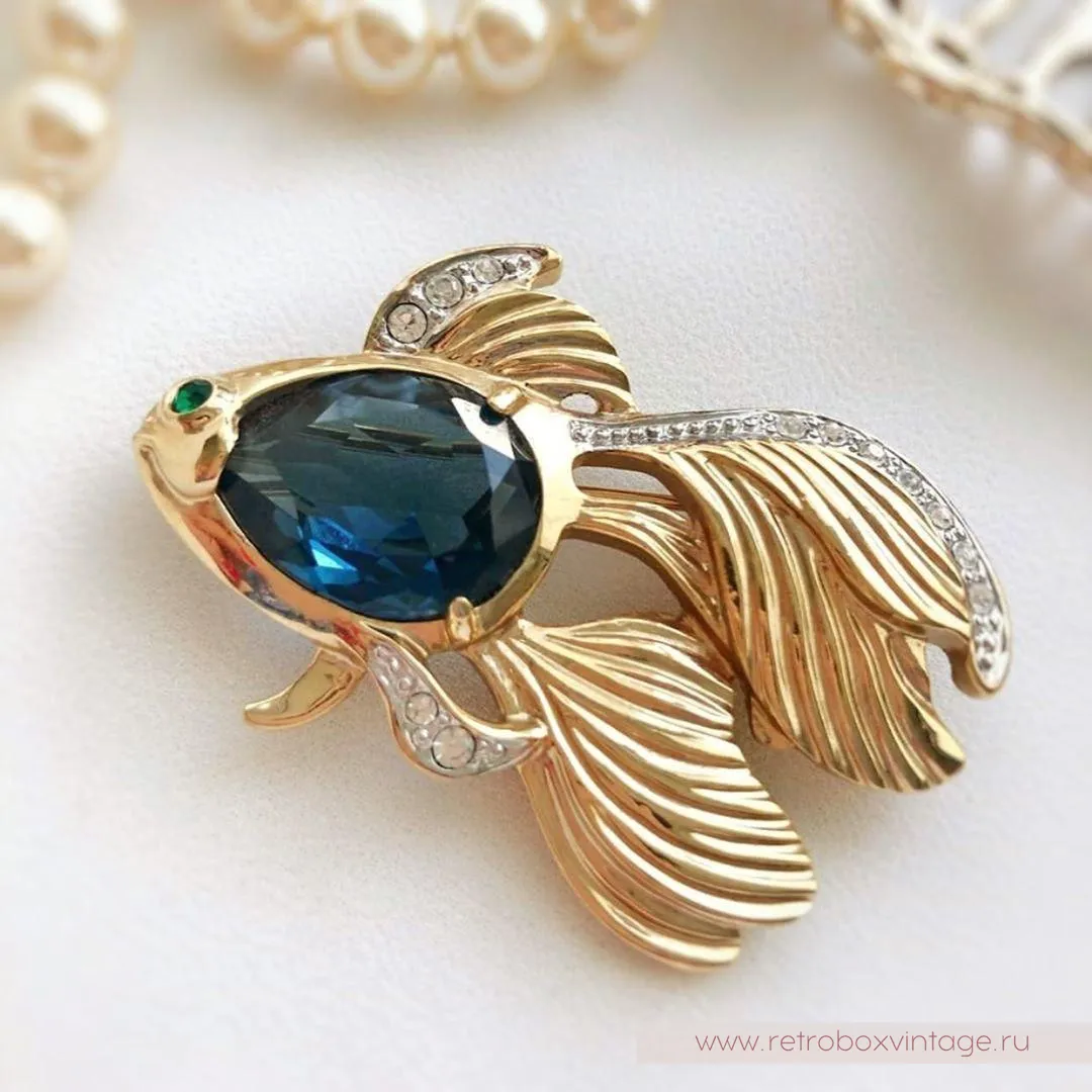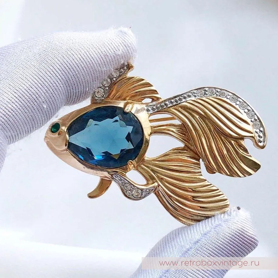 Брошь не маркирована, но однозначно породистая: очень высокий класс исполнения. Скорее всего маркировка была на этикетке или упаковке, которые не сохранилась. Чье же желание исполнительно эта очаровательная золотая рыбка?