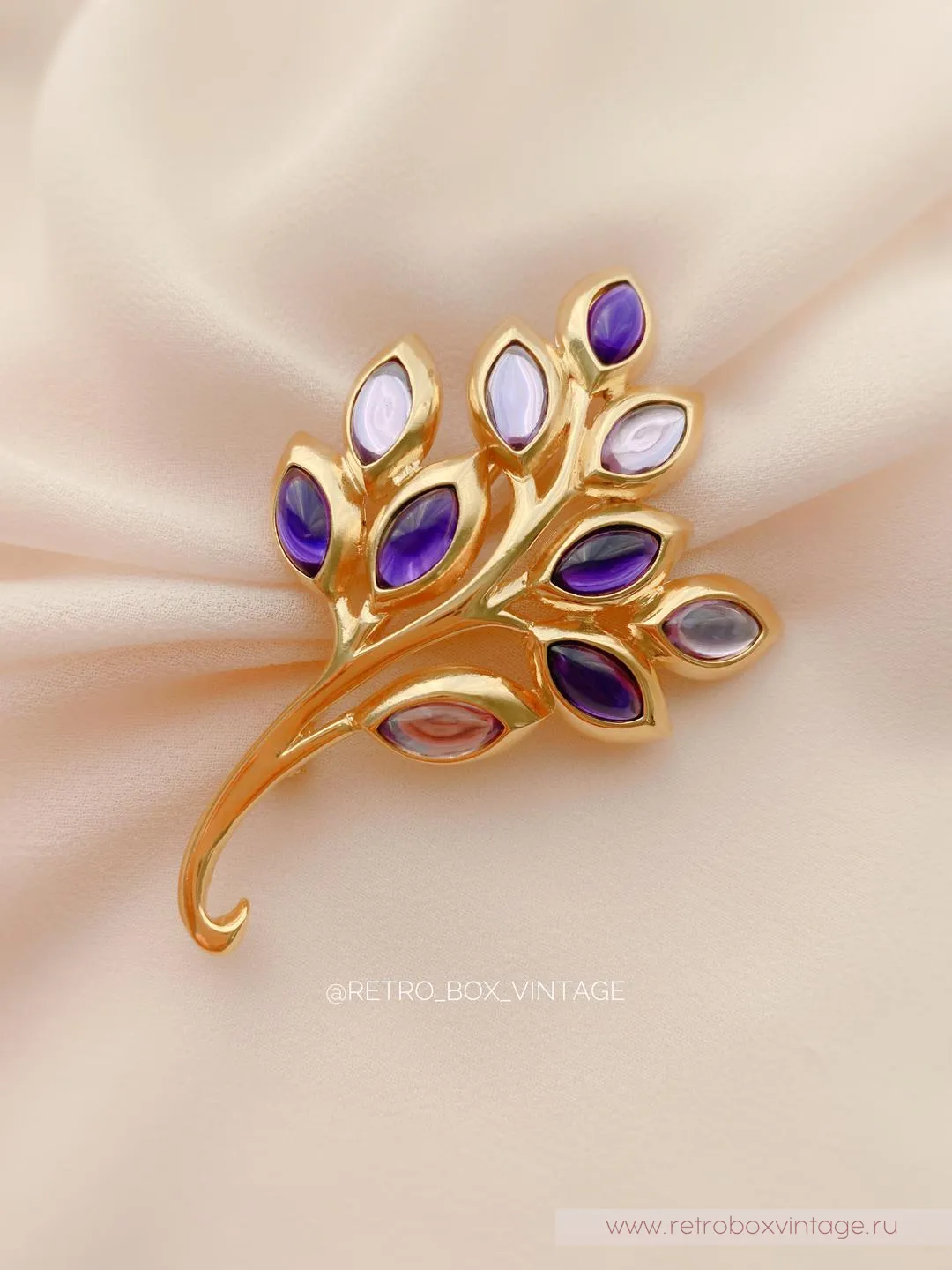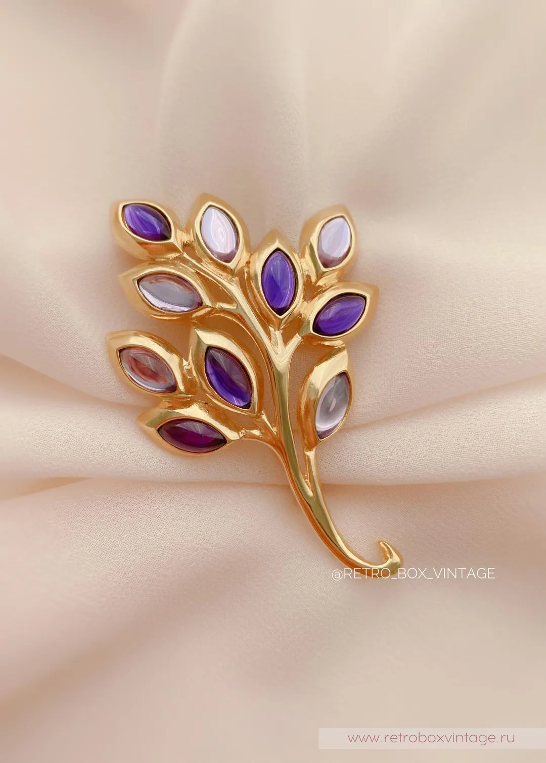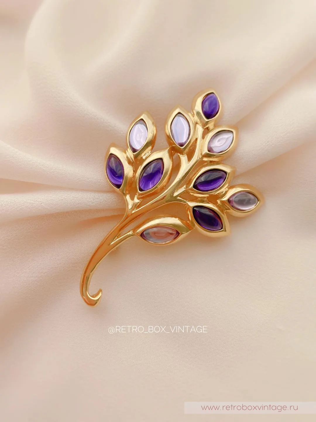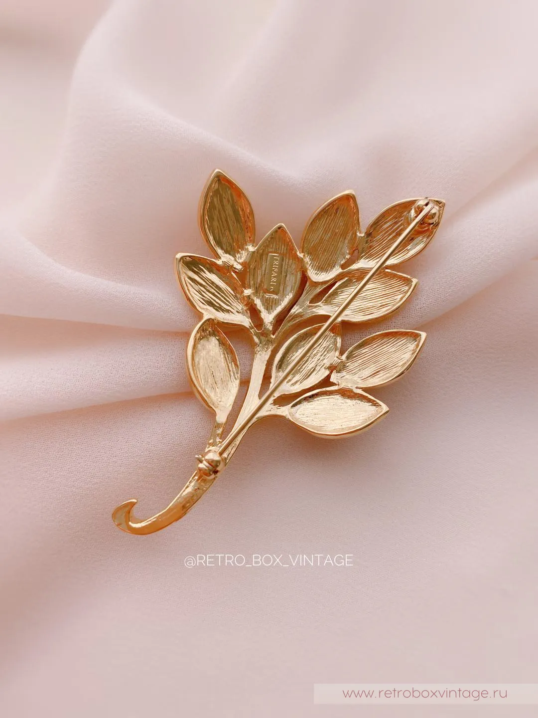 Когда я повстречала эту брошь, то сразу поняла, что она обязательно должна пополнить коллекцию наших находок. Она напоминает и веточку с листвой, и причудливое перо волшебной птицы…Согласно легендам перо жар-птицы – символ вечной красоты, изящества и таинственности. Потухнув, оно превращается в золото и продолжает сиять благородным светом металла. Совсем как эта удивительная брошь! Инкрустированное яркими кабошонами, это перо – само совершенство! Изящное и очень легкое перышко будто случайно выпало из оперения сказочной жар-птицы, чтобы украсить самую искушенную модницу.