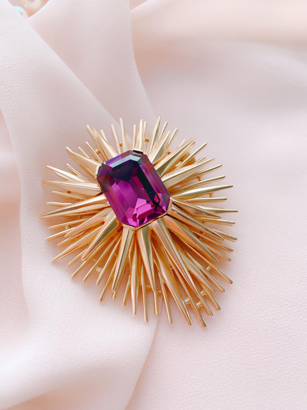 Полюбуйтесь на эти сверкающую звезду! Не правда ли, своим мерцанием брошь достойна соперничать с блеском самых настоящих звезд. Особенно, если украсить ею ваше любимое платье. Глядя на это украшение, хочется верить, что красота незыблема, как истинные чувства.