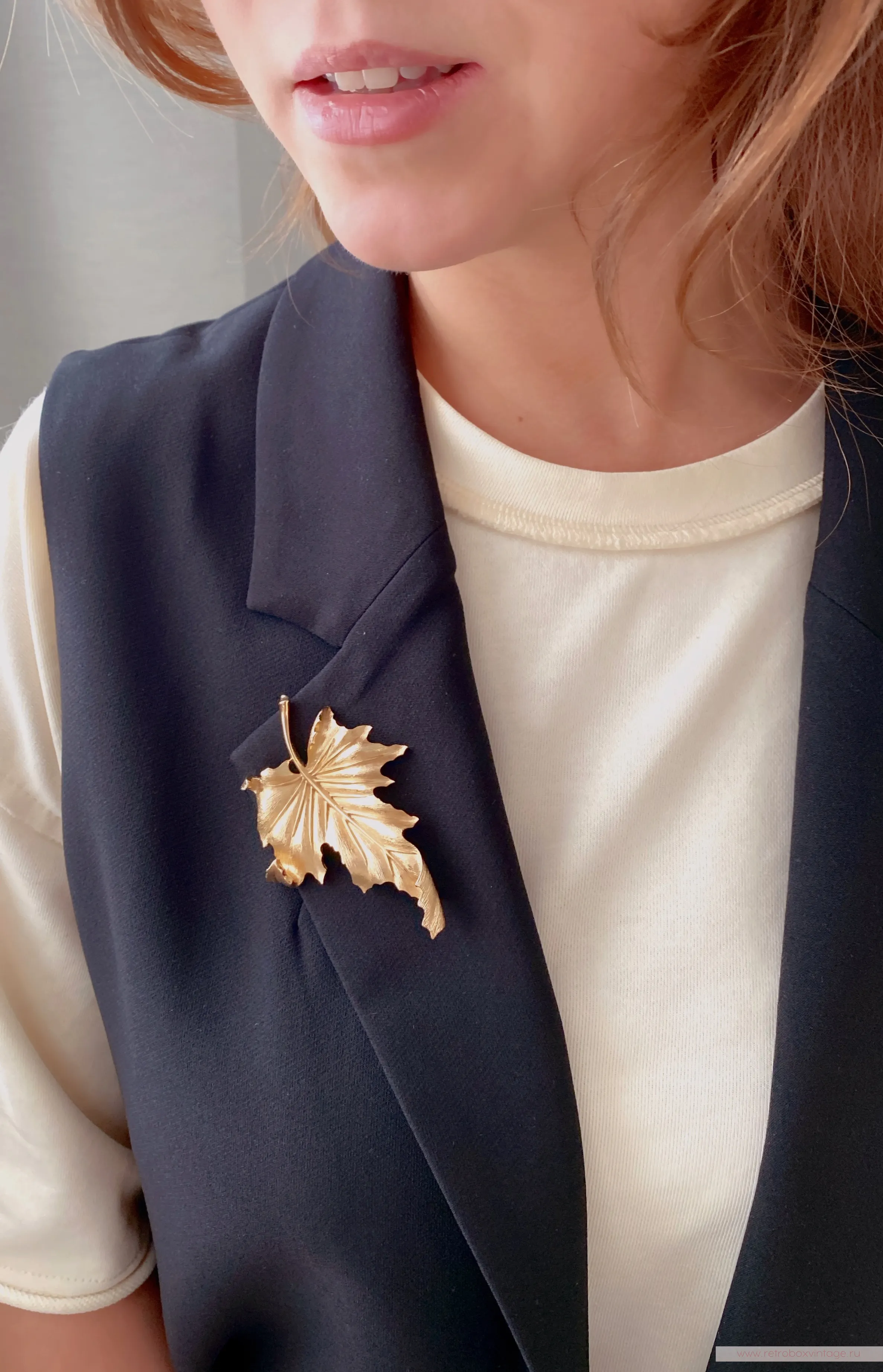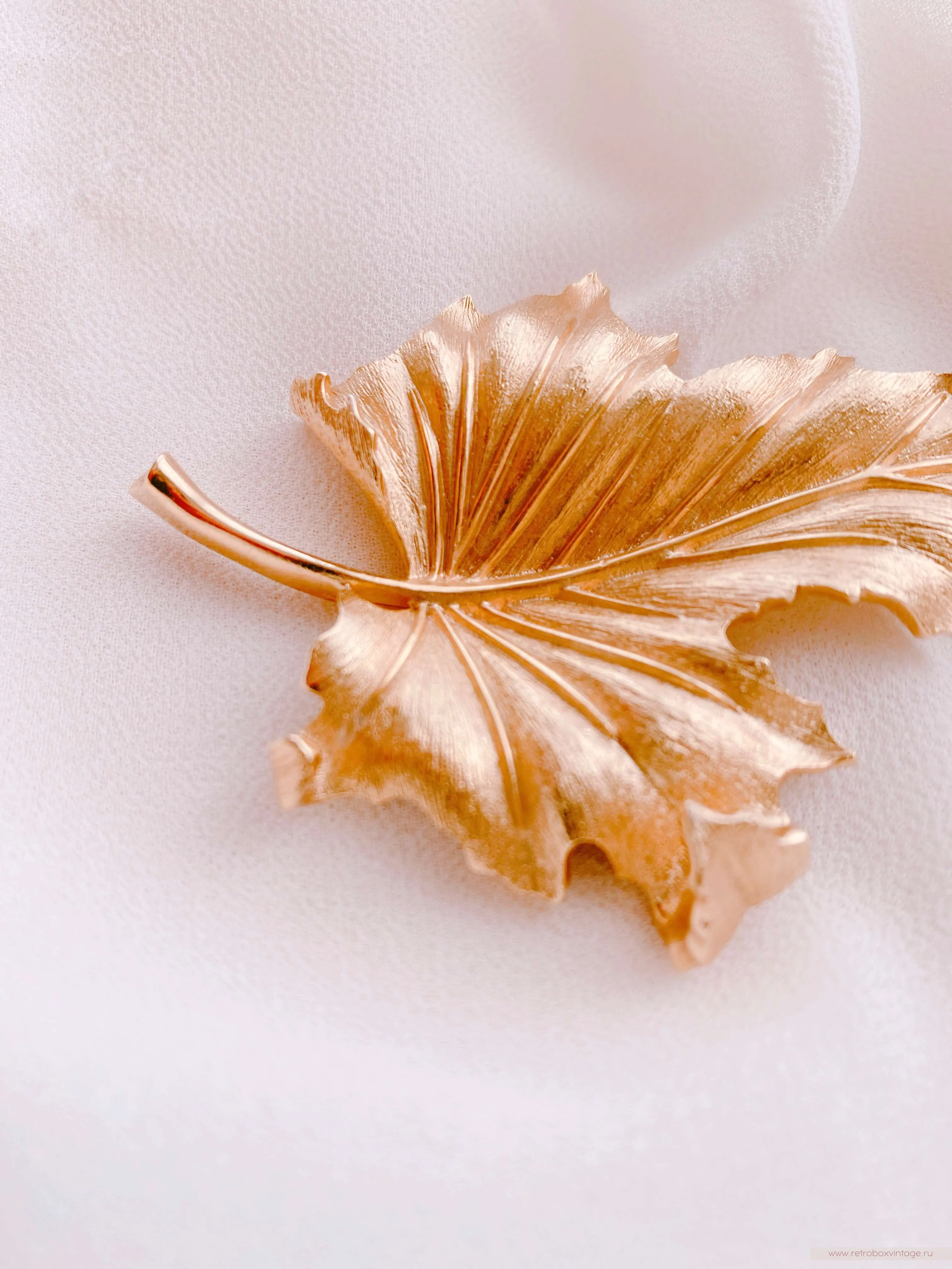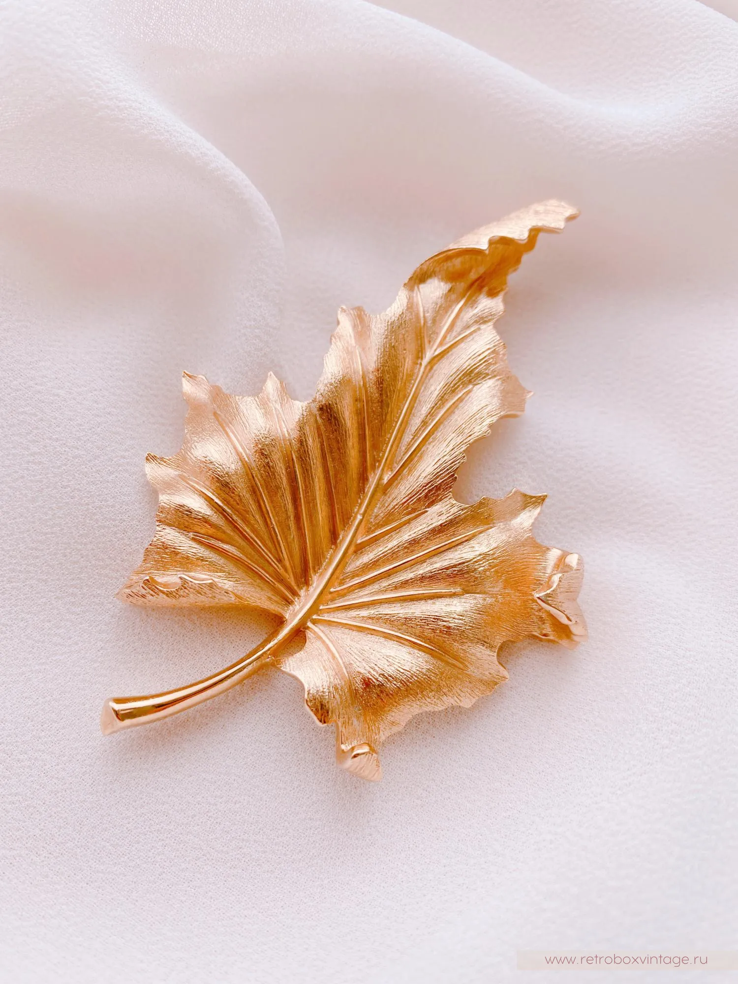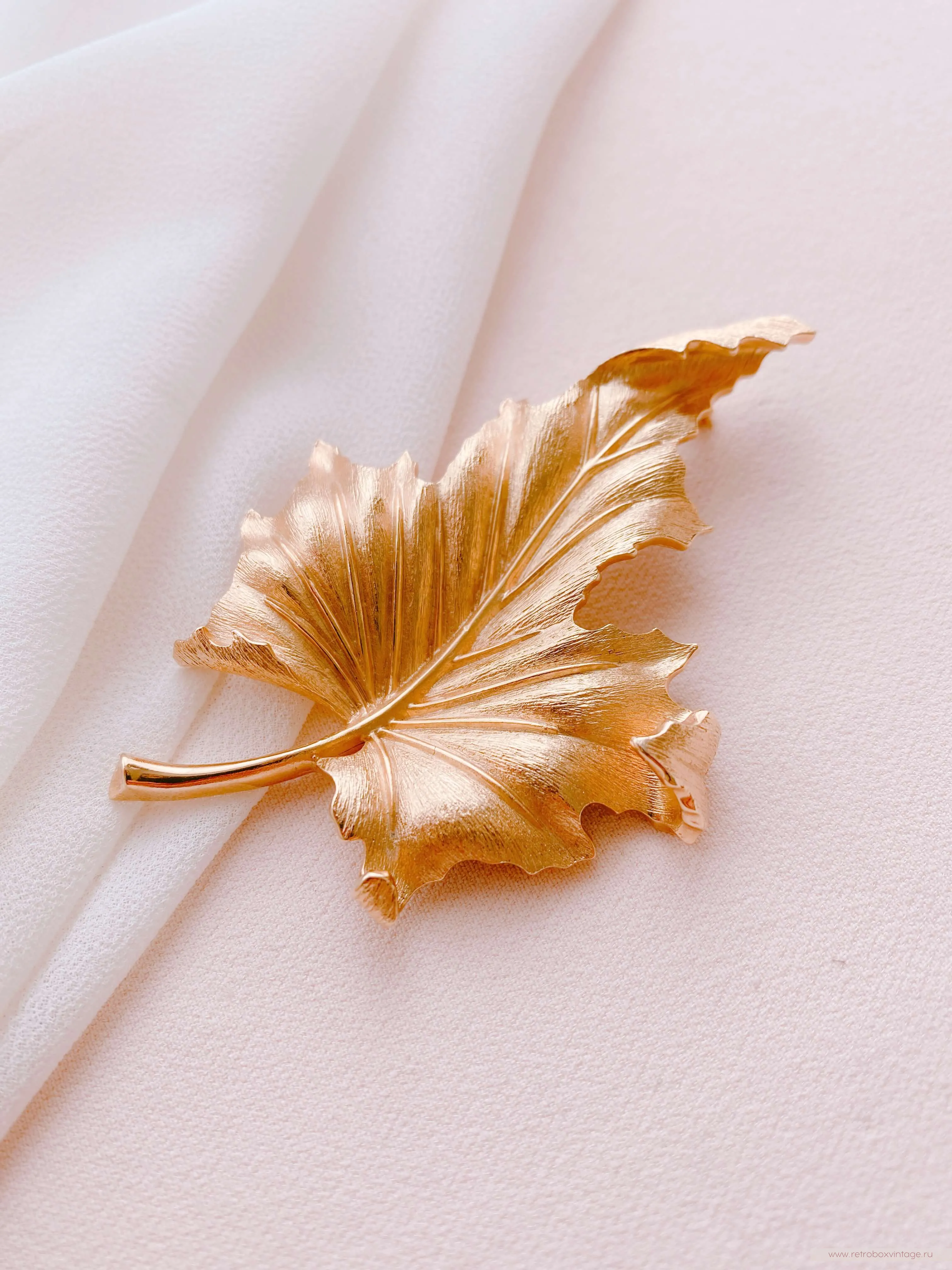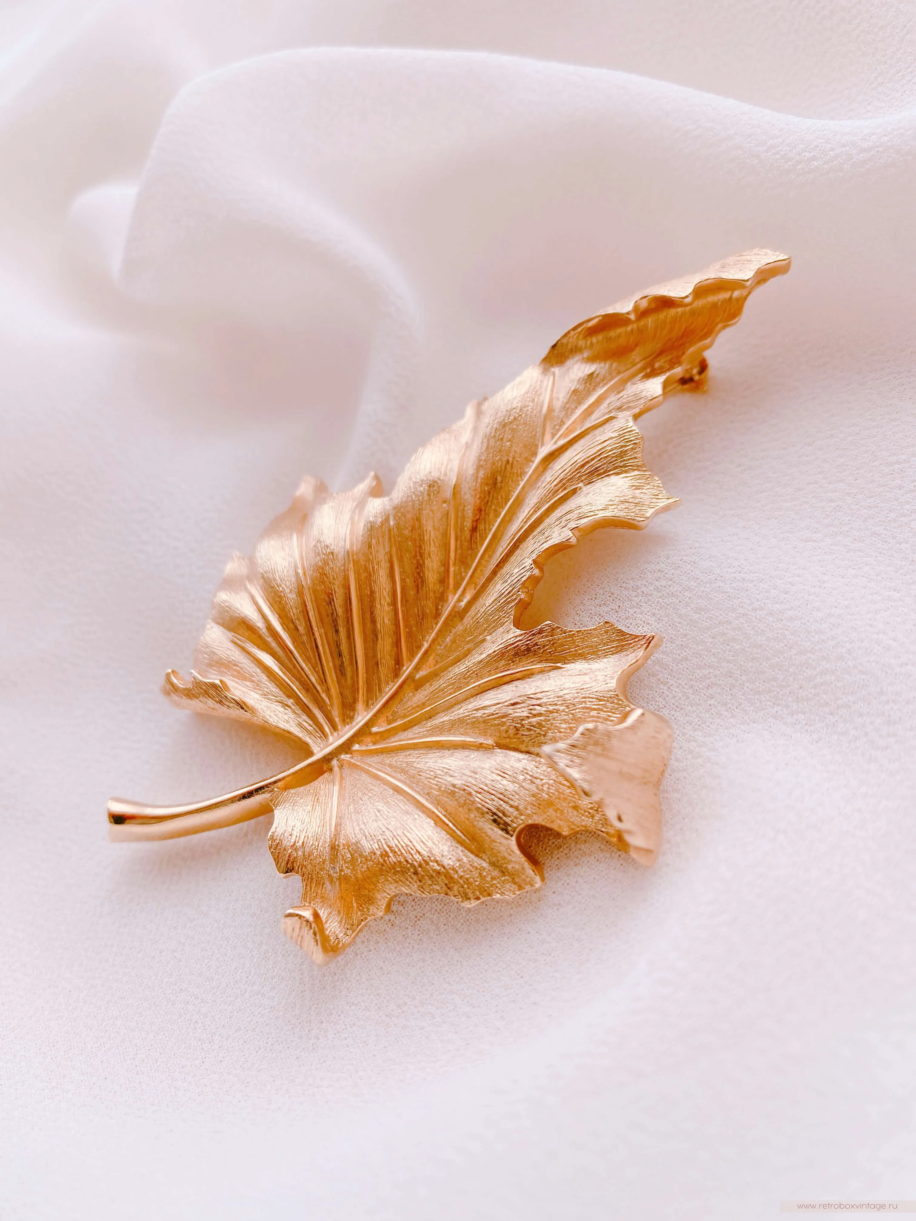 Золотая осень — одно из самых волшебных и прекрасных времён года. Её обаяние привлекает взоры и вдохновляет многих. Осень с её уникальными палитрами цветов, теплыми днями и прохладными ночами, приносит с собой пленительную красоту и ощущение волшебства. Взгляните на эту дизайнерскую брошь в виде золотого осеннего листа клёна – ну неужели он не прекрасен? – сколько красок и оттенков, сколько лёгкости и воздушности! Такая брошь станет великолепным символом осени в вашем гардеробе, а классический стиль её выполнения позволит примерить её с любым нарядом и остаться на высоте в любой обстановке.Уникальное дизайнерское украшение будет цениться во все времена, ведь оно богато не только своей символикой, но и непревзойдённым качеством, о котором в мире бижутерного искусства ходят легенды. Эта брошь выполнена из известного сплава трифаниума, который запатентован компанией Trifari и до сих пор не имеет аналогов в производстве. Волшебство этого металла заключается в том, что он со временем совсем не окислялся и не меняет свой первоначальный цвет и блеск. Благодаря этому все украшения из него сохранили свою первоначальную привлекательность и так ценятся среди коллекционеров и любителей винтажной бижутерии.